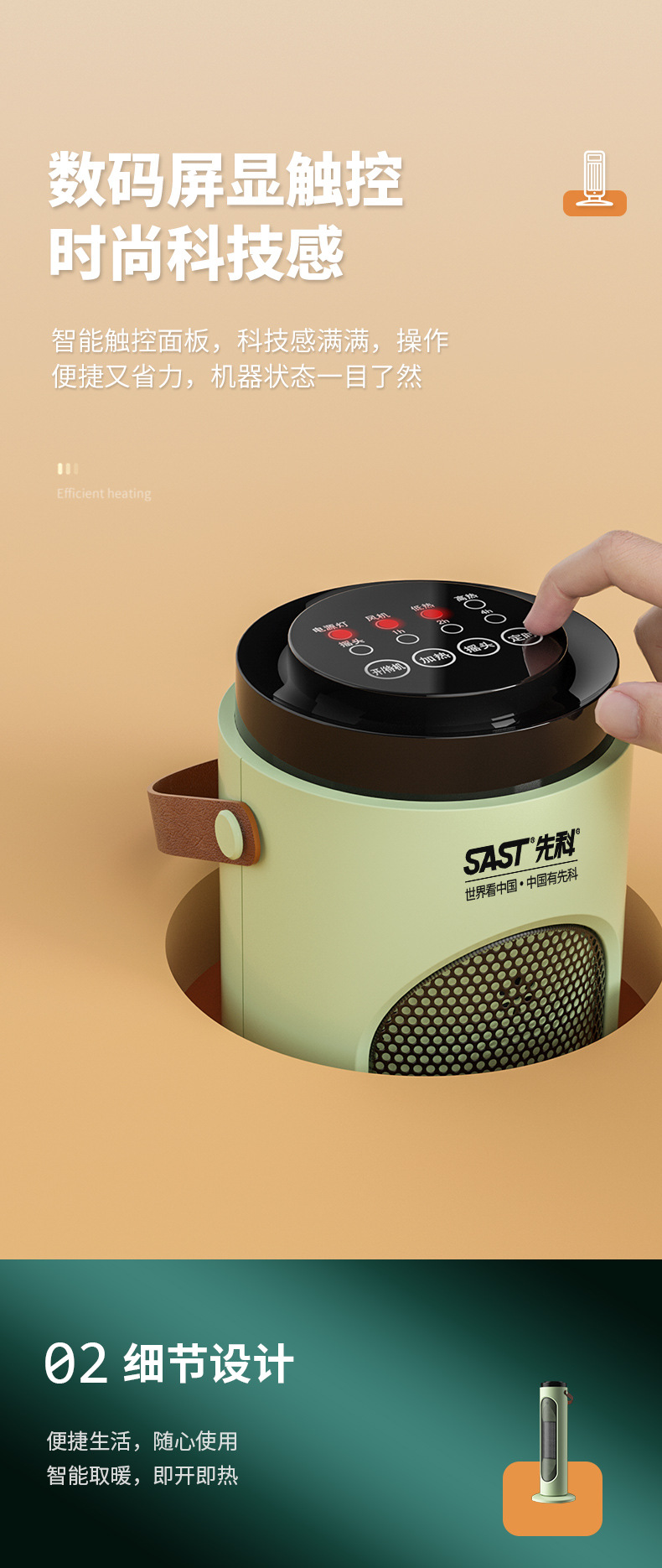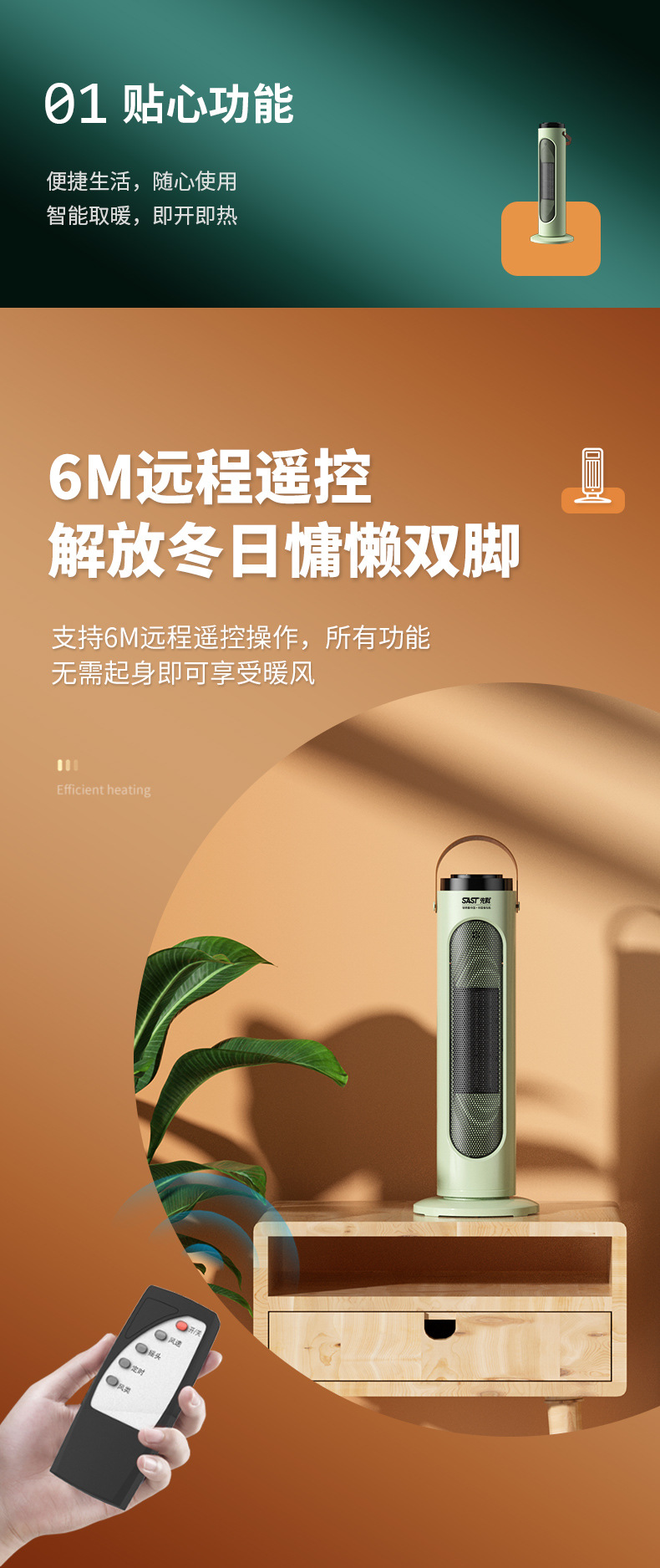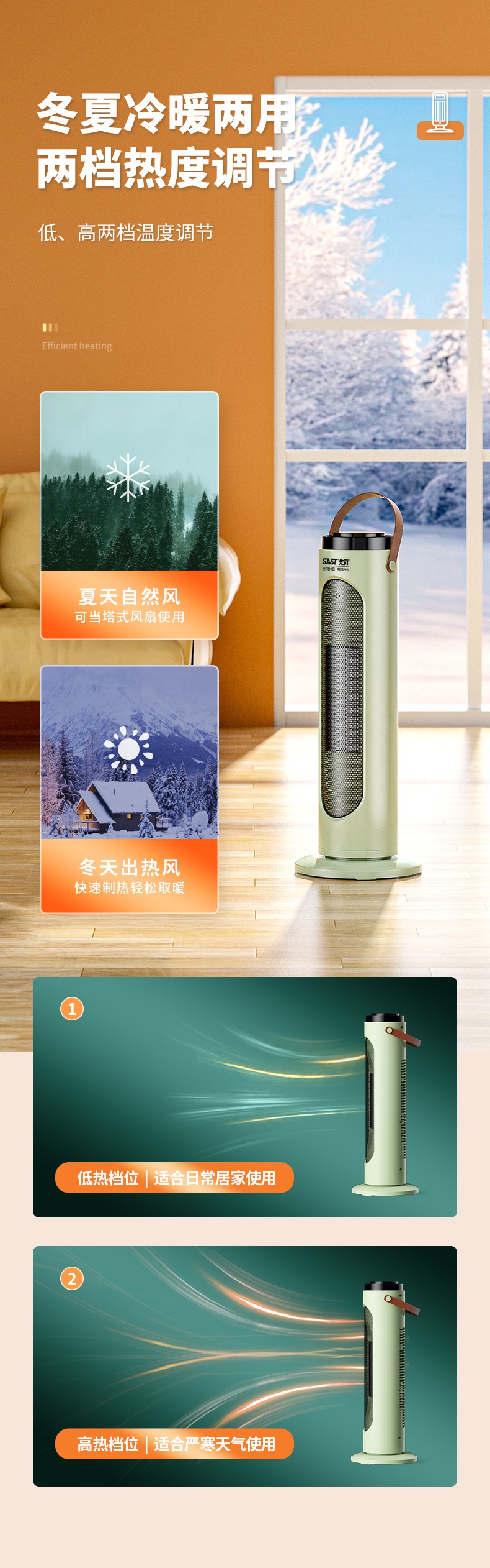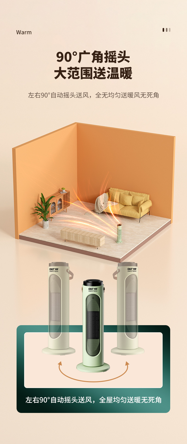 先科取暖器暖风机小型家用节能电暖气卧室全屋取暖热风机省电暖器