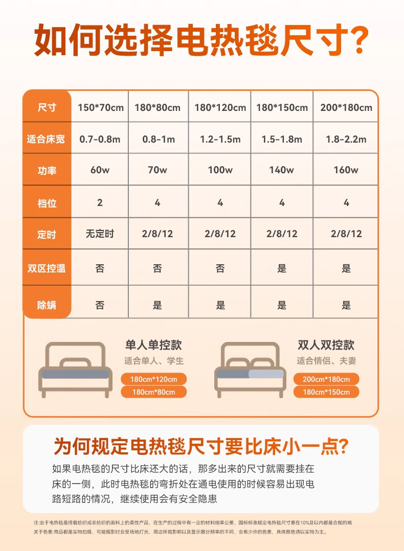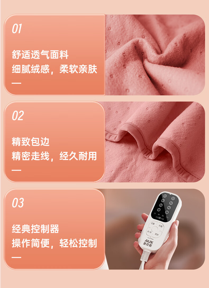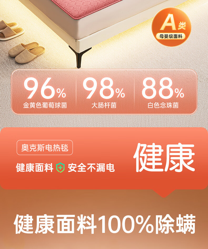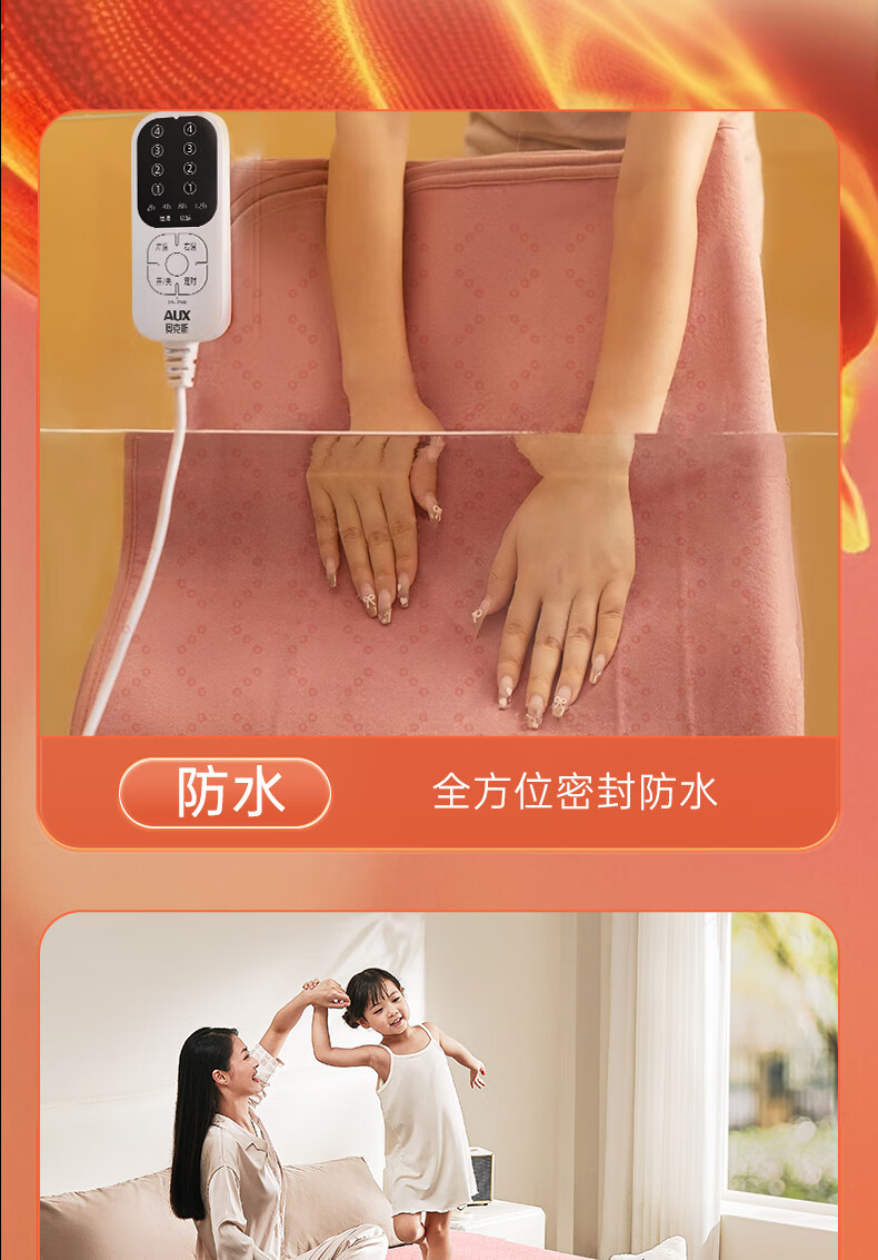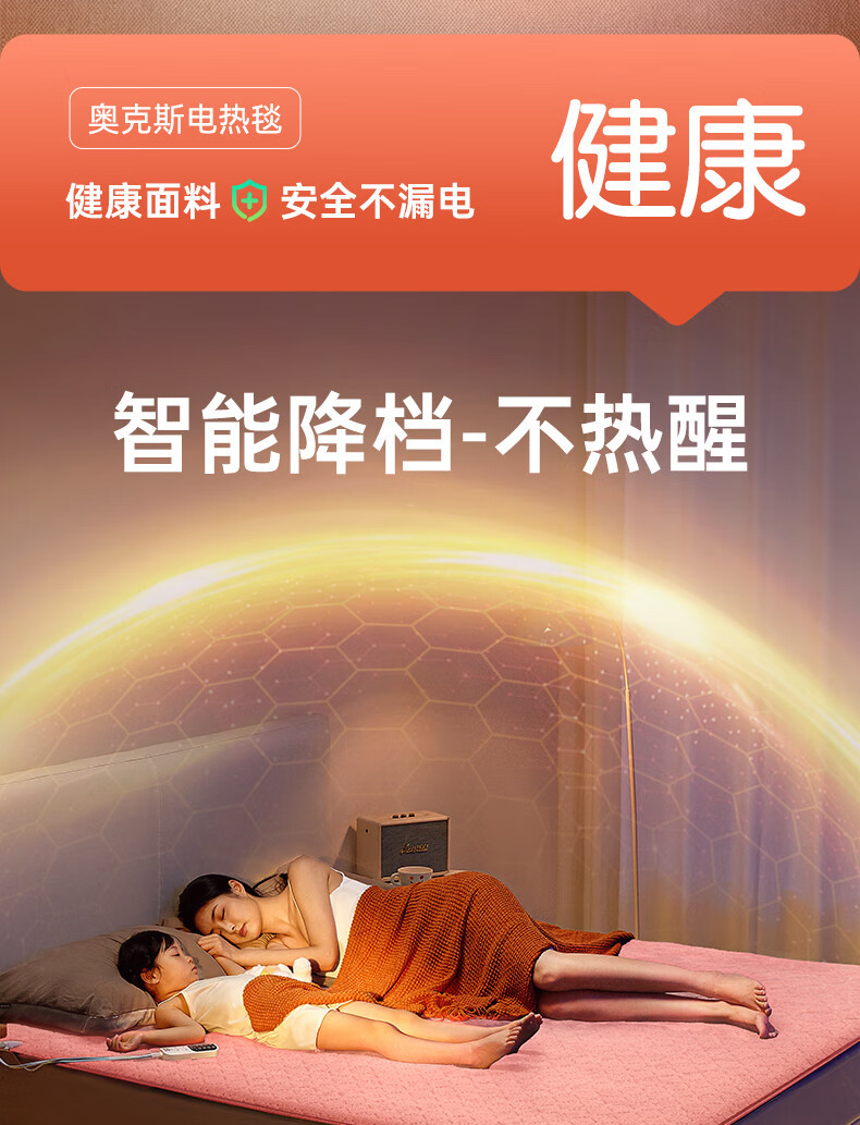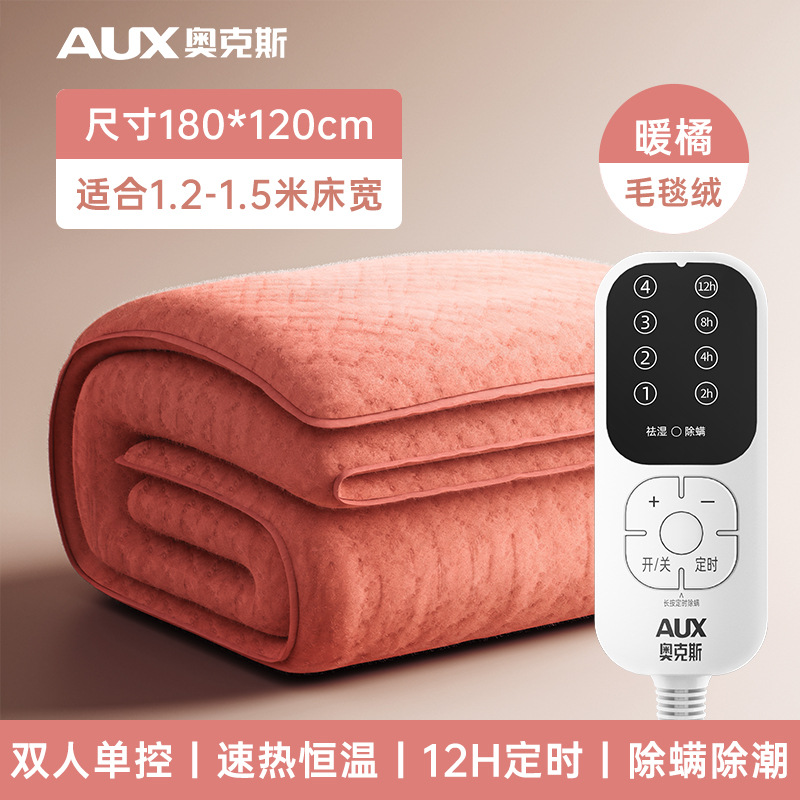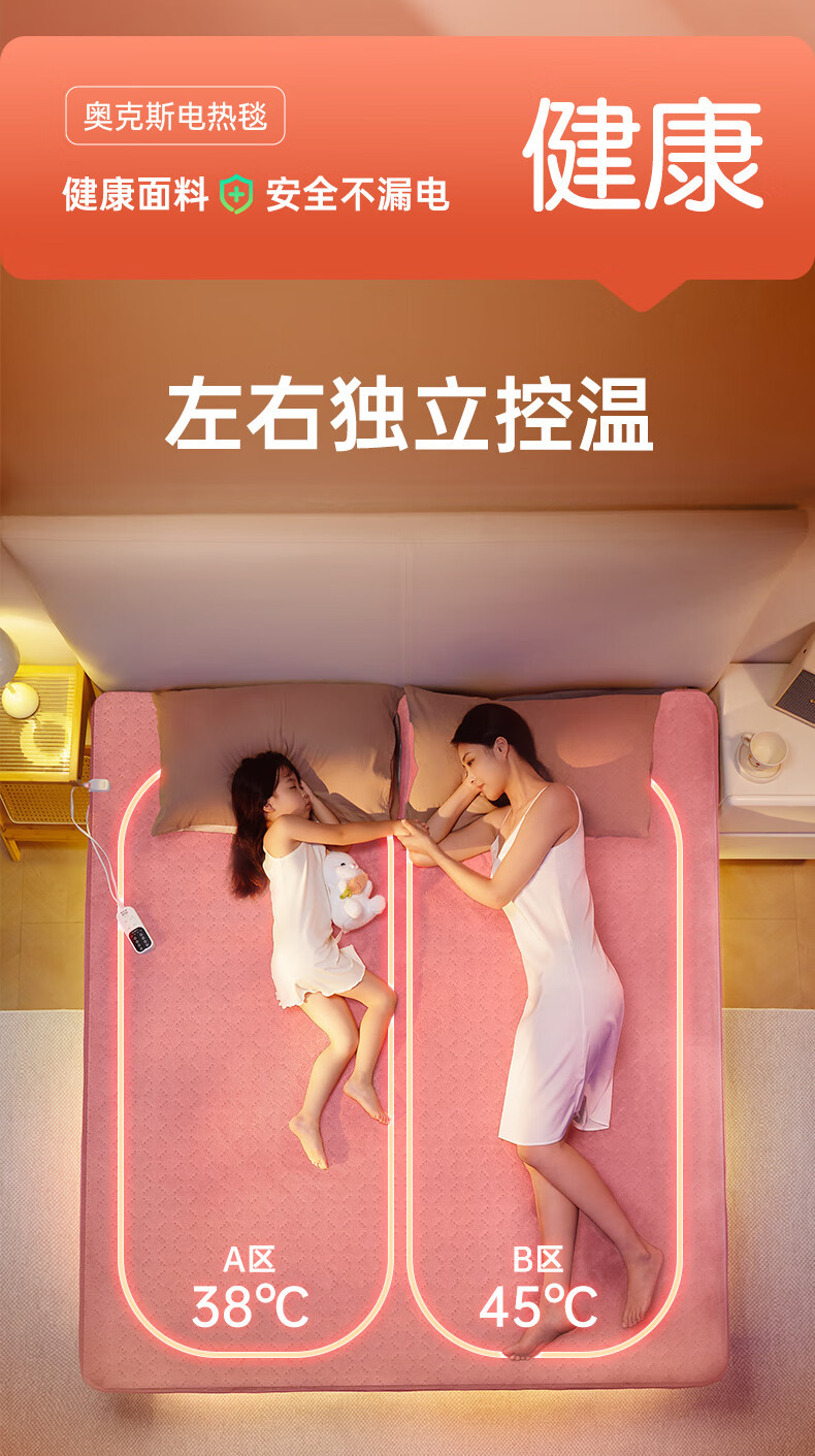 奥克斯电热毯单人双人电褥子双控调温学生宿舍家用安全加热垫子