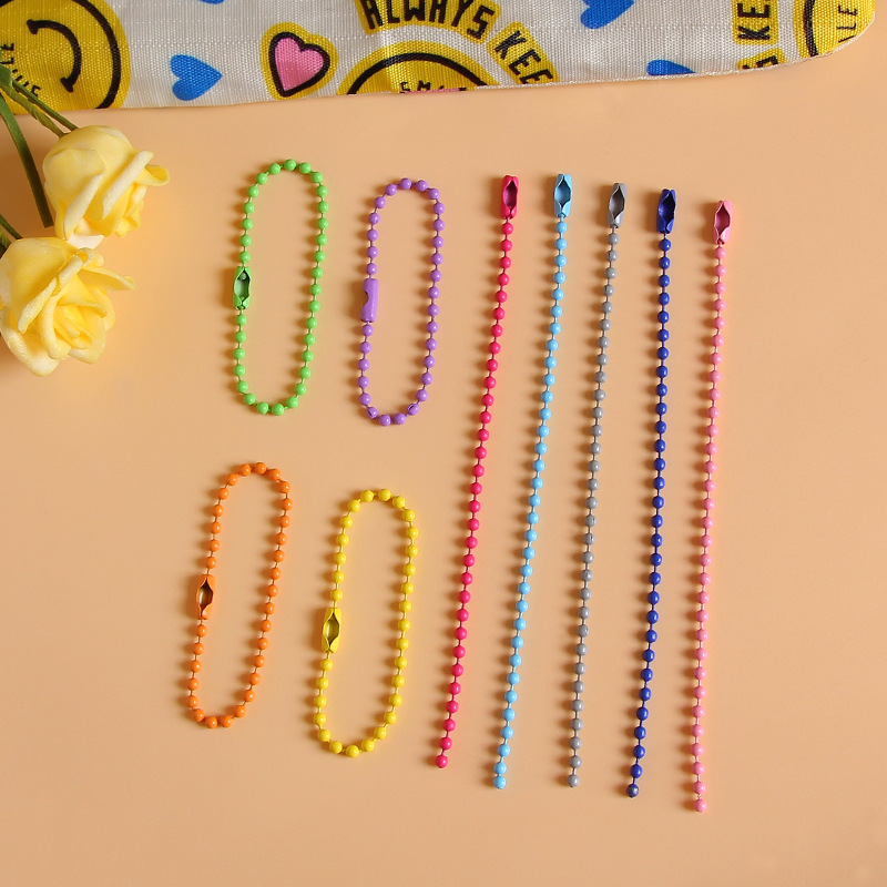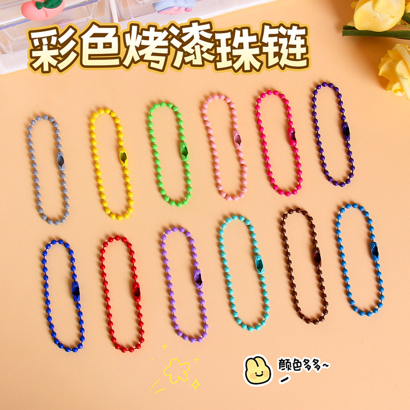 彩色烤漆珠链糖果色波珠链钥匙链圆珠链铁珠链吊链连接链饰品配件