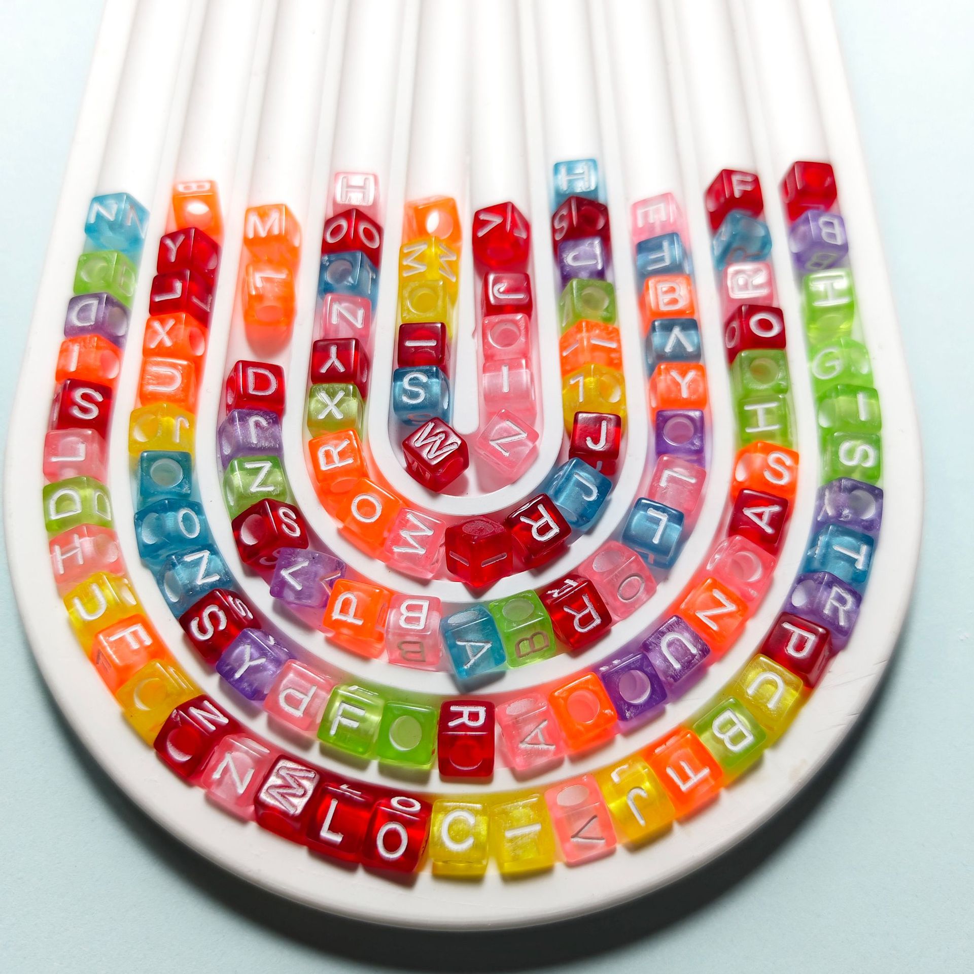 亚克力彩色英文字母珠透明糖果色串珠diy饰品配件6mm方形手链珠子