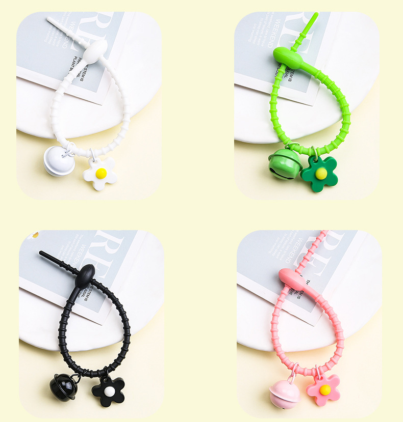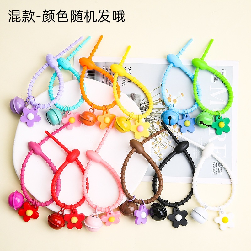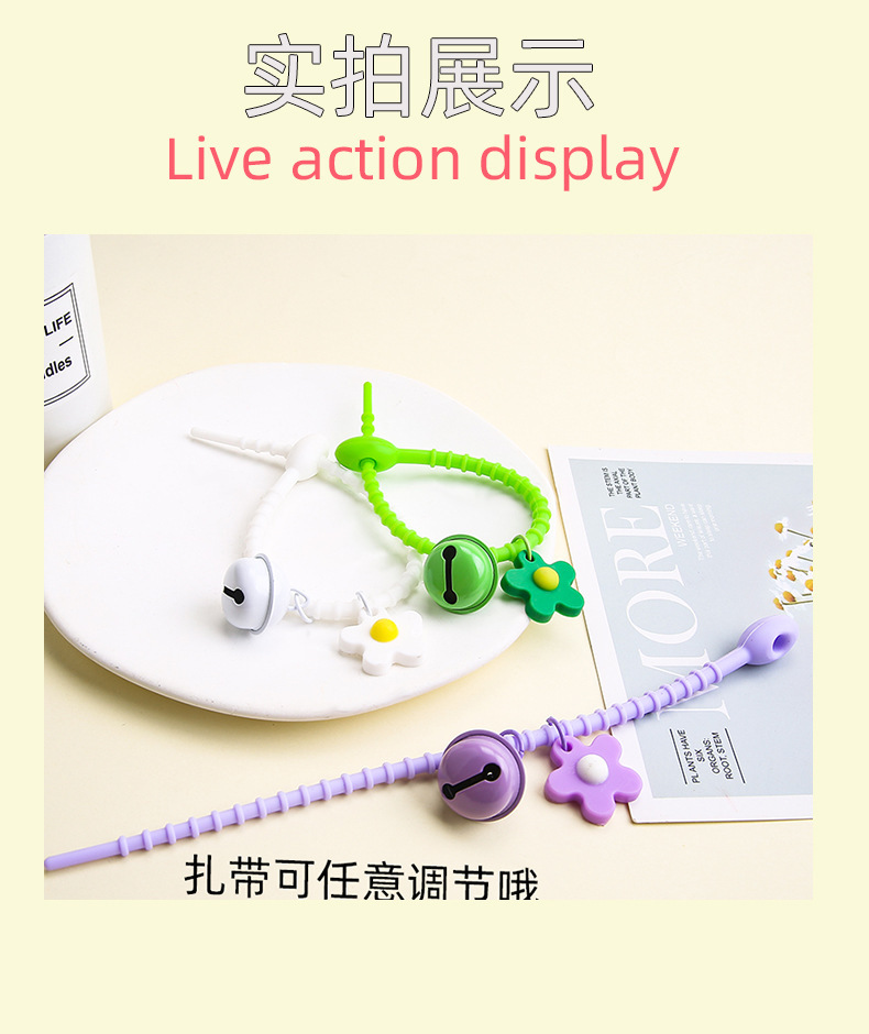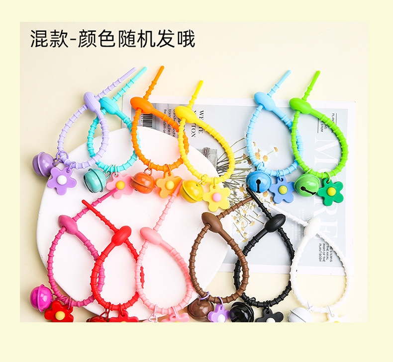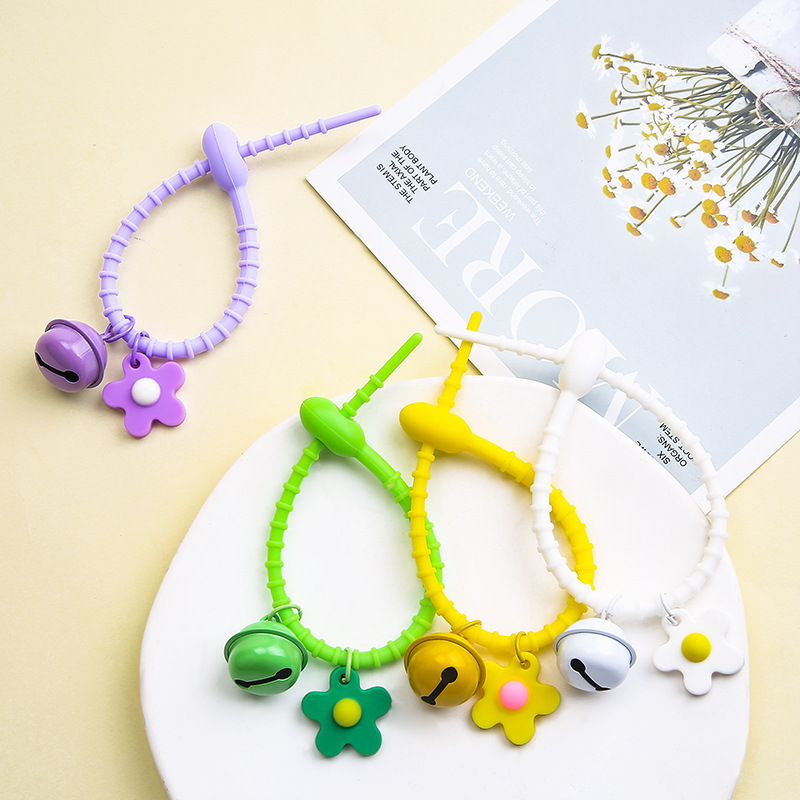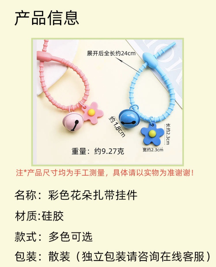 彩色硅胶绳扎带软胶花朵铃铛挂件小清新简约钥匙扣女包包挂饰配饰