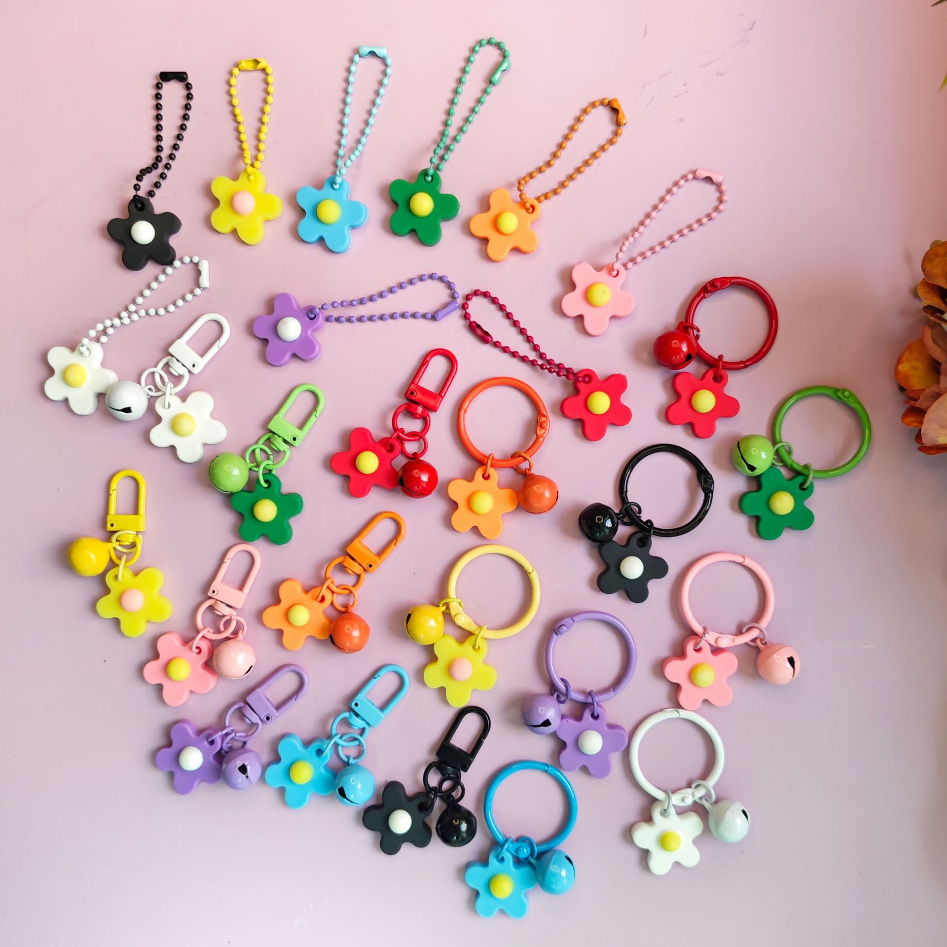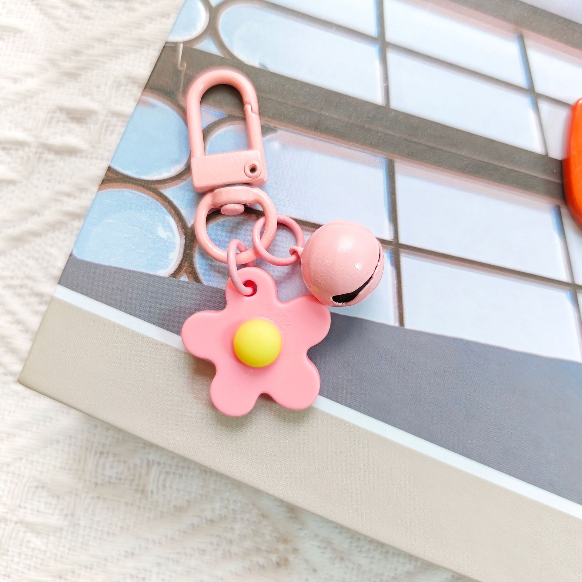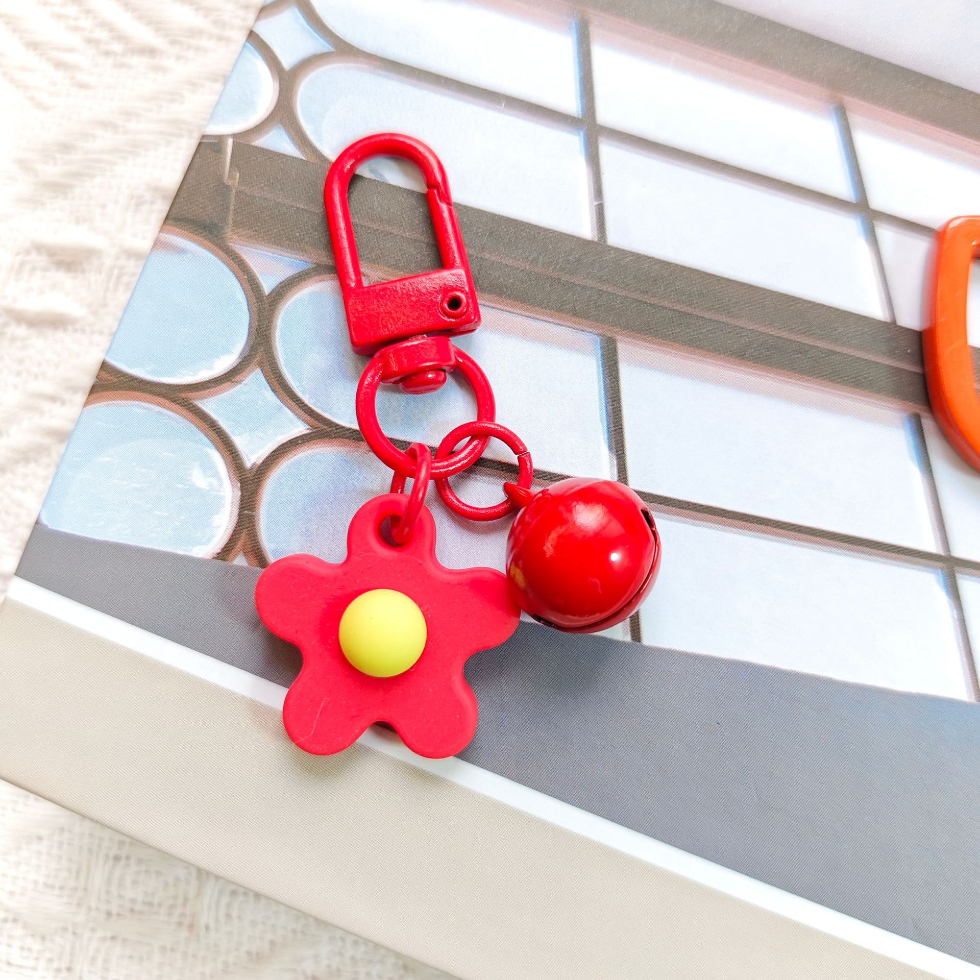 彩色软胶花朵铃铛钥匙扣挂件 ins小清晰甜美可爱少女心包包挂饰品