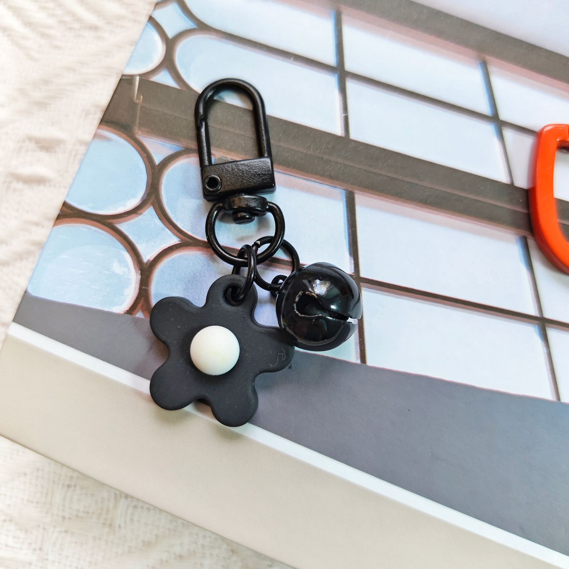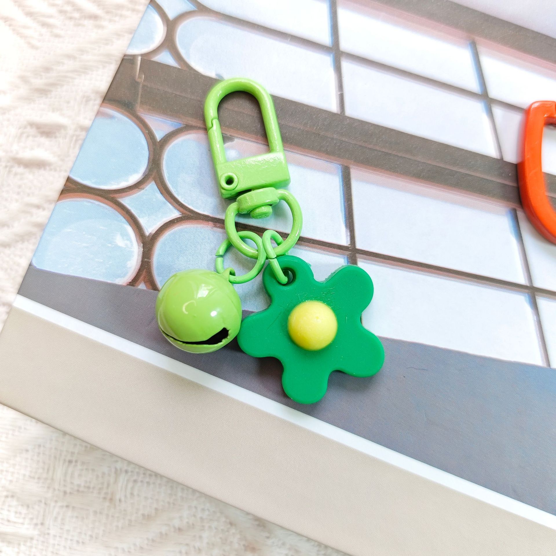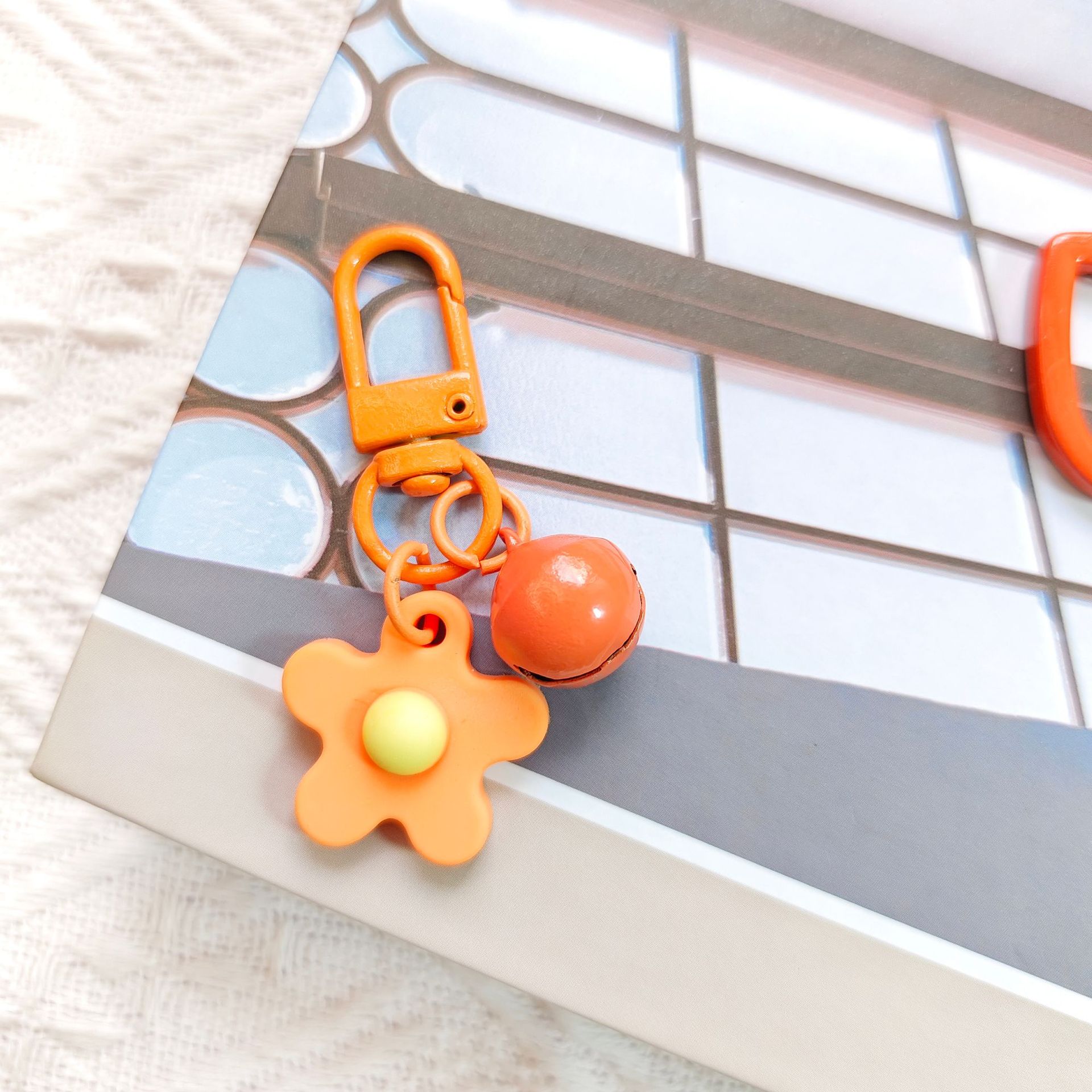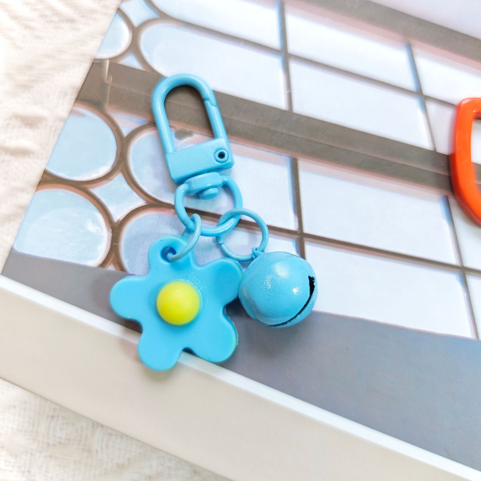 彩色软胶花朵铃铛钥匙扣挂件 ins小清晰甜美可爱少女心包包挂饰品