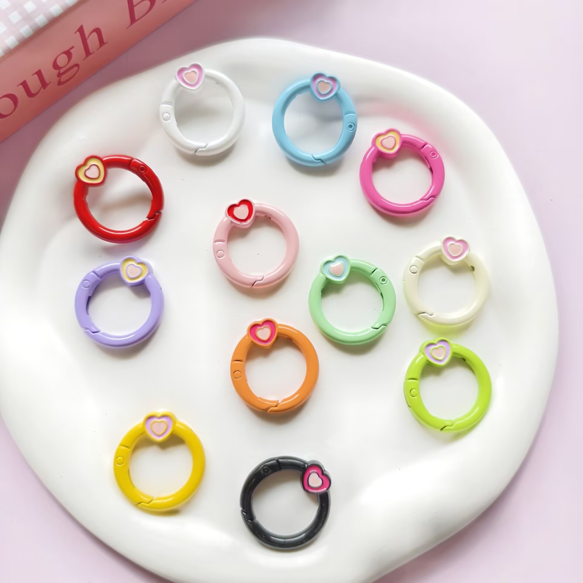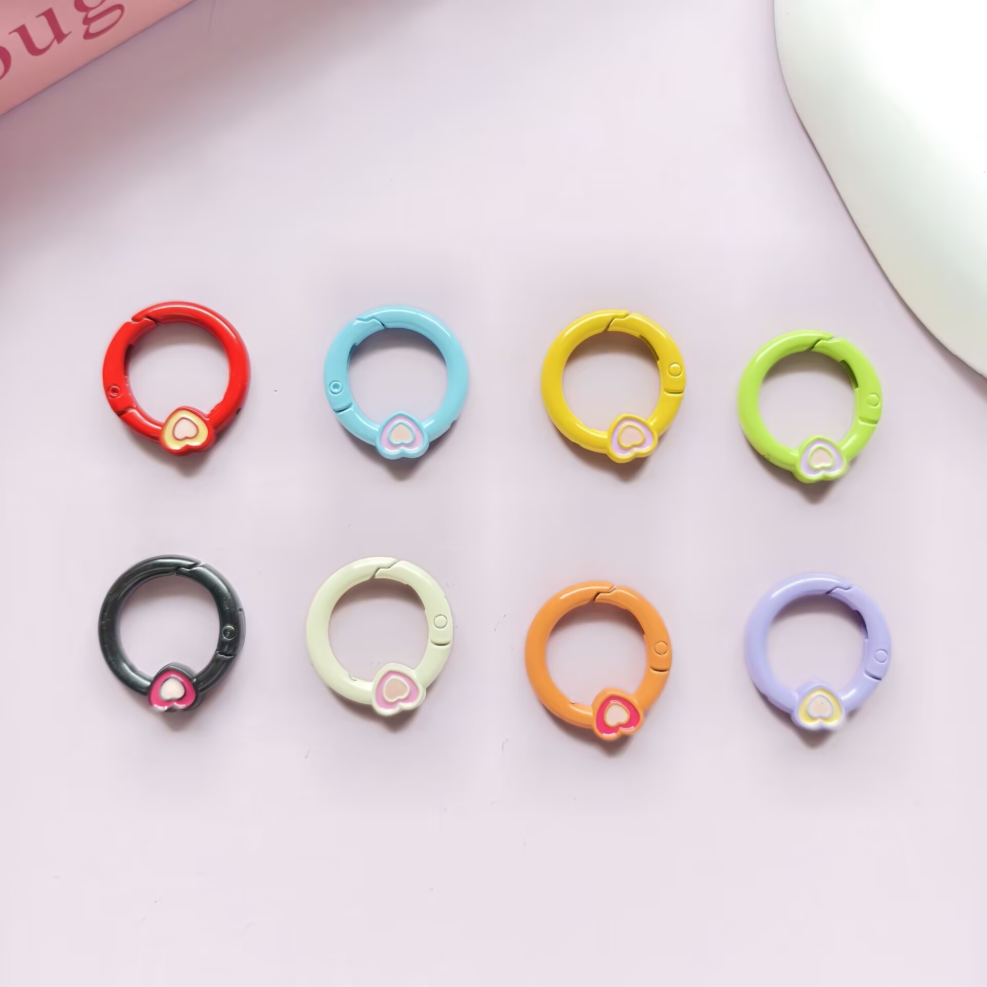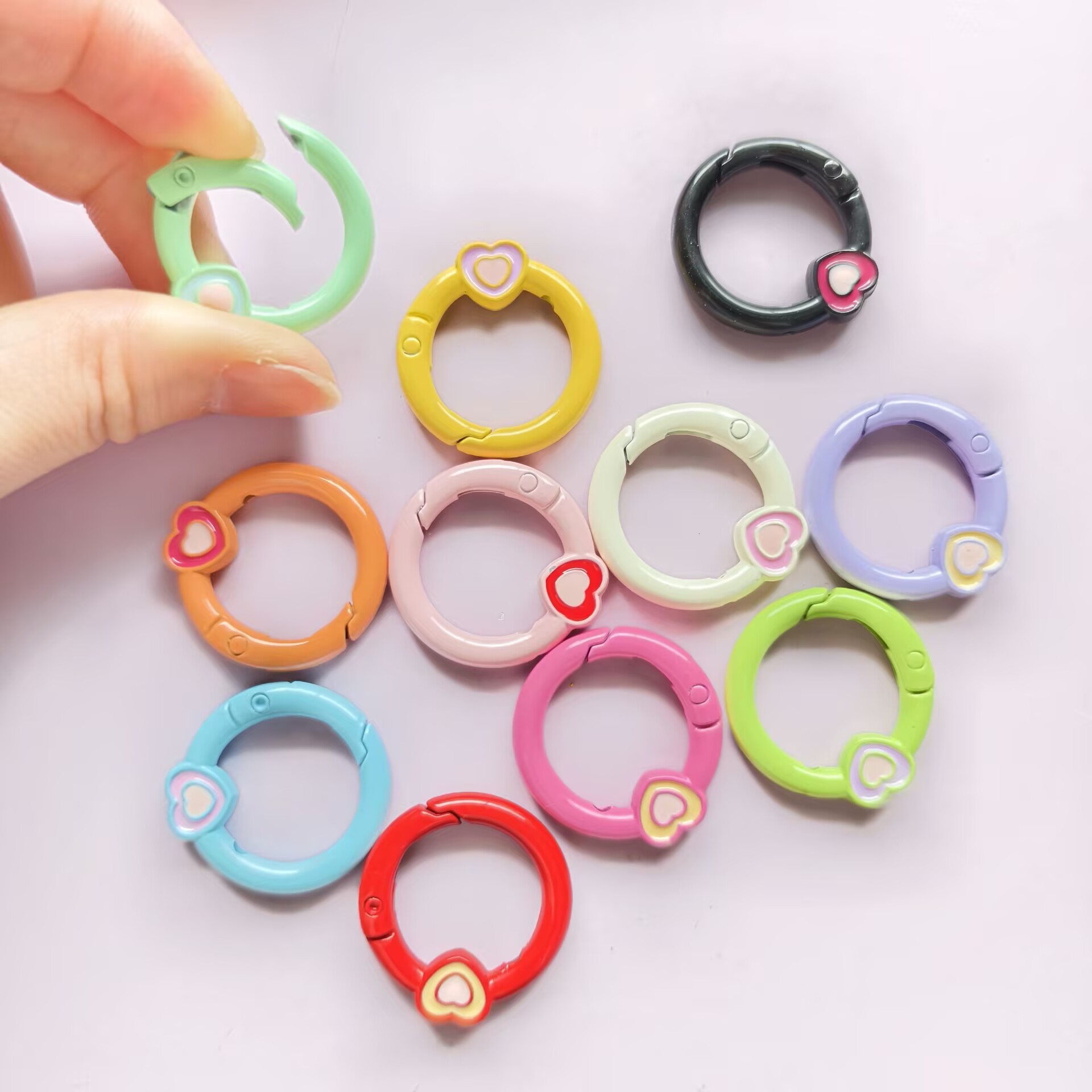烤漆弹簧圈糖果色手绘滴油爱心圆形开口弹簧扣钥匙扣diy饰品配件