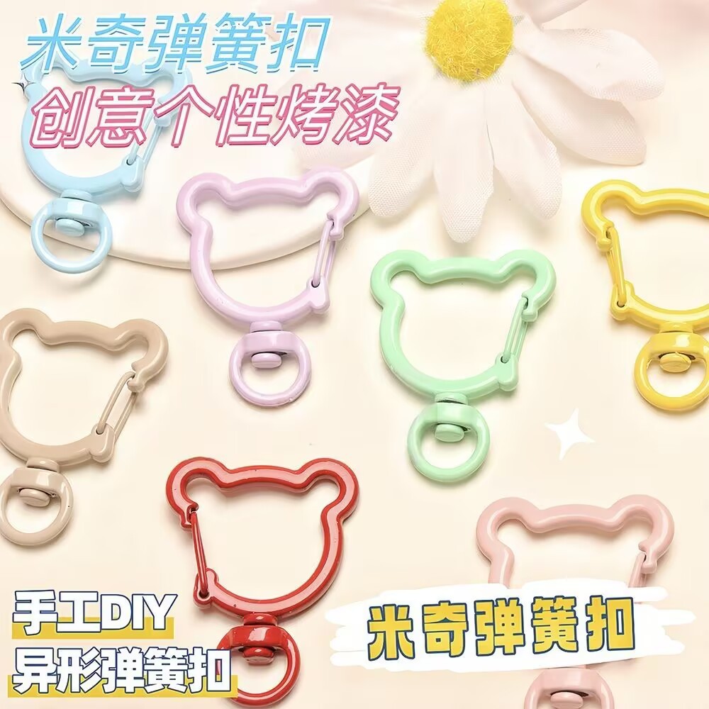 新品彩色烤漆金属小熊弹簧扣卡通异形钥匙扣diy饰品连接环弹簧圈