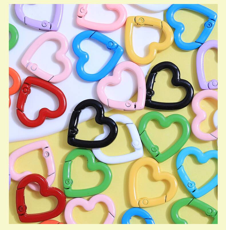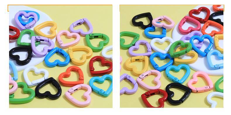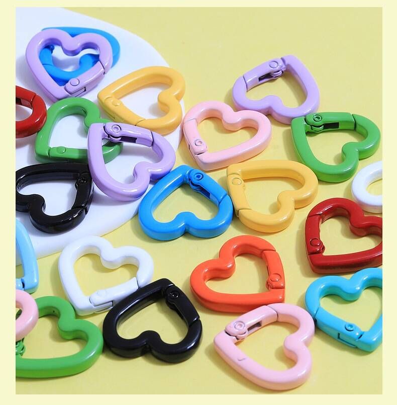 彩色爱心弹簧扣锌合金喷漆开口弹簧圈箱包五金钥匙扣 diy饰品配件
