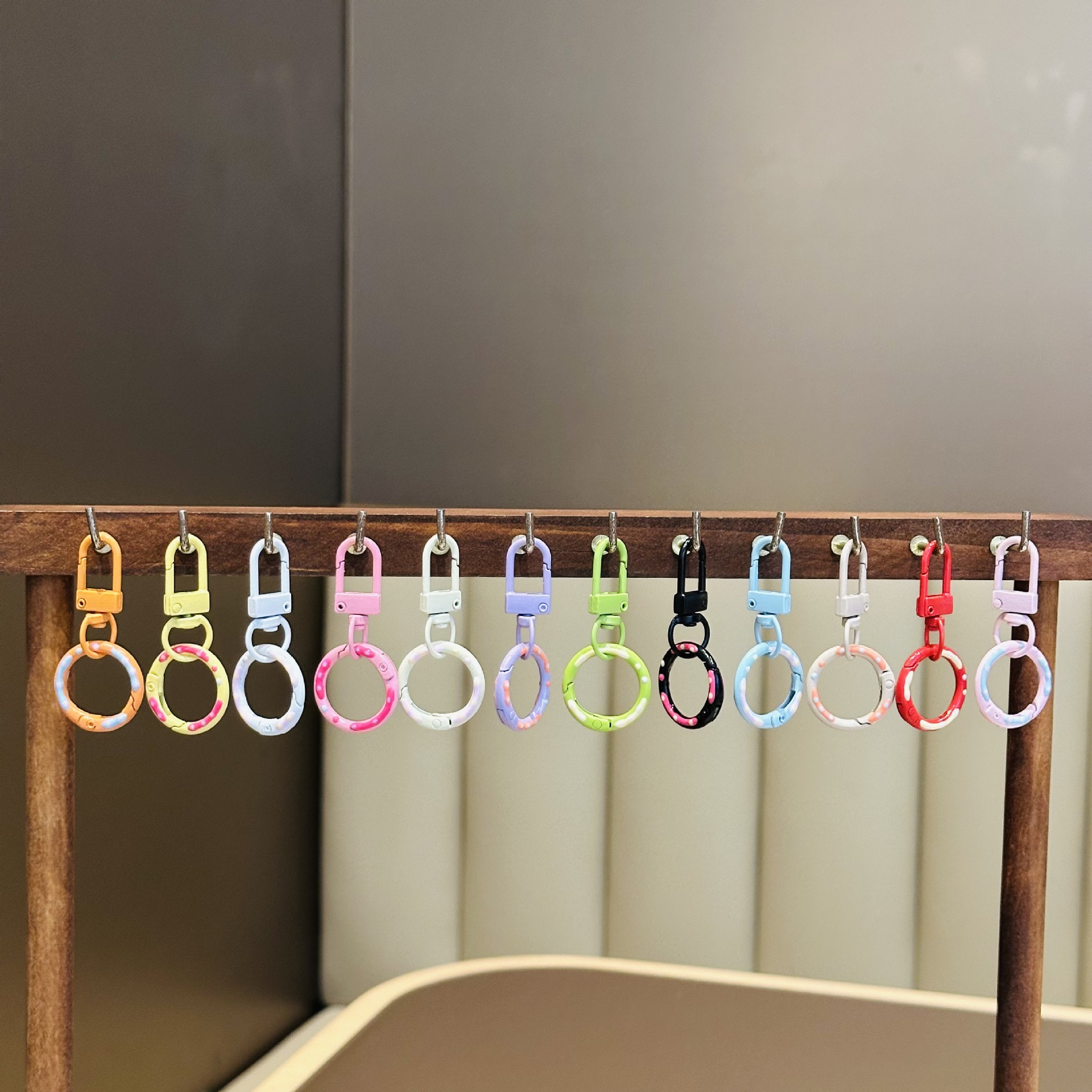 糖果色手绘甜甜圈弹簧扣加旋转门扣钥匙扣diy箱包钥匙圈玩偶挂件