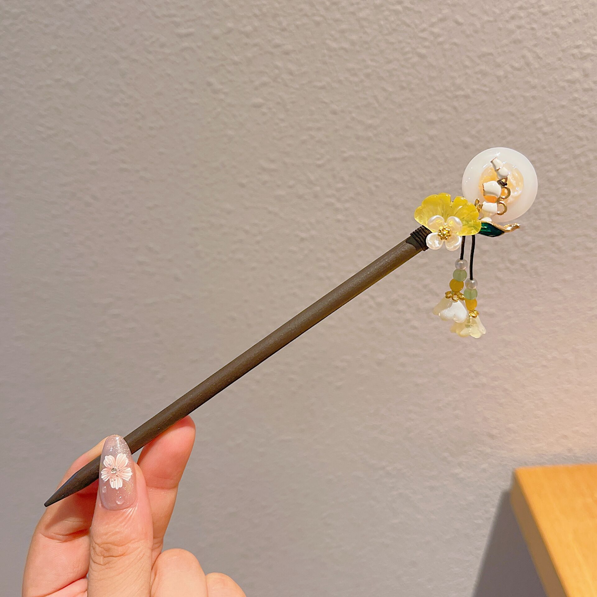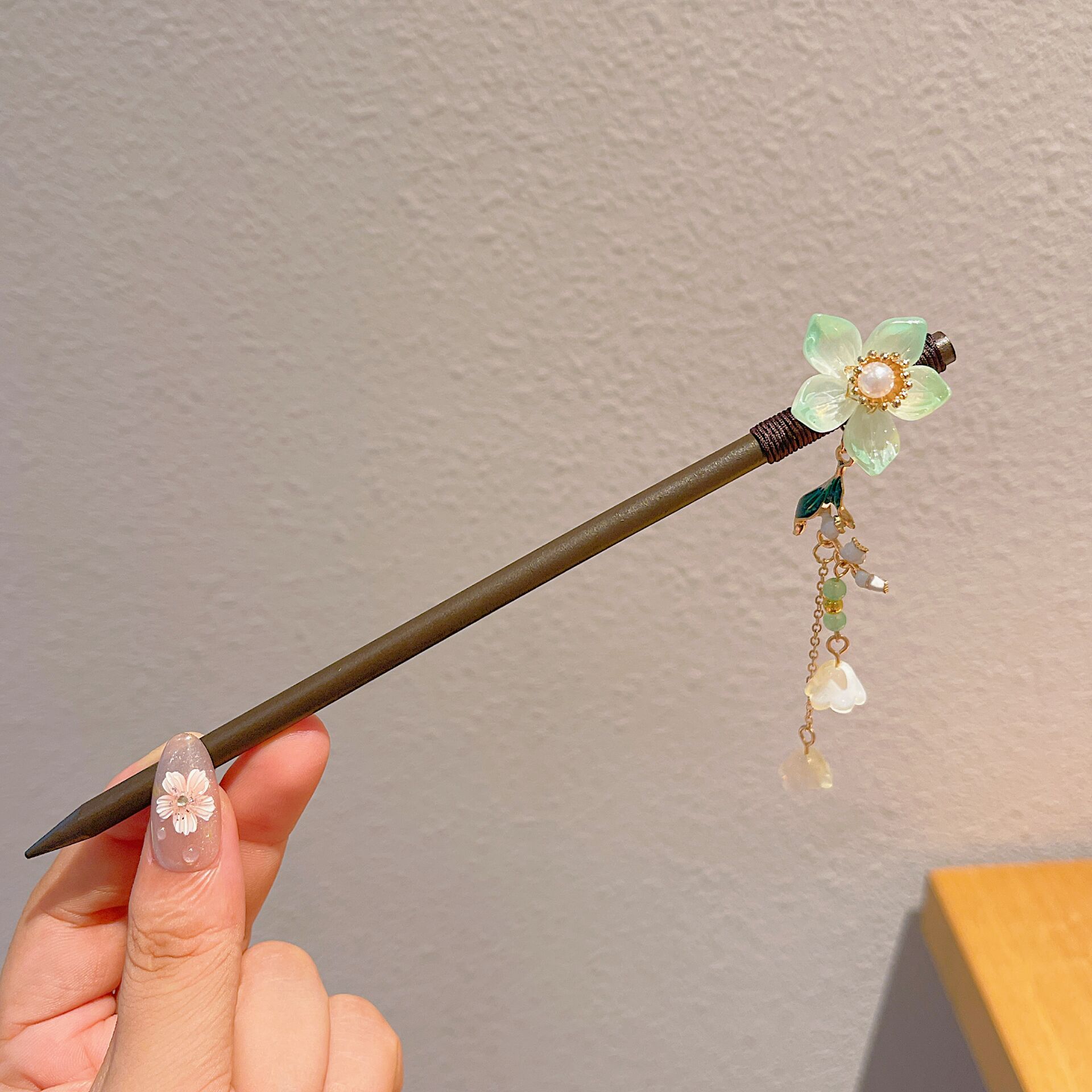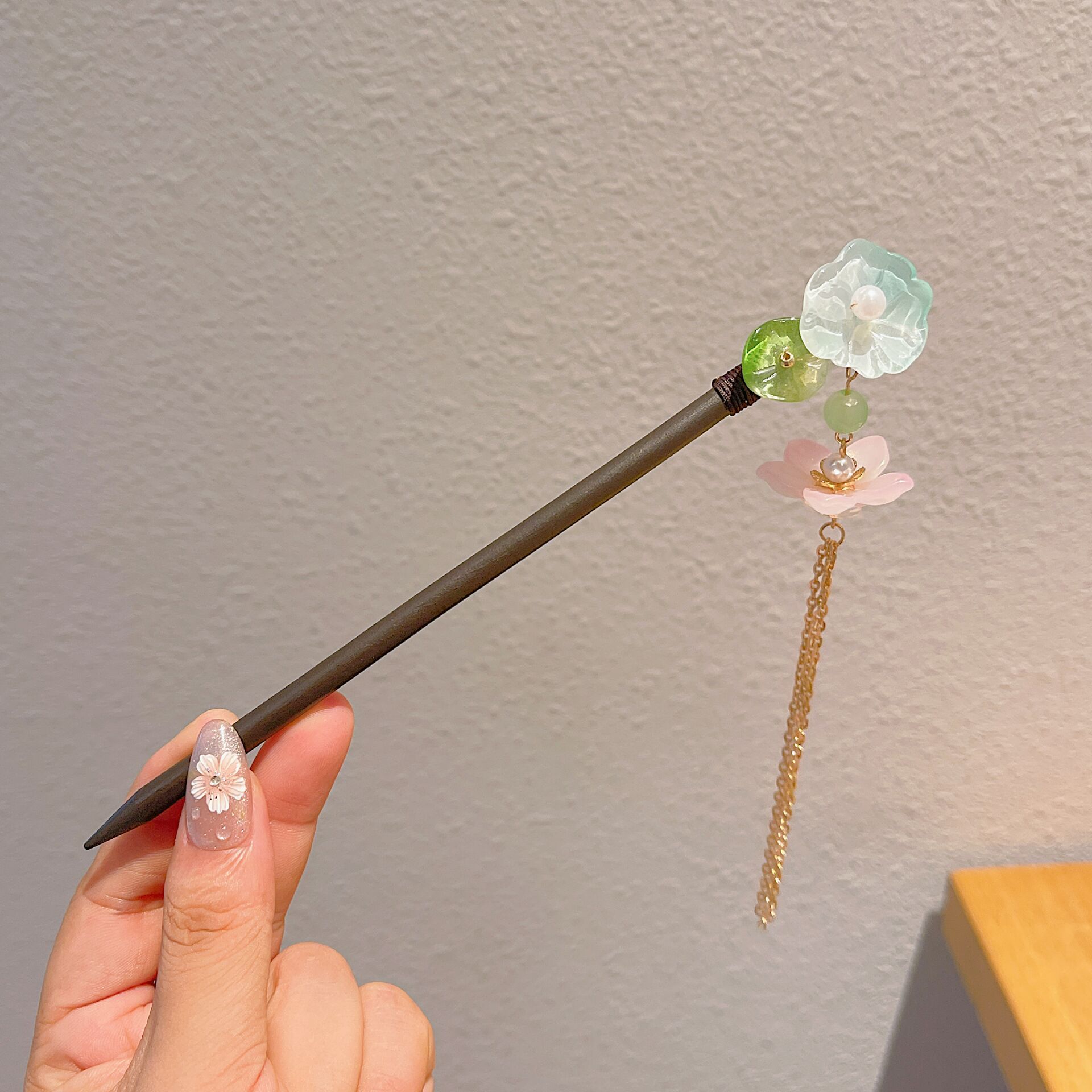 古风流苏黑木发簪古装旗袍发钗盘发新中式仿黑檀木簪子汉服头饰
