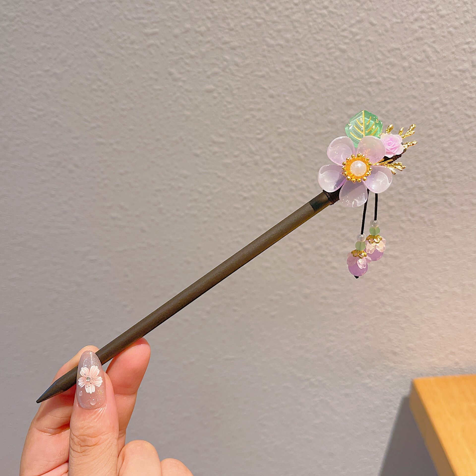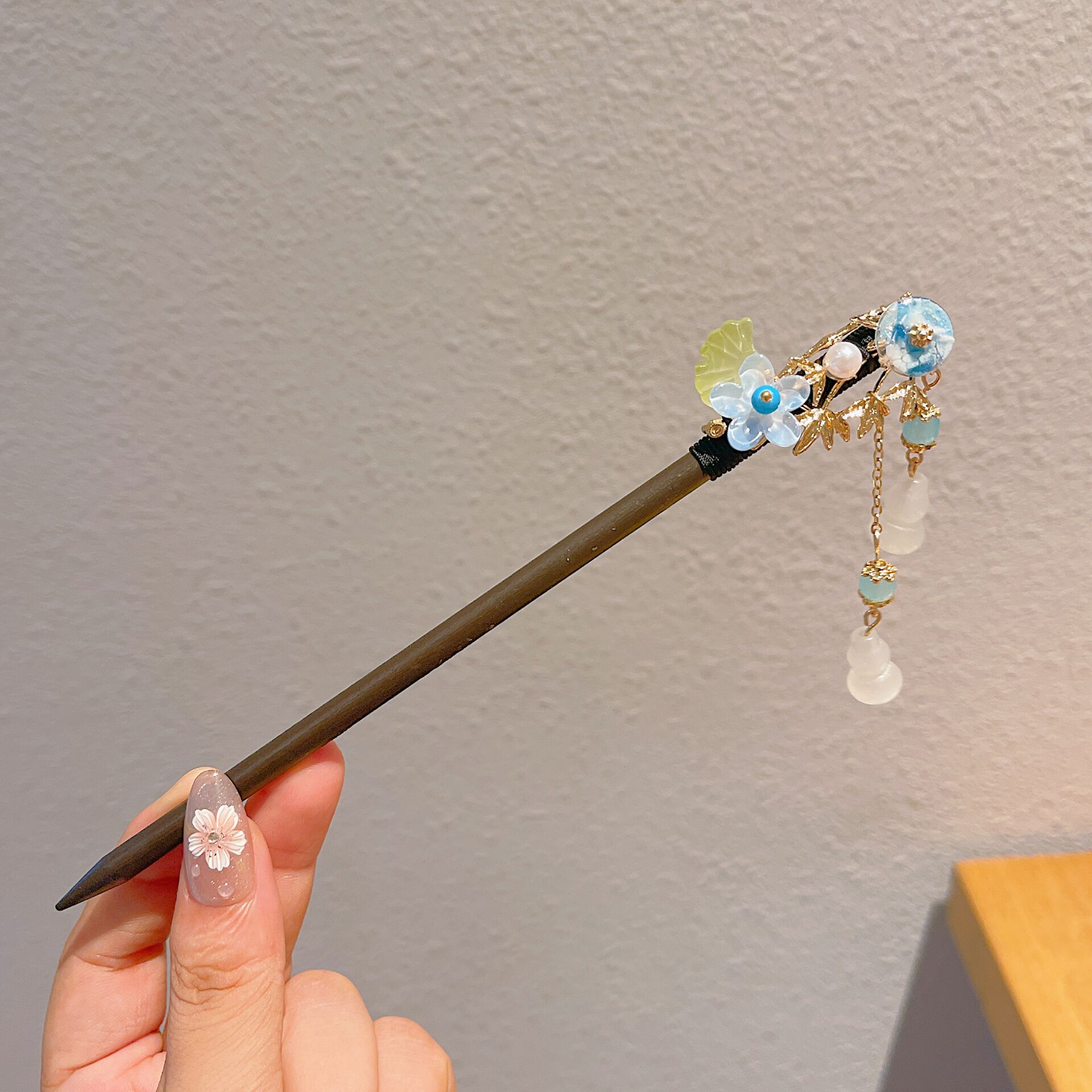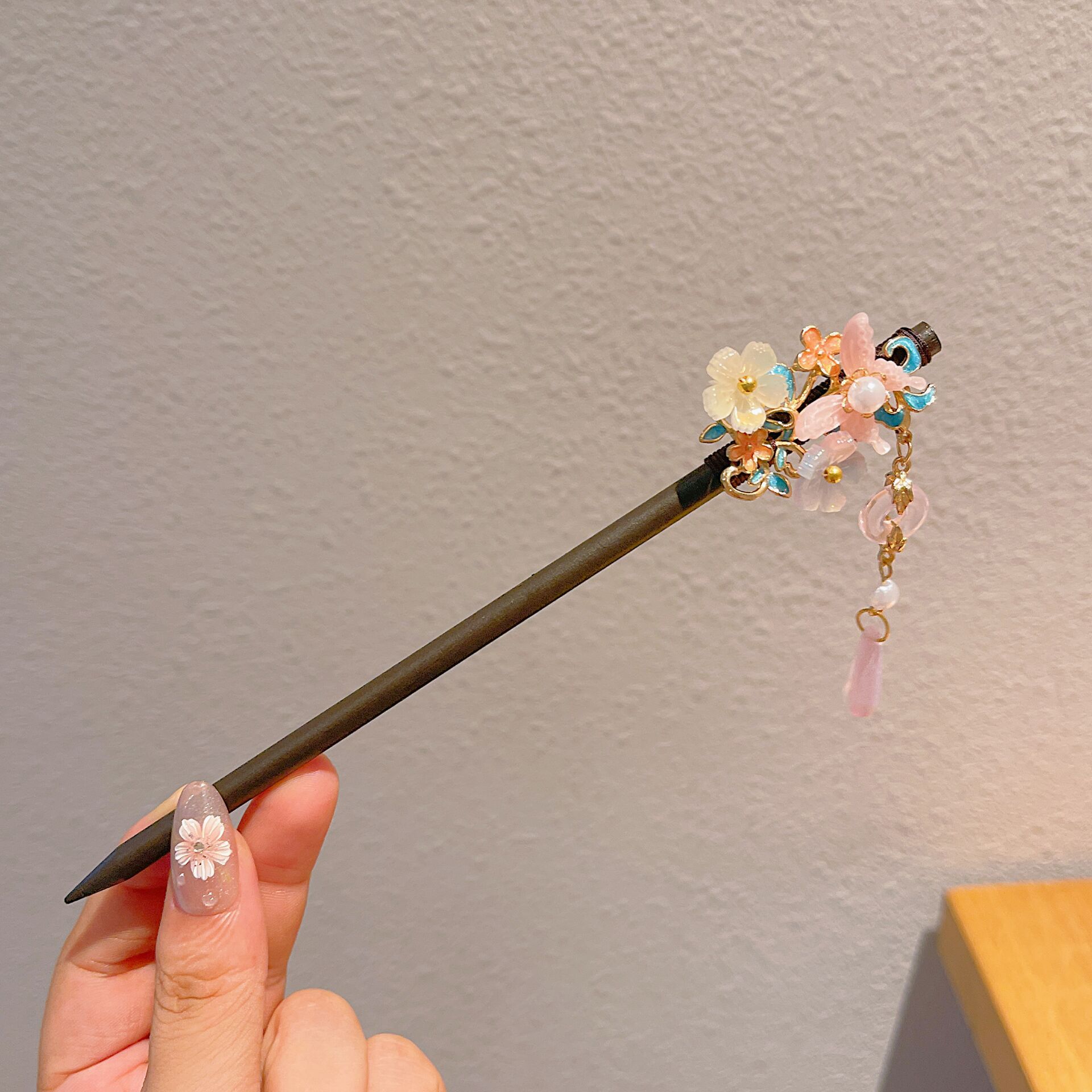 古风流苏黑木发簪古装旗袍发钗盘发新中式仿黑檀木簪子汉服头饰