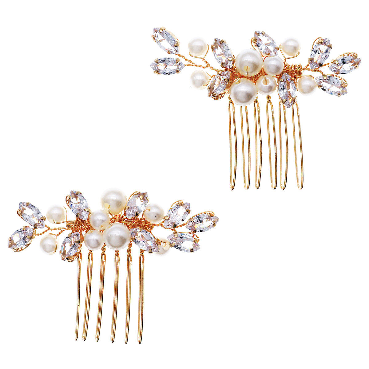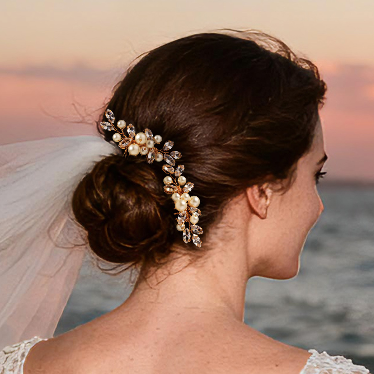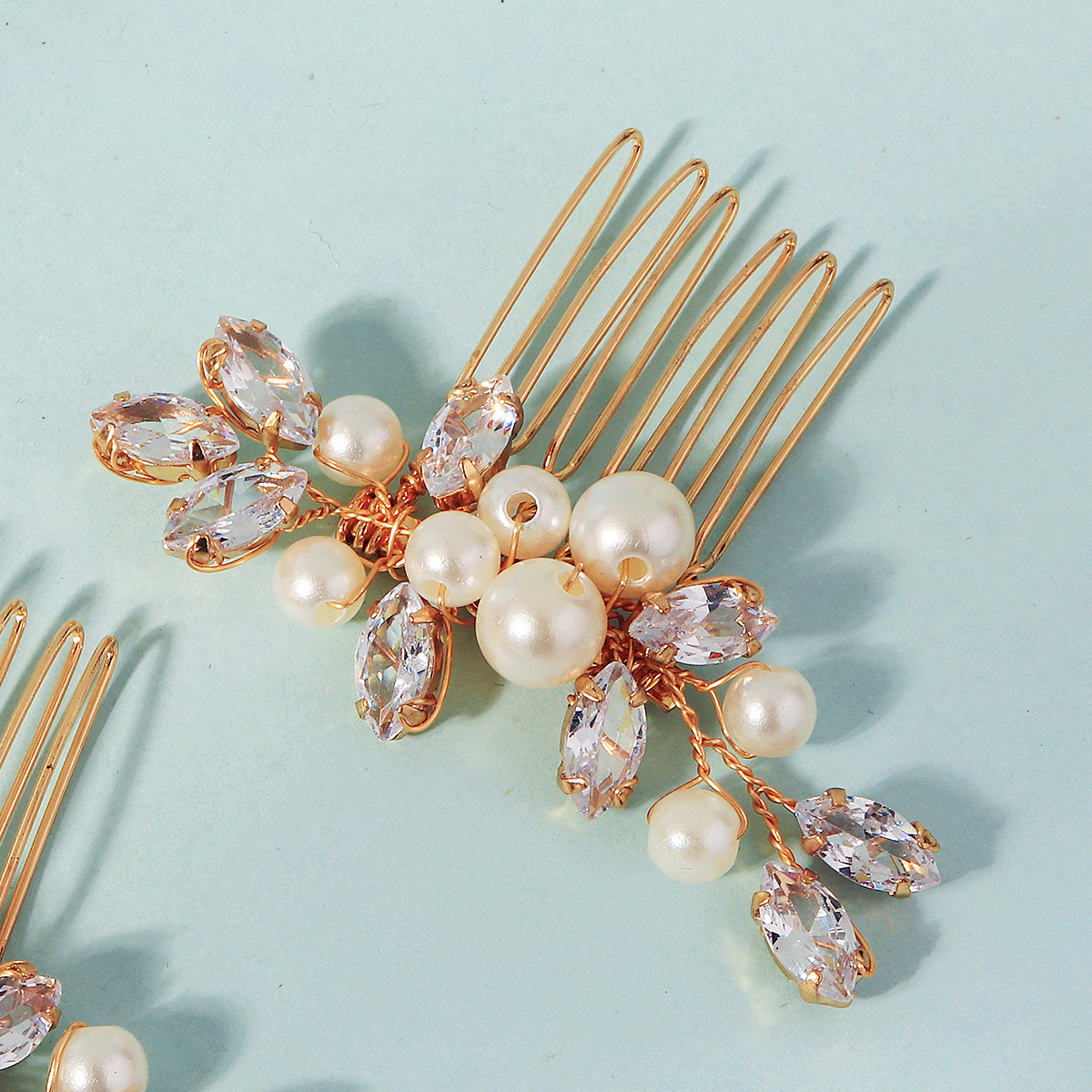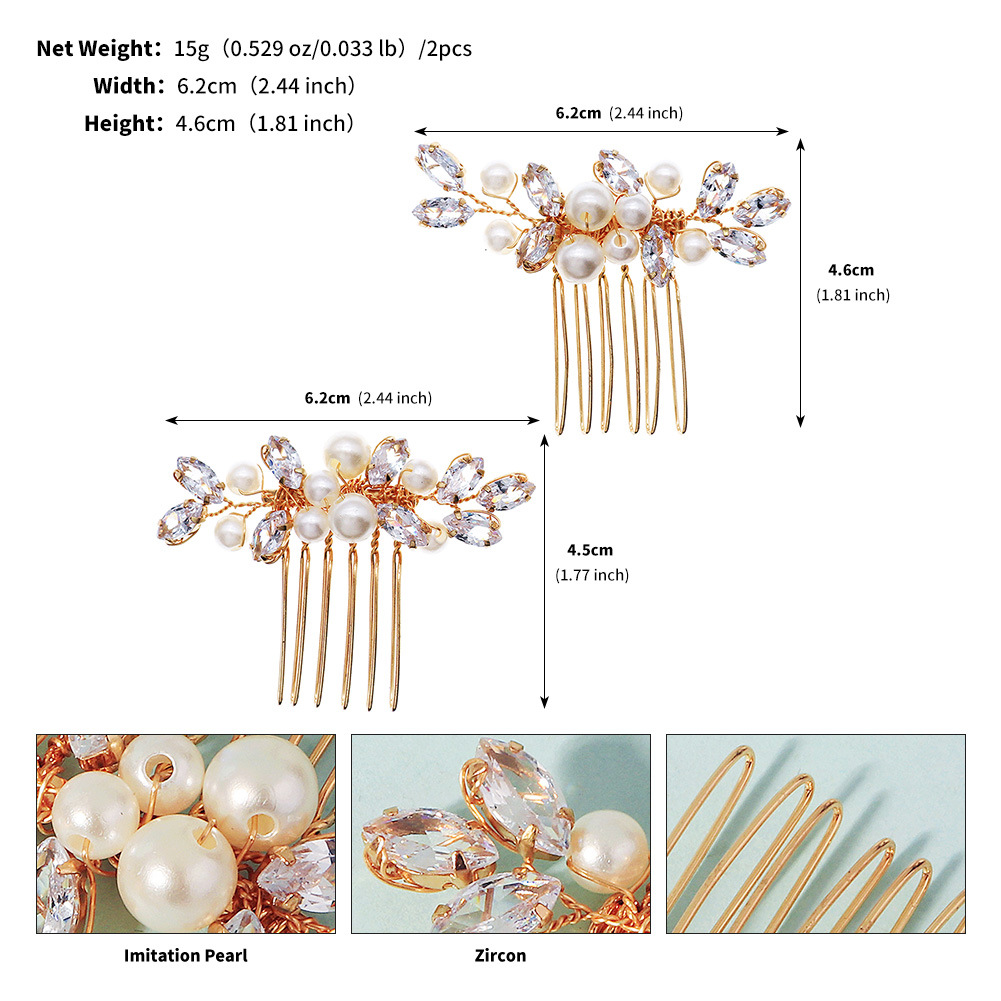 欧美跨境锆石珍珠盘发发梳唯美写真婚礼头纱发饰手工珍珠插梳套装