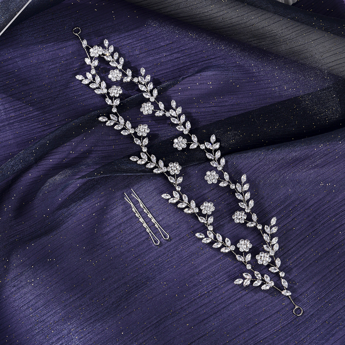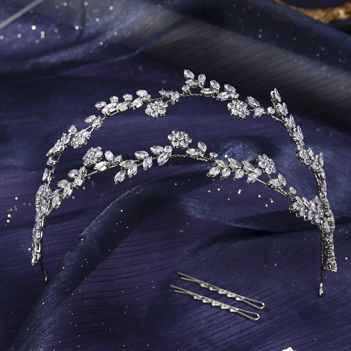 韩式新娘轻奢婚礼头饰手工烧焊水晶花卉叶子发带百搭婚纱写真发饰