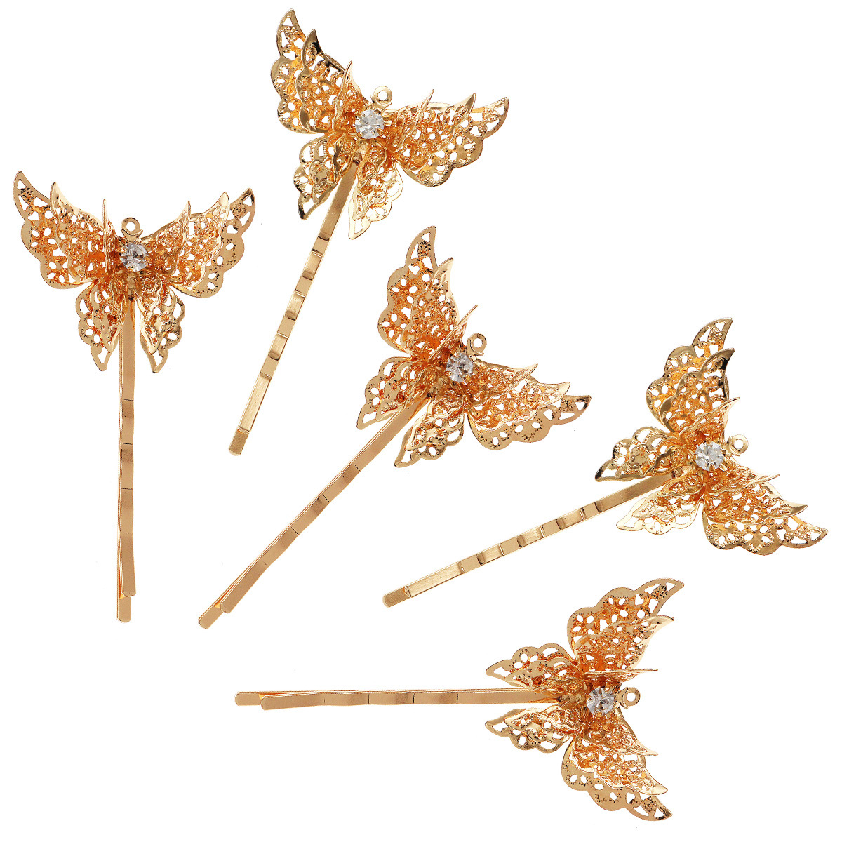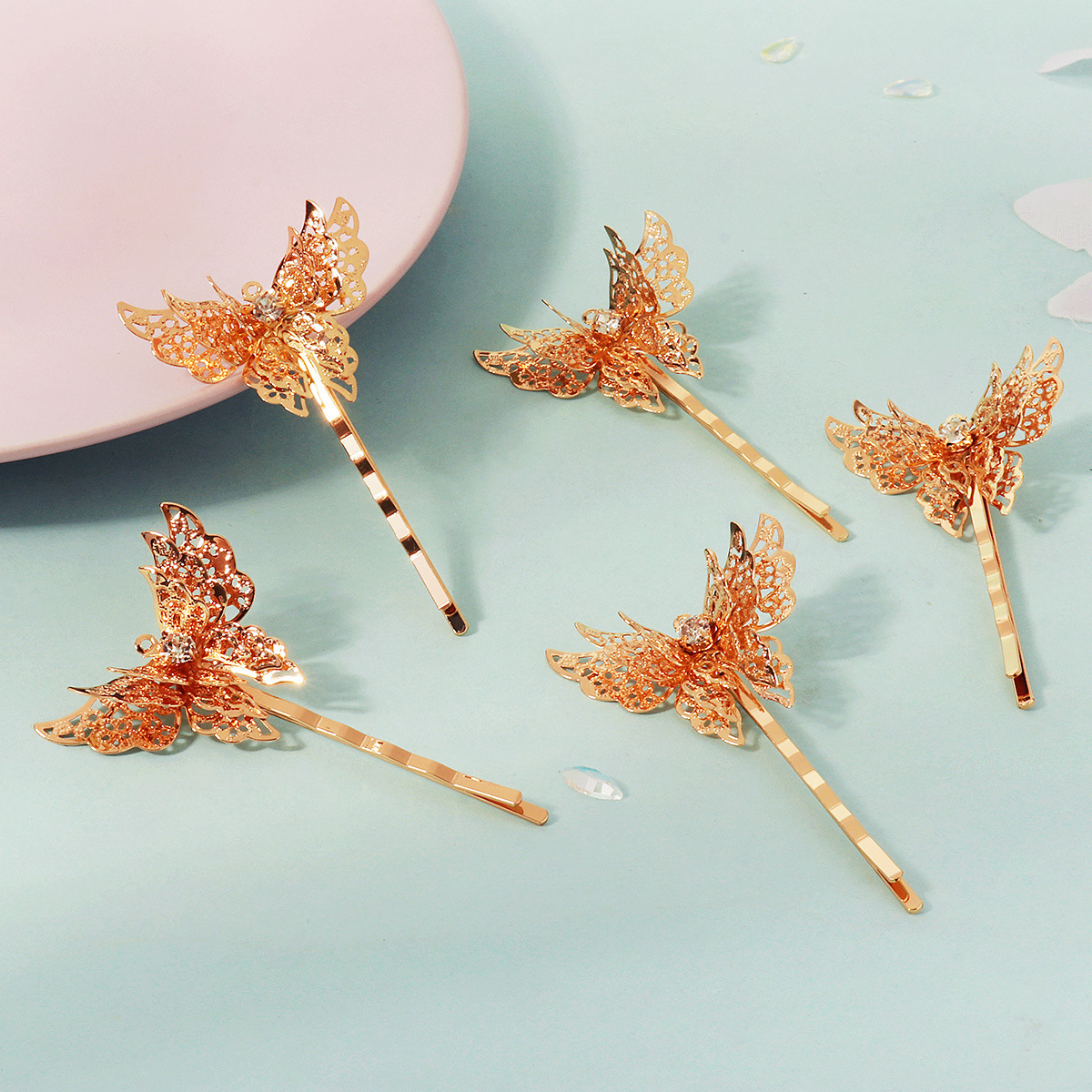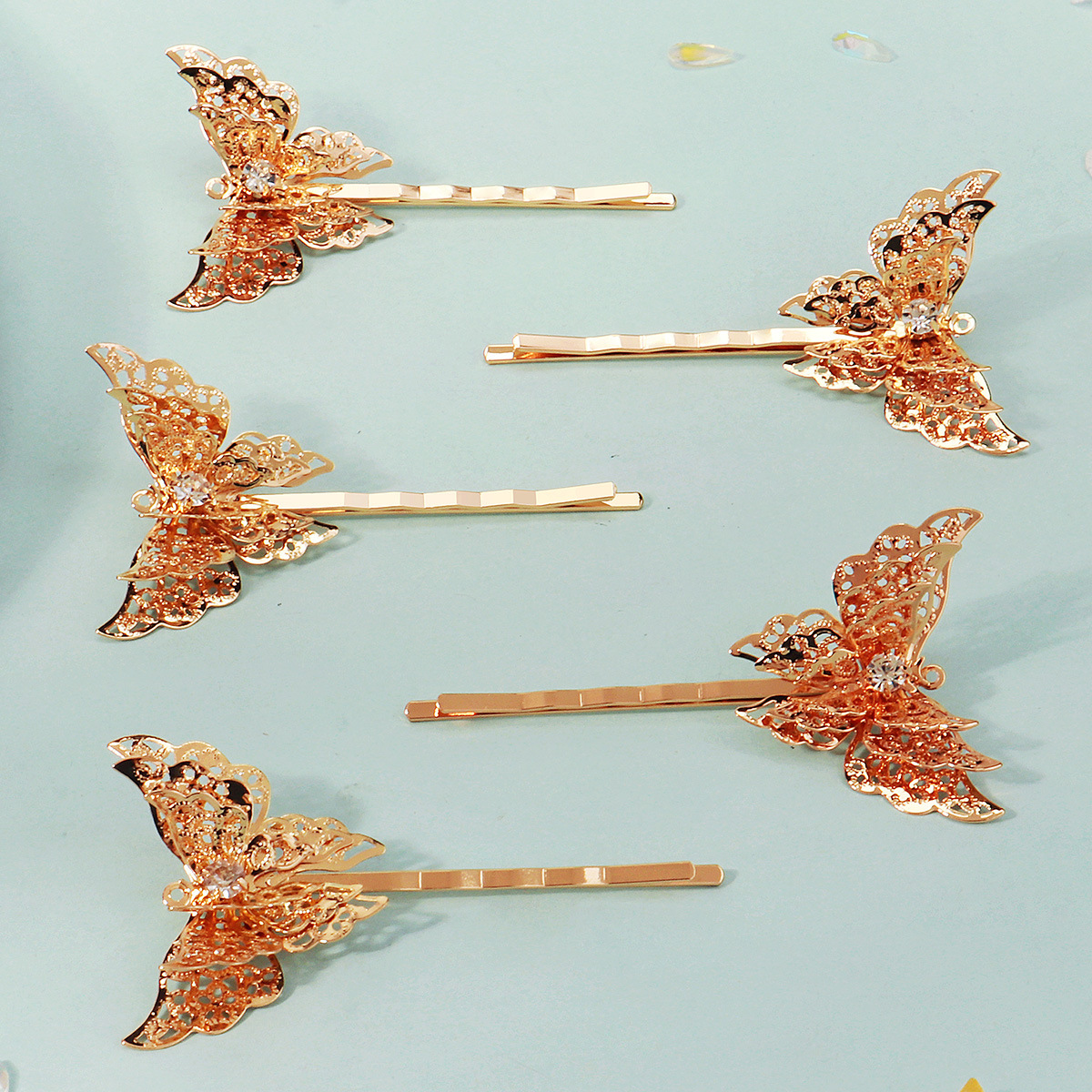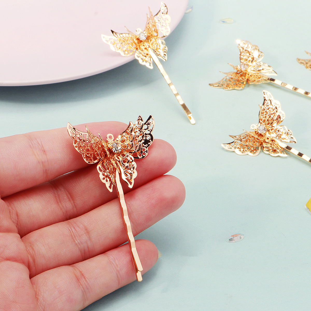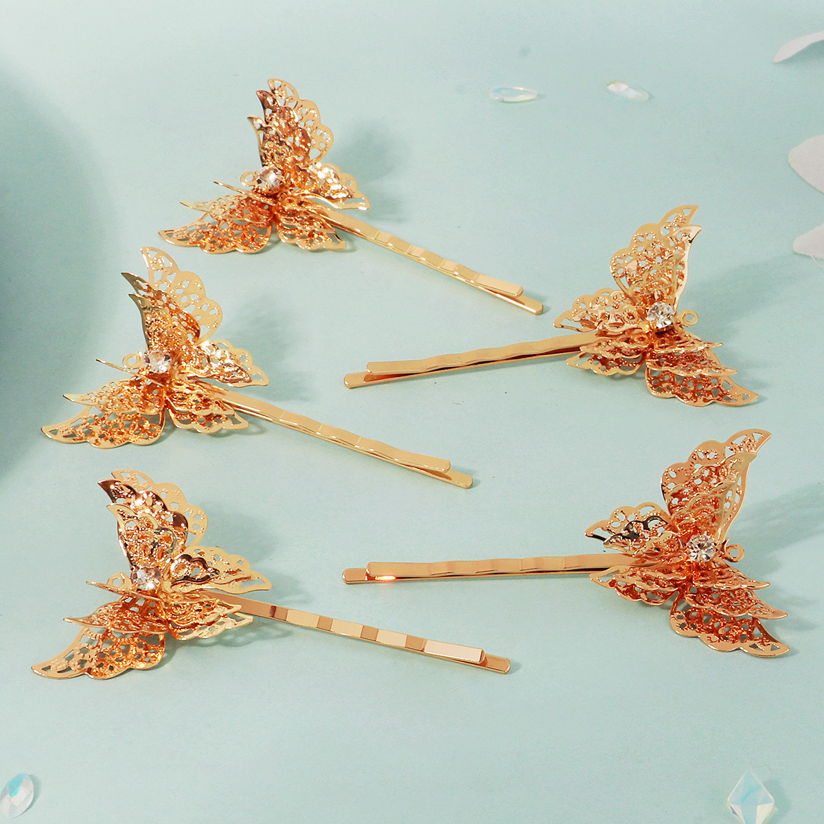 中式婚礼新娘发夹古风秀禾服造型发饰古风写真金色蝴蝶一字夹套装