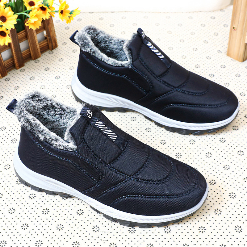 棉鞋男冬季跨境大码棉靴一脚蹬加绒加厚情侣雪地靴保暖老人靴短靴