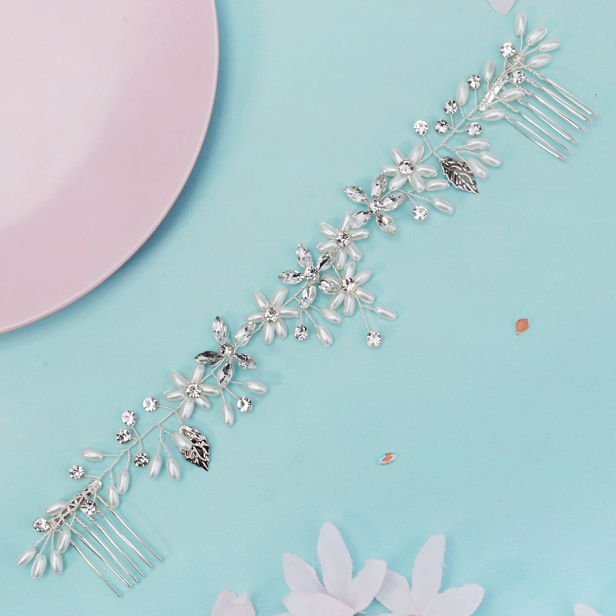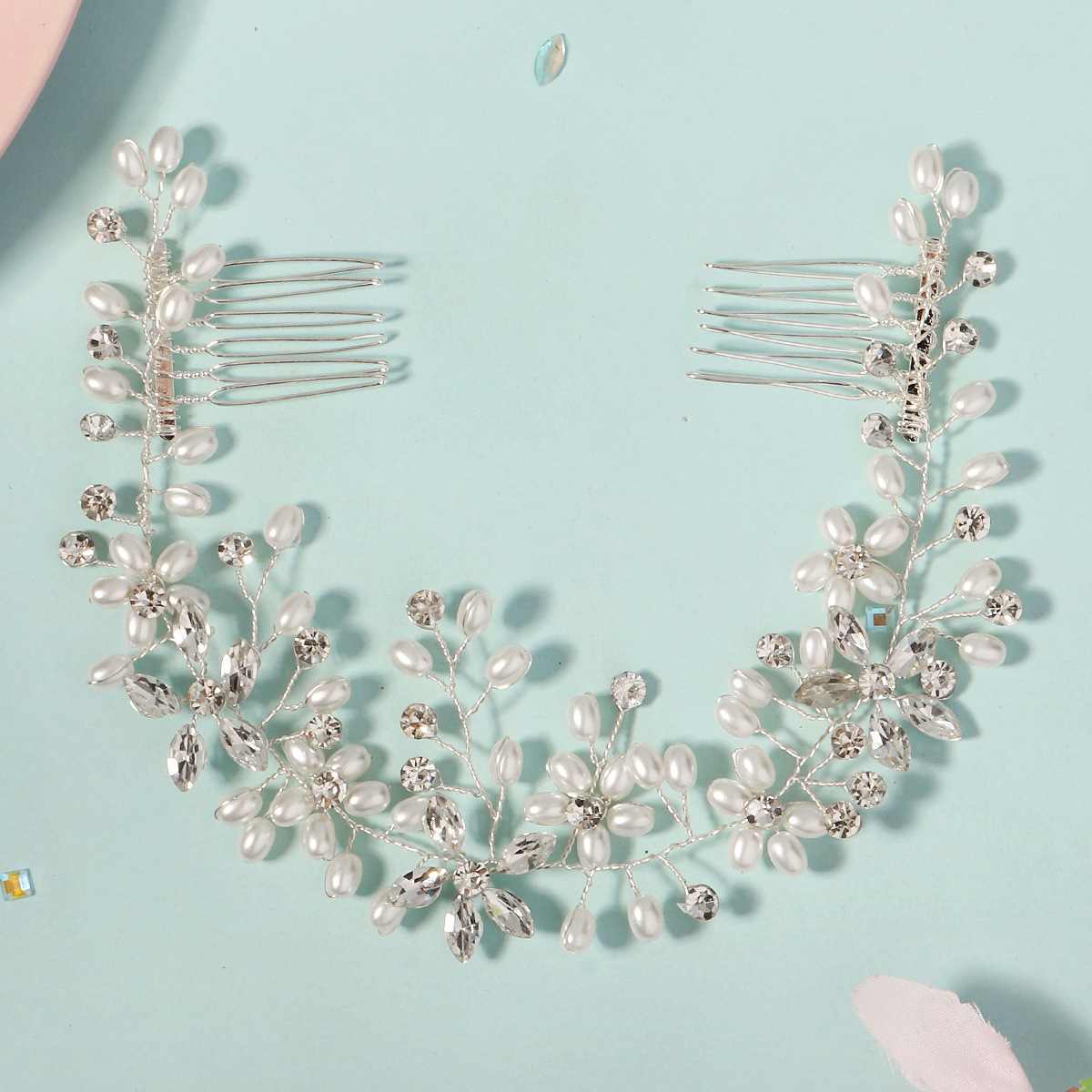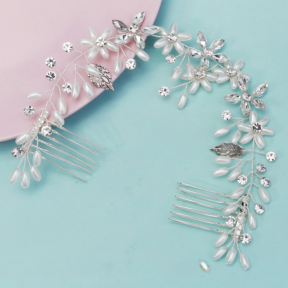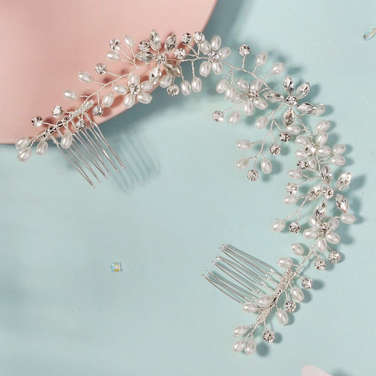 欧美时尚新娘水钻珍珠头带手工串珠双梳发带简约百搭盘发编发头饰