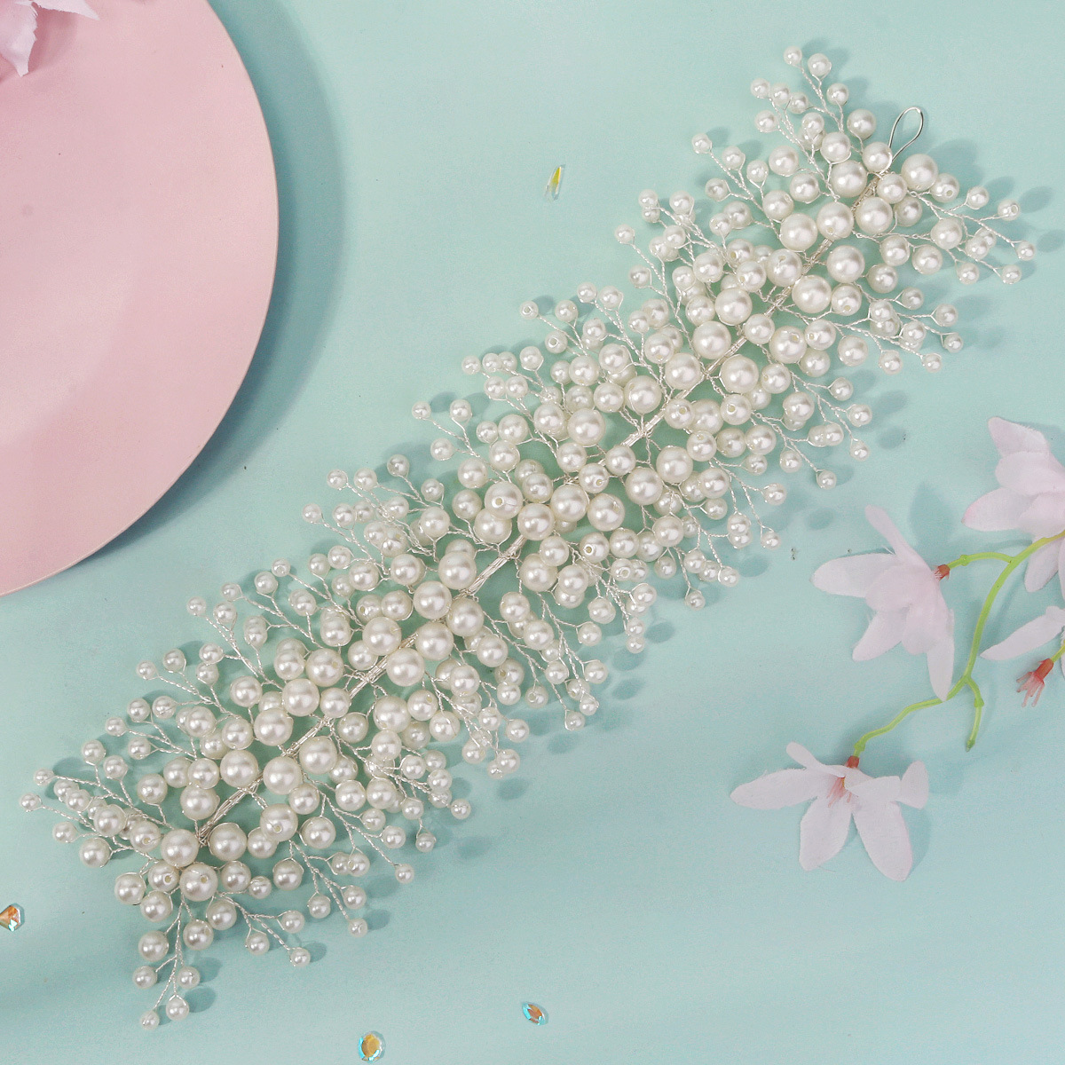 新款夸张珍珠新娘发带结婚头饰蜜月旅行写真发饰百搭婚纱礼服配饰
