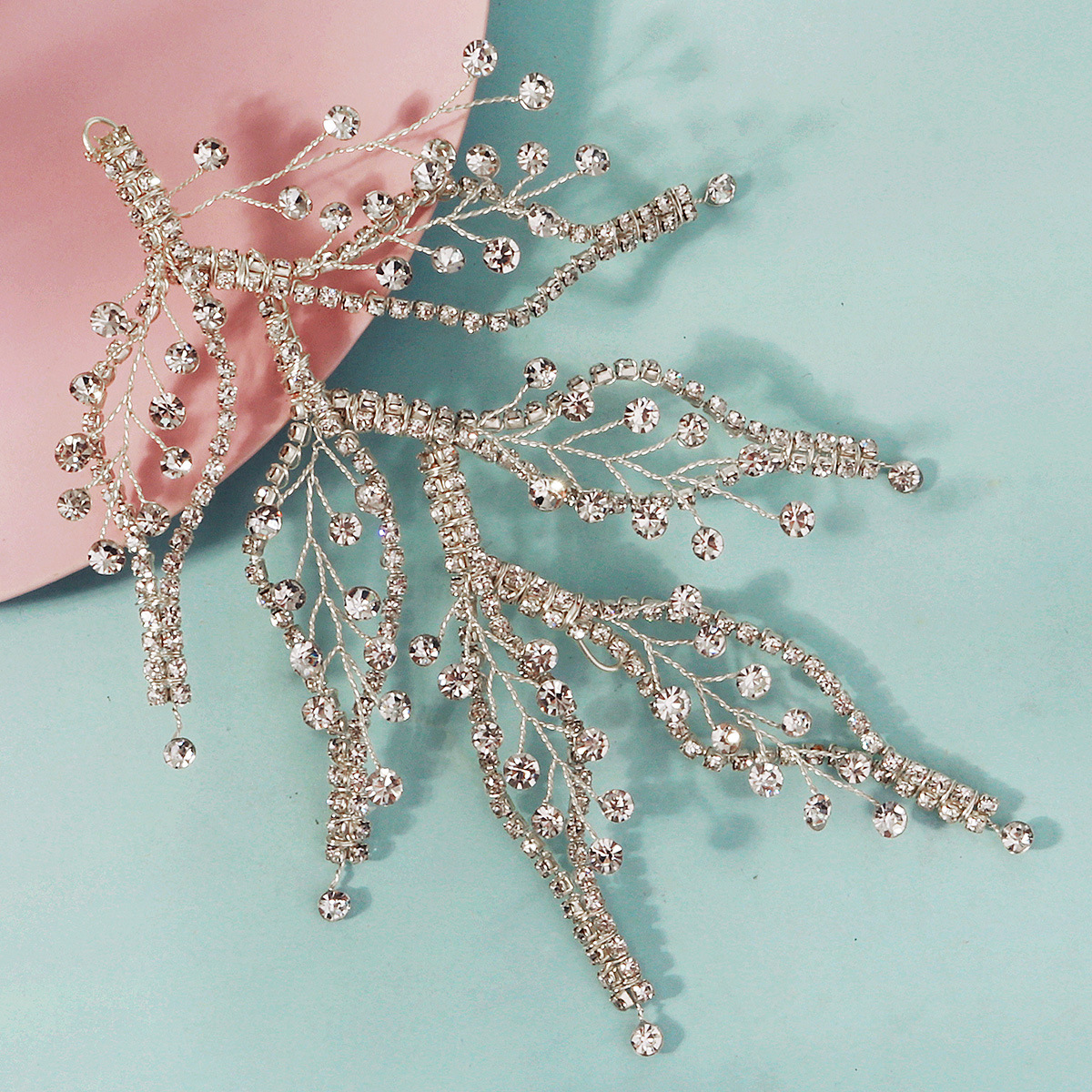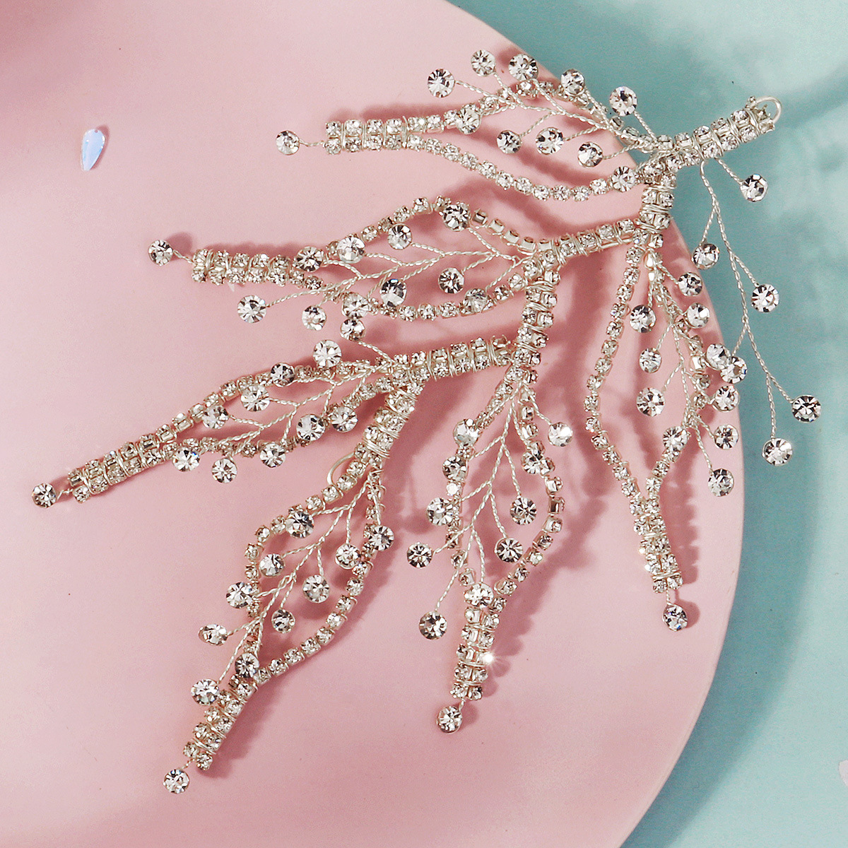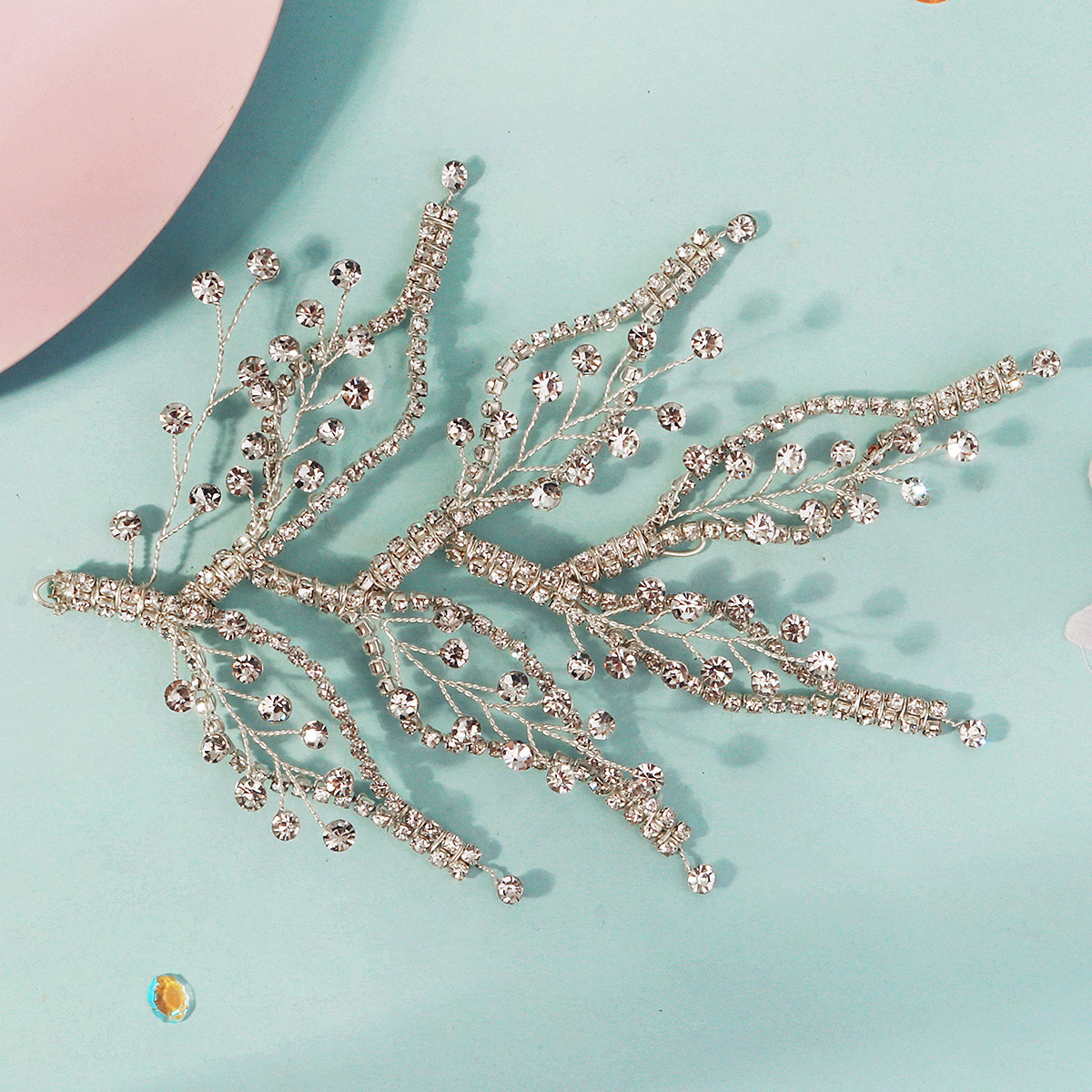 夸张奢华欧美新娘水钻发片重工满钻叶子发带复古秀禾婚纱礼服发饰