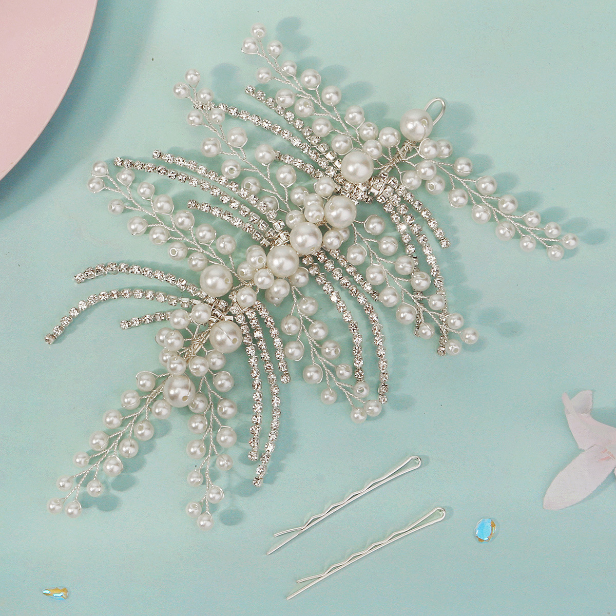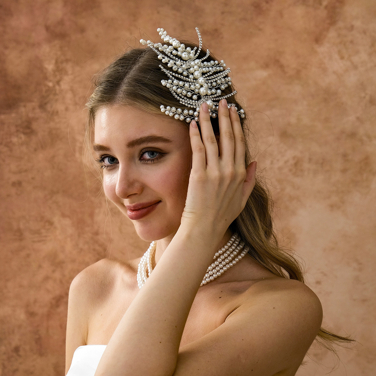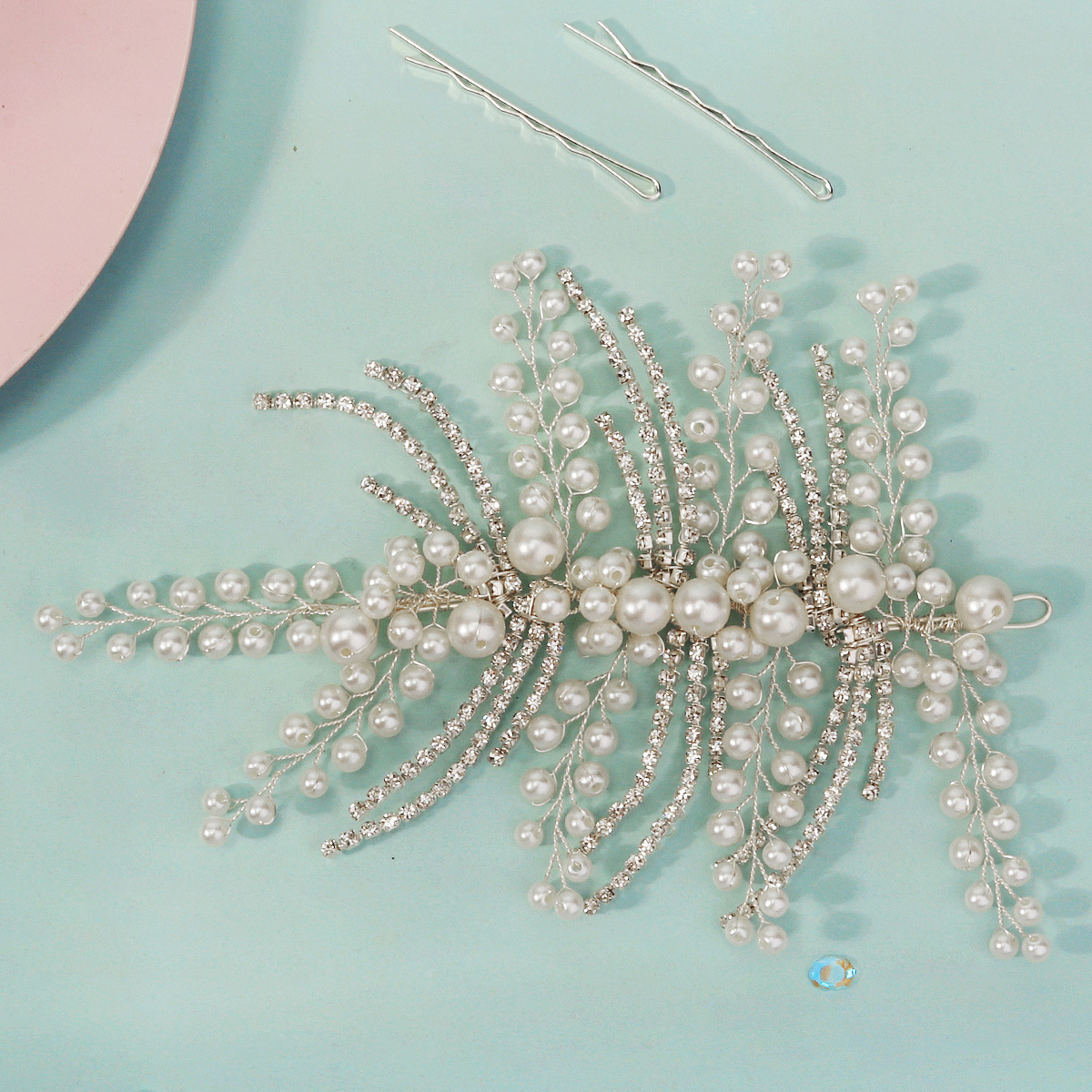 唯美珍珠新娘发带重工串珠叶子发饰舞蹈演出头饰轻奢高级婚纱配饰