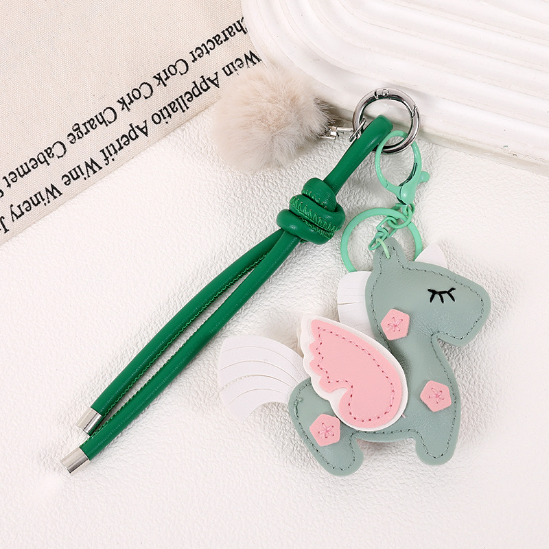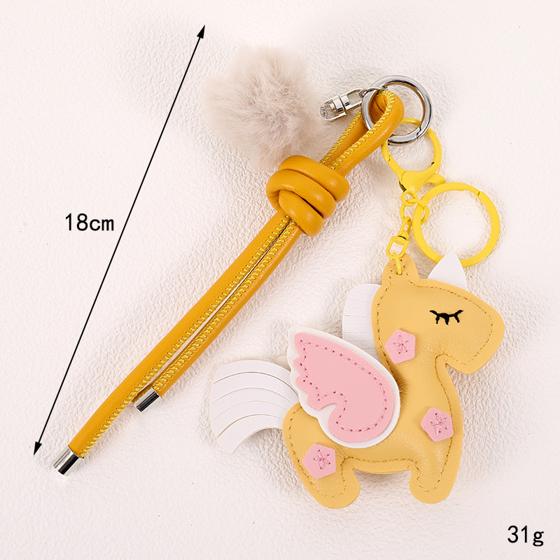 创意秋冬毛绒球装饰包包挂件高级感手工缝制撞色独角兽手机挂件