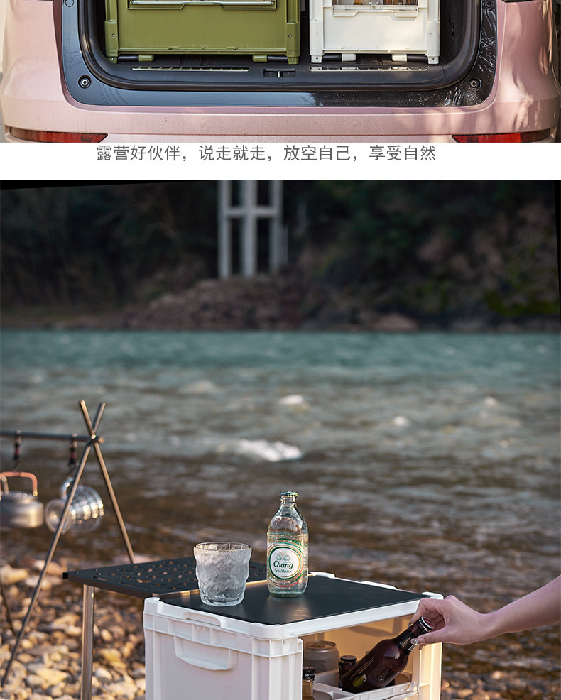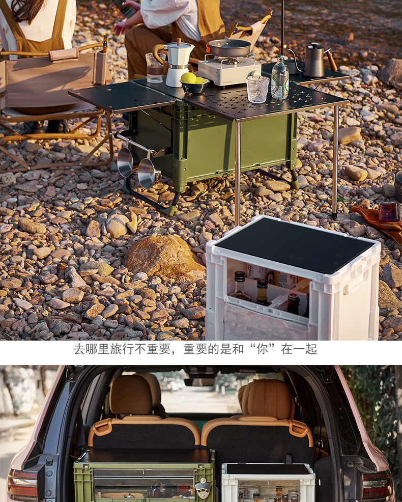 户外露营收纳箱翻盖野营箱大容量储物箱不锈钢桌面置物箱车载后备