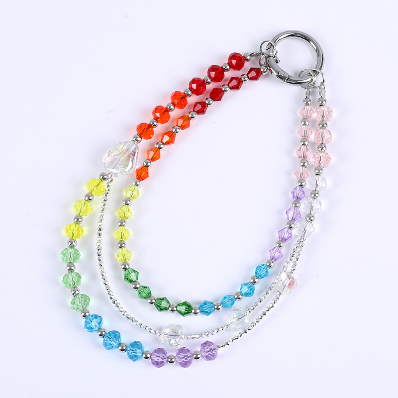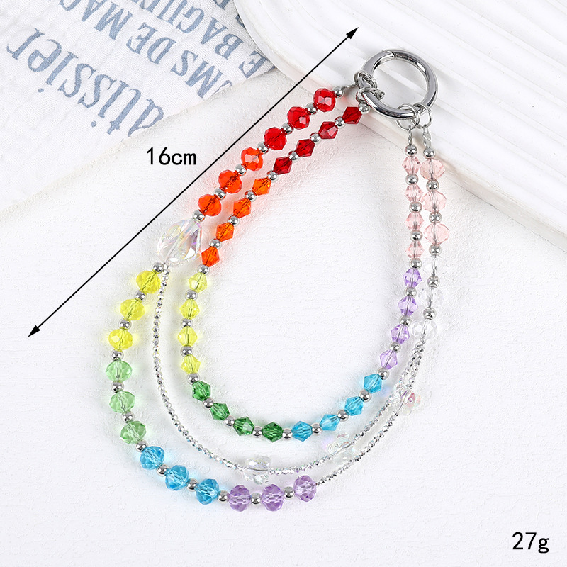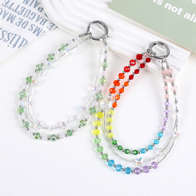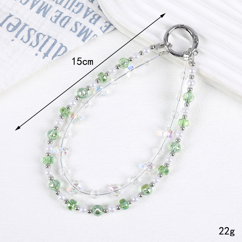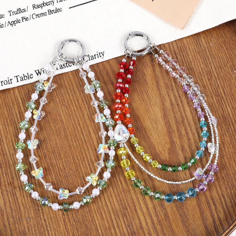 小众新款手工串珠双链条手机挂链百搭琉璃彩色蝴蝶短款手机挂件