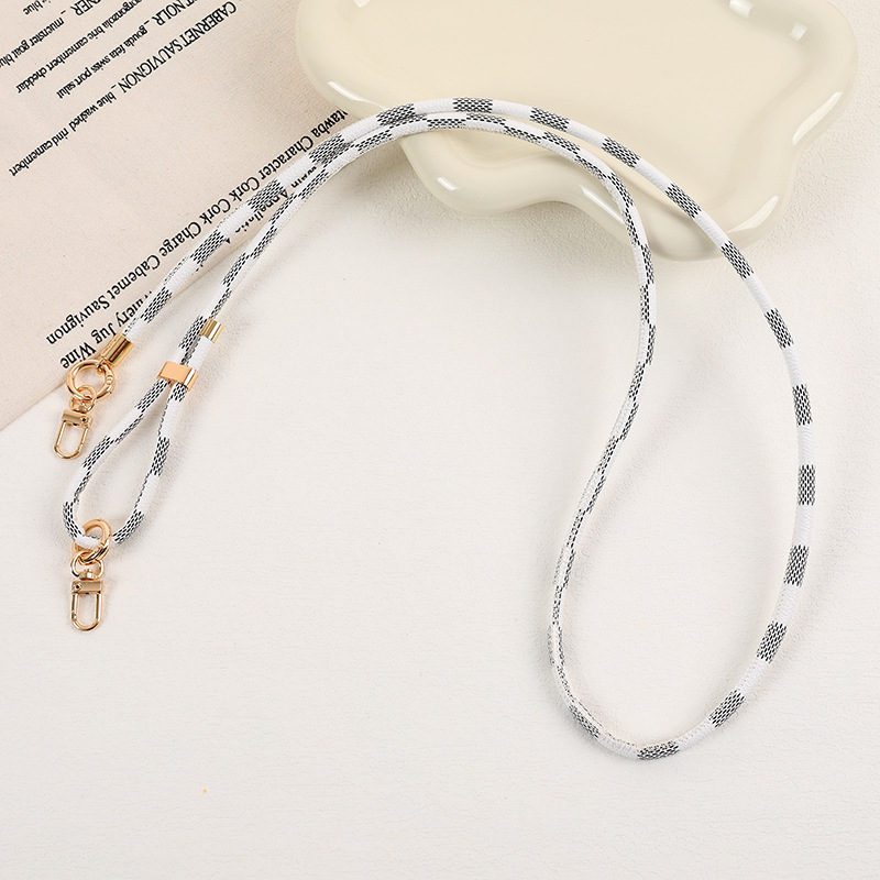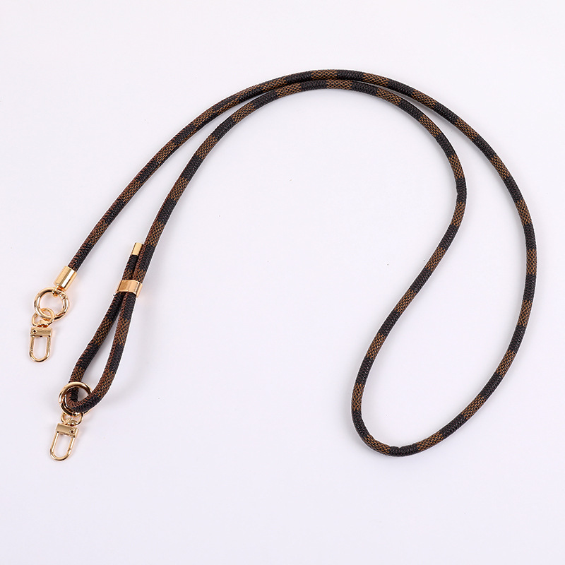 时尚创意皮革格纹斜挎链防摔手机挂件小众ins双扣可调节包包挂件