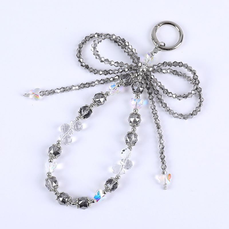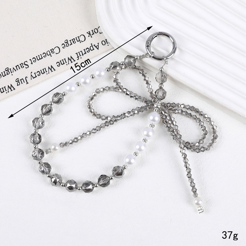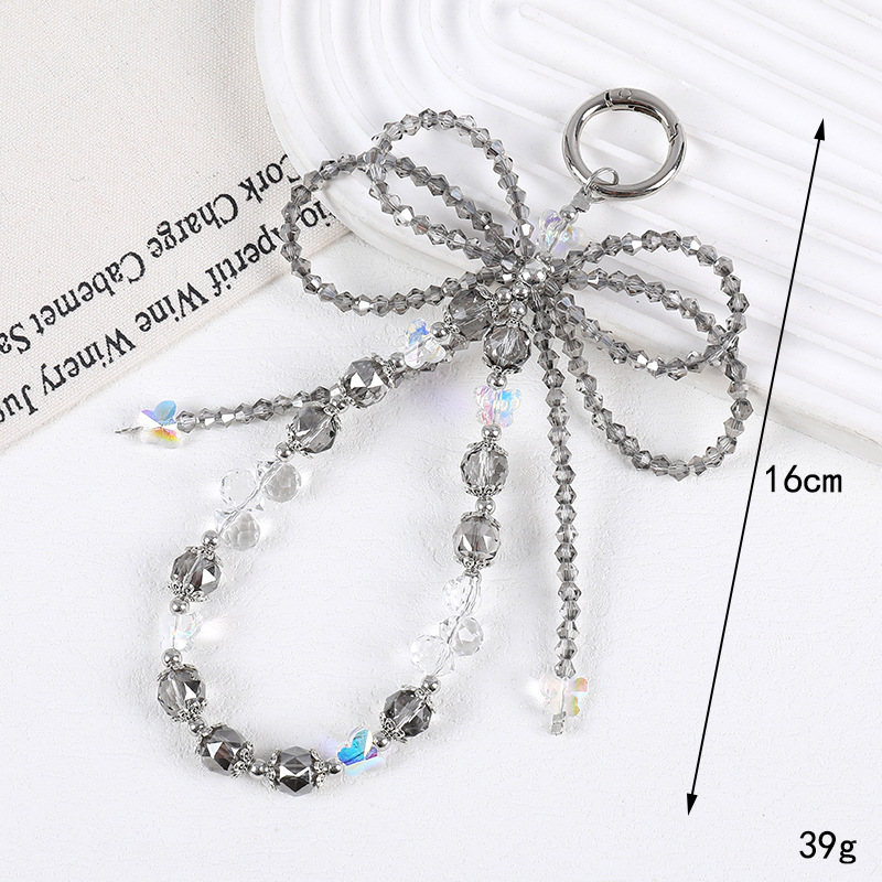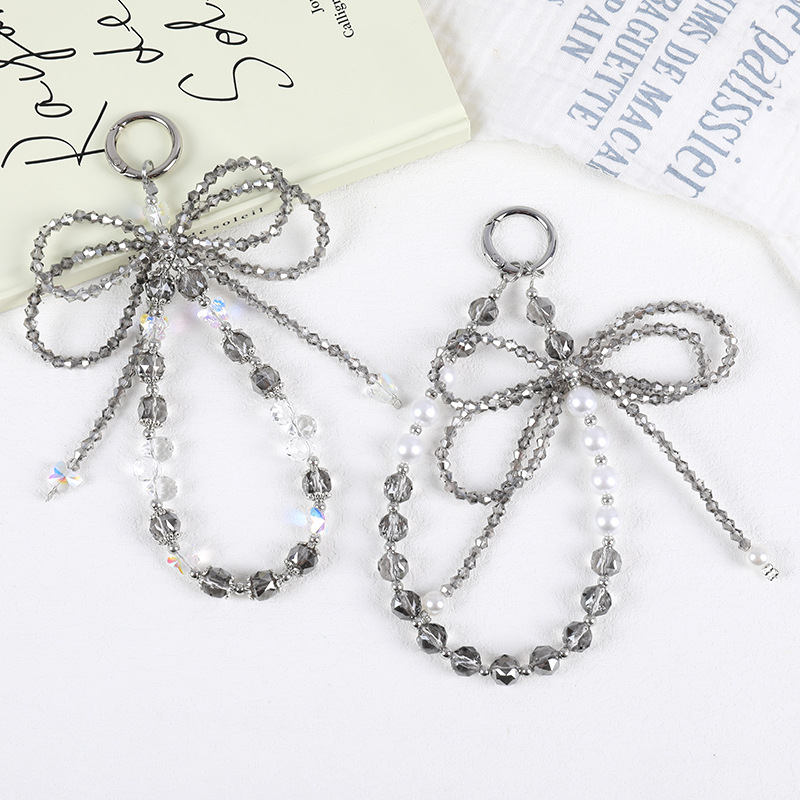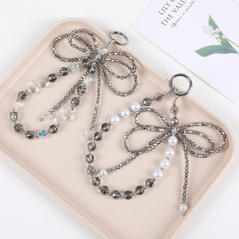 小众时尚泪滴串珠手腕式手机挂件高级感双蝴蝶结装饰包包挂件挂链