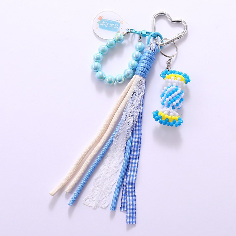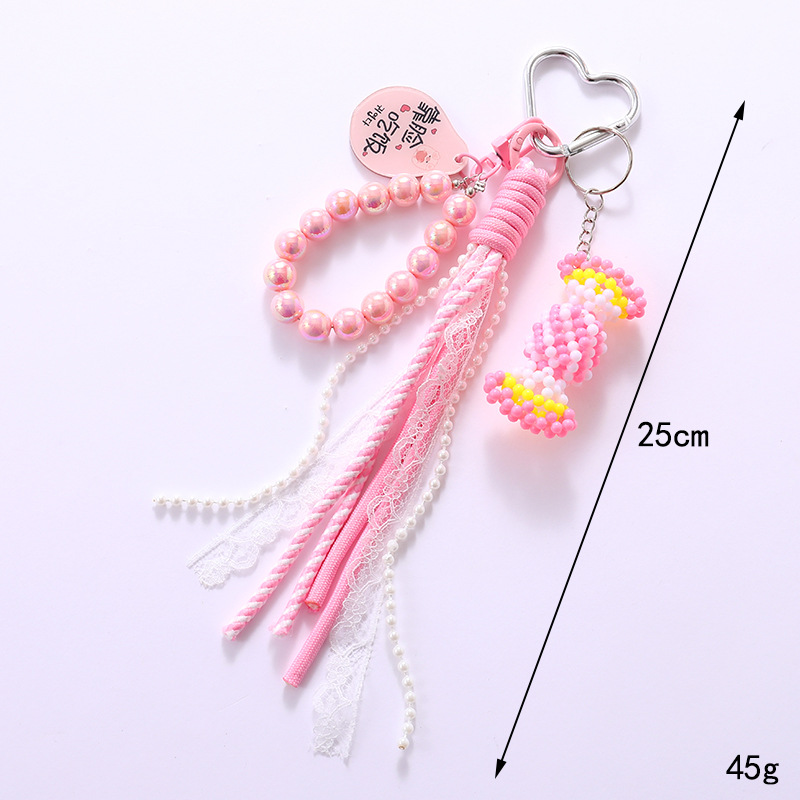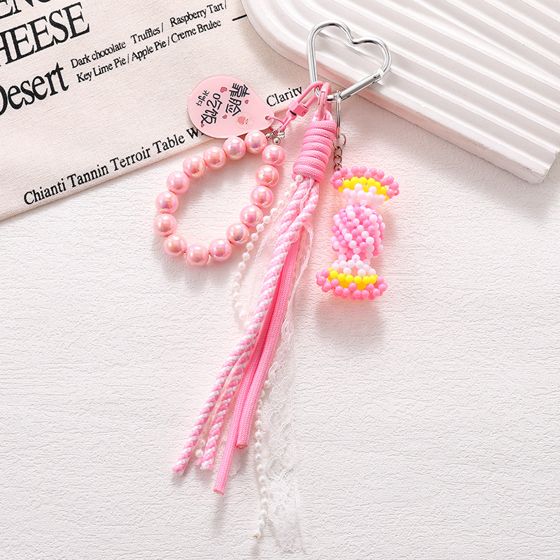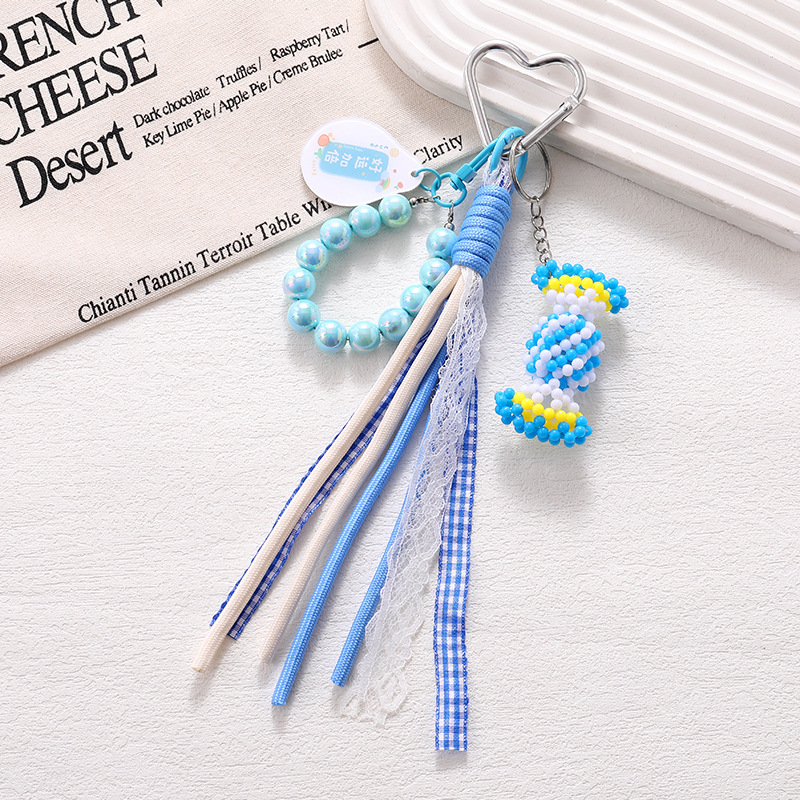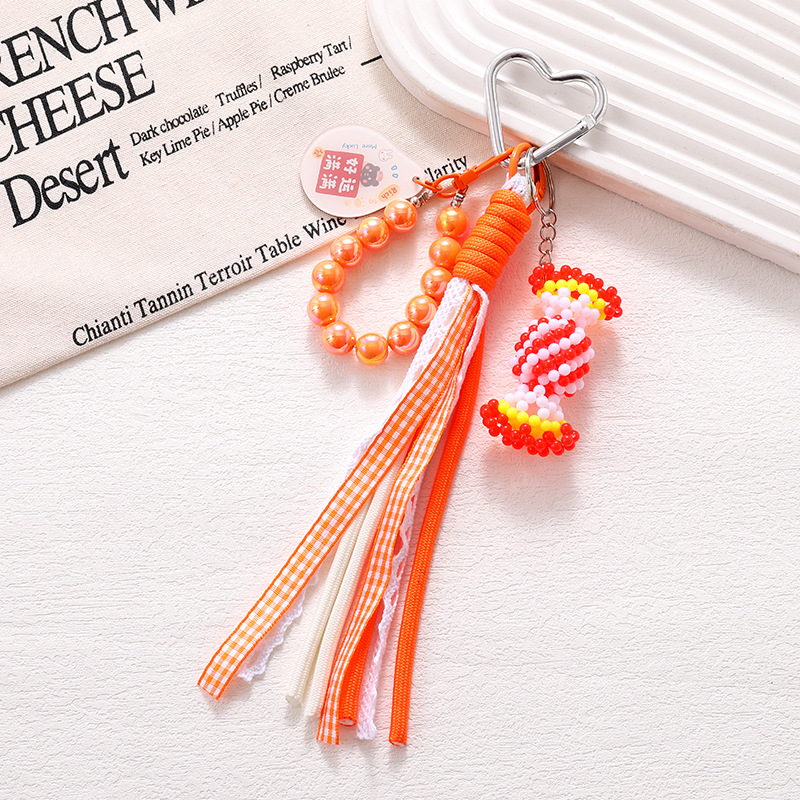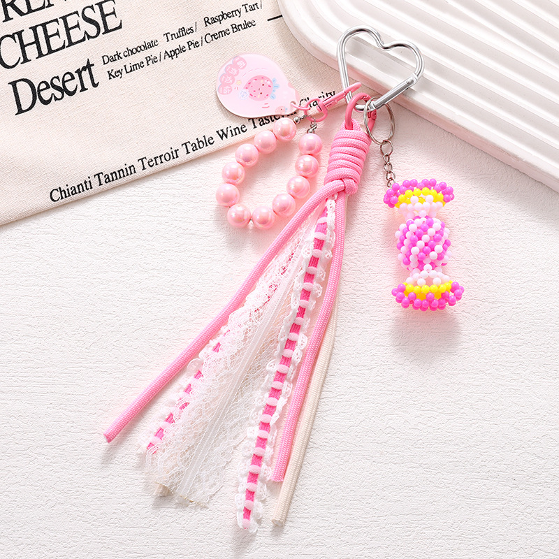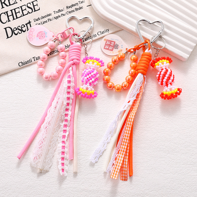 新款夏日miu系手工编织亚克力糖果手机挂件个性编织绳箱包挂件女