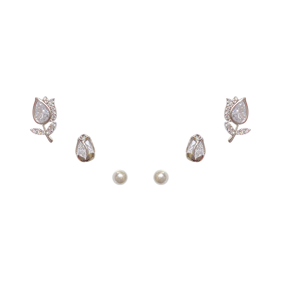 S925银针精致锆石养耳小耳钉轻奢小众百搭套装耳环气质珍珠耳饰女