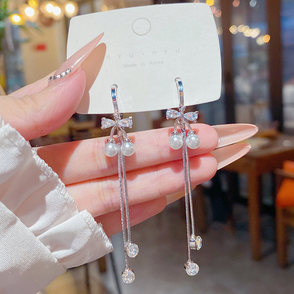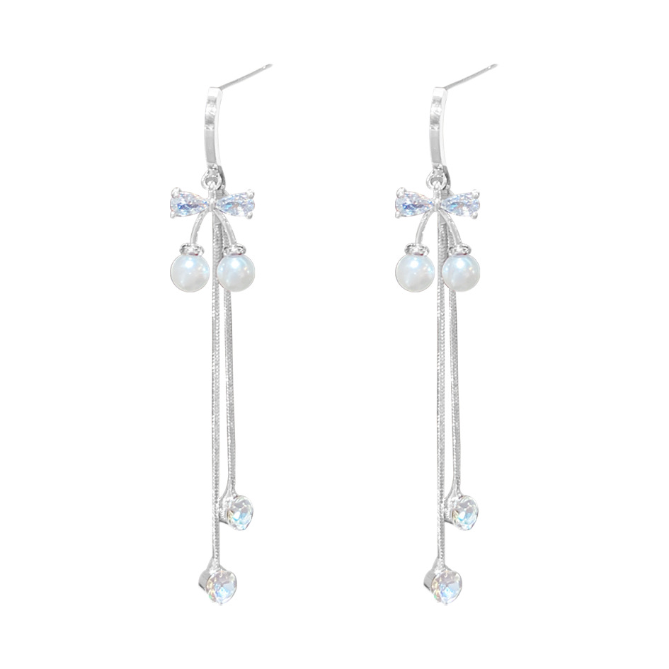 韩版甜美樱桃流苏耳环轻奢高级感气质长款耳钉个性百搭精致耳饰女