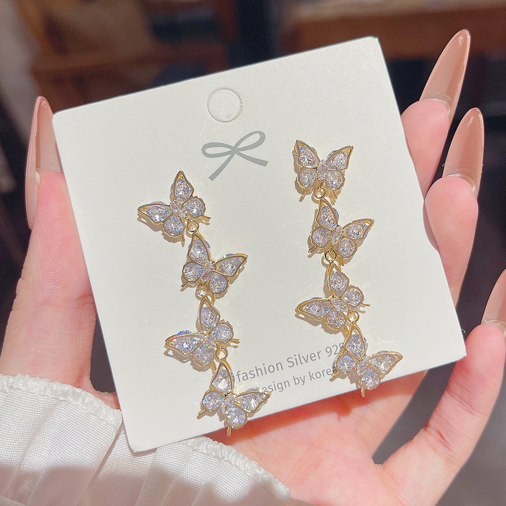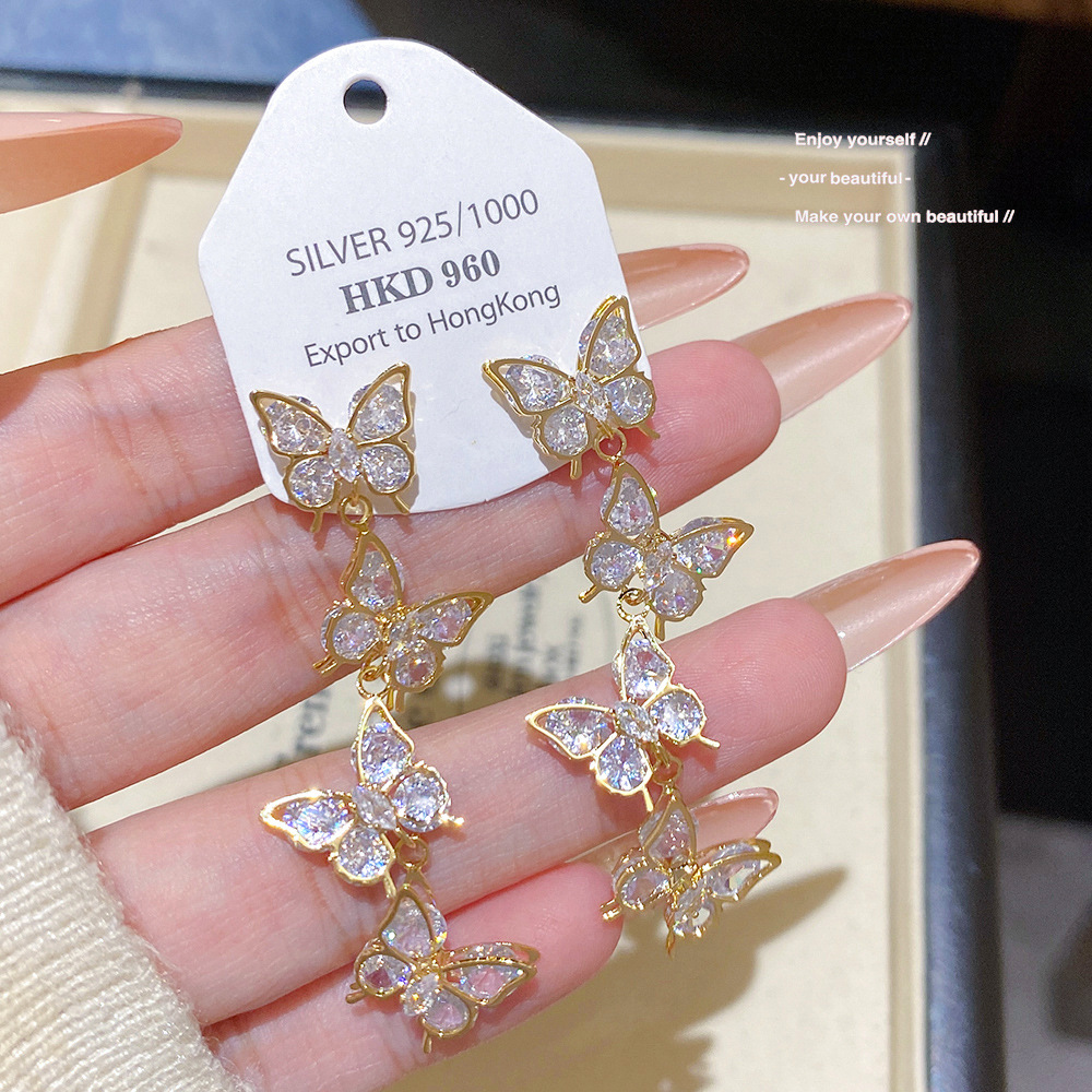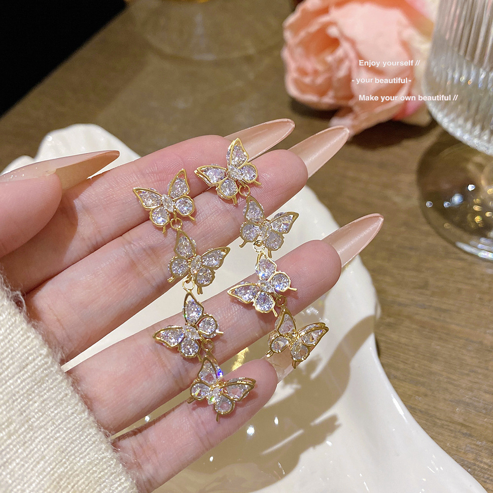 超仙甜美锆石蝴蝶流苏耳环女秋季精致新款耳钉轻奢高级感气质耳饰
