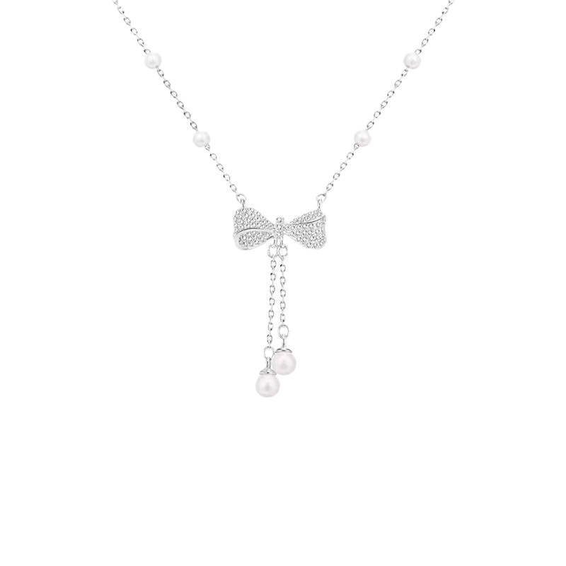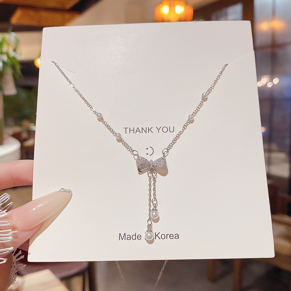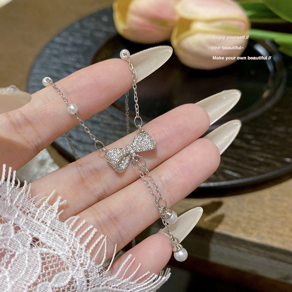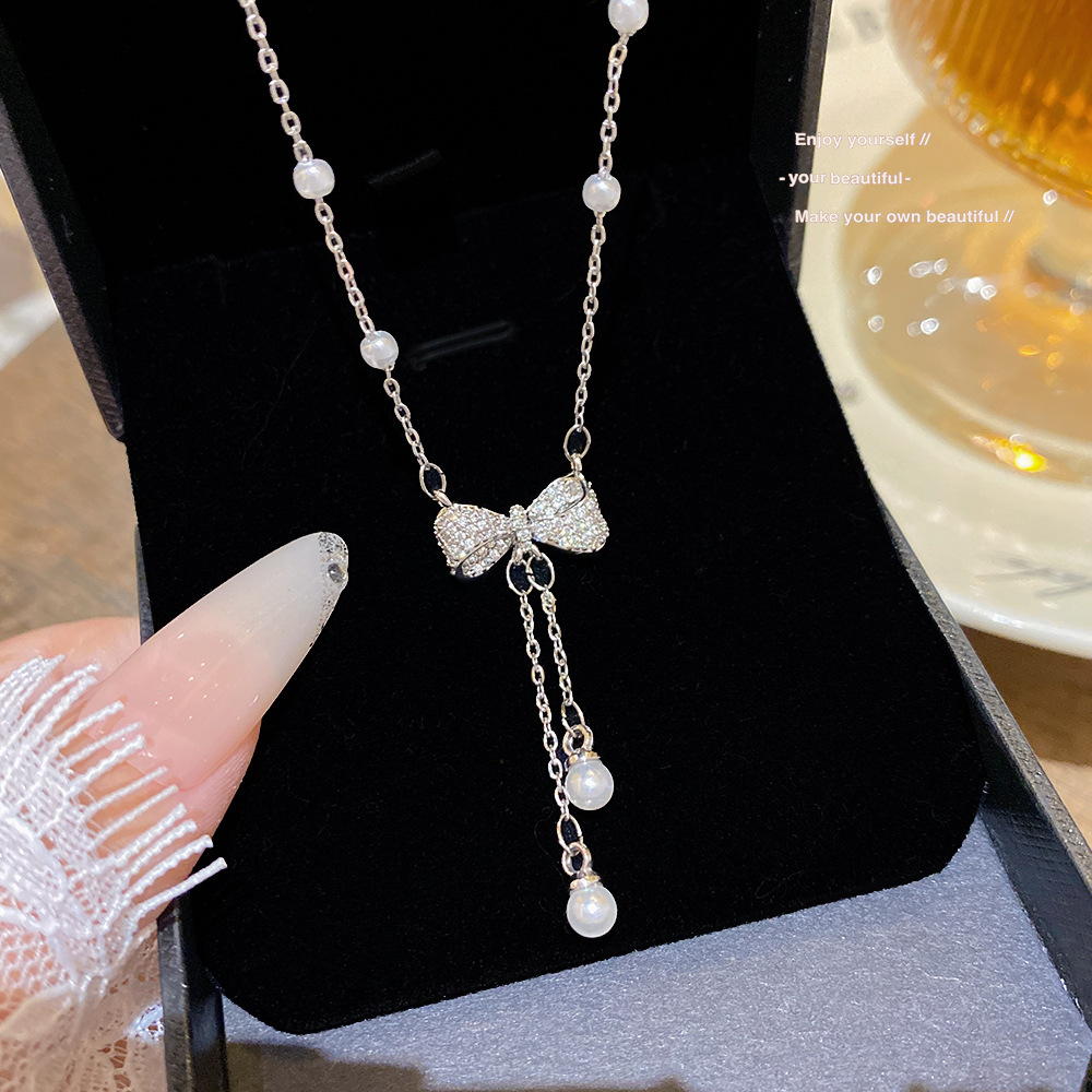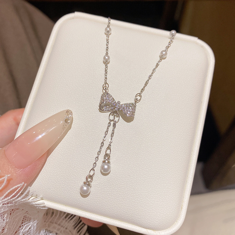 超闪锆石珍珠项链女ins风爆款锁骨链高级感蝴蝶结流苏毛衣链配饰
