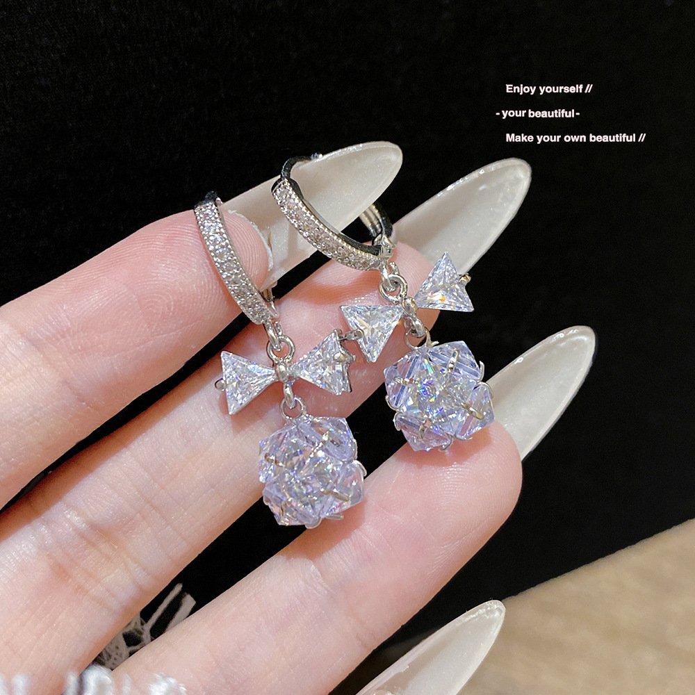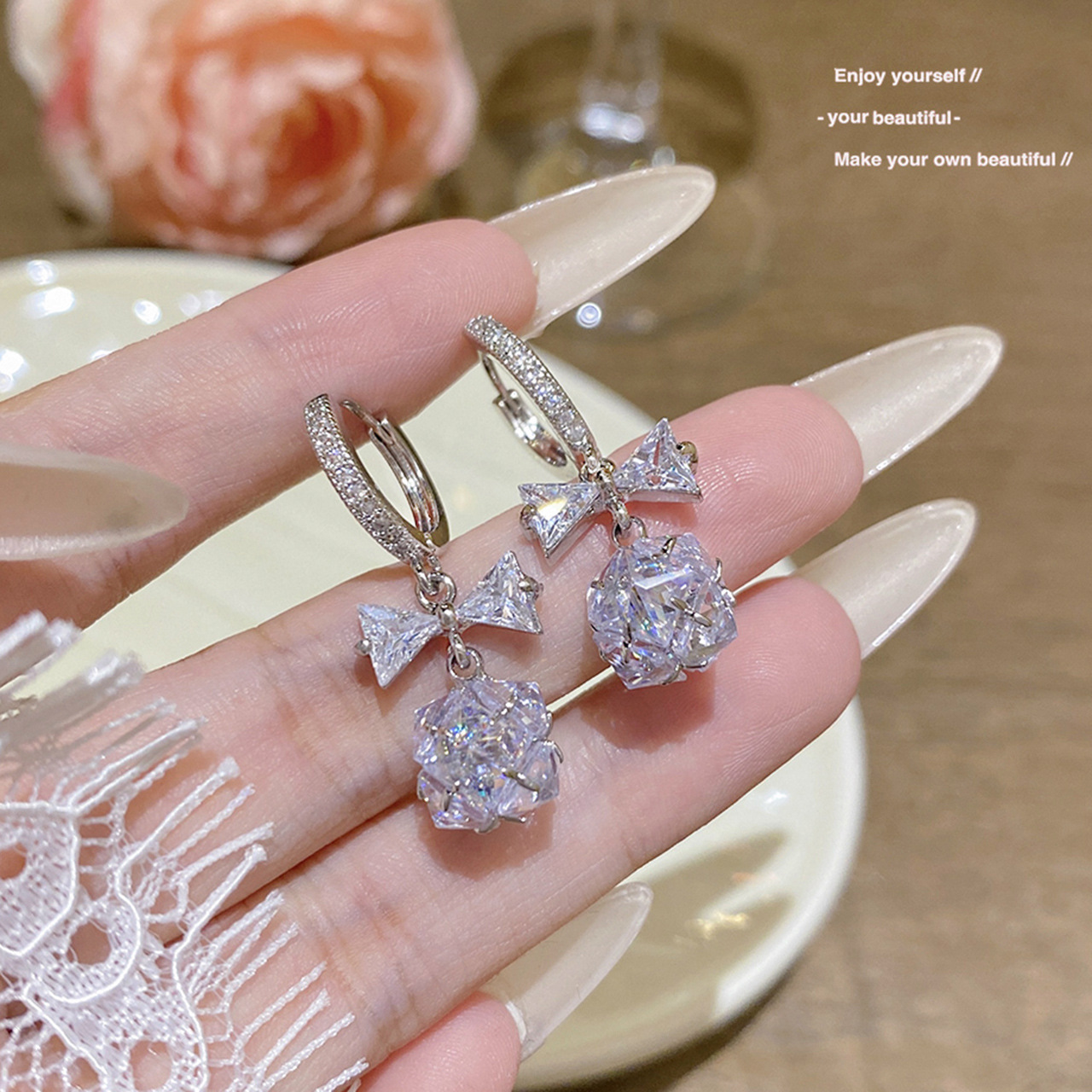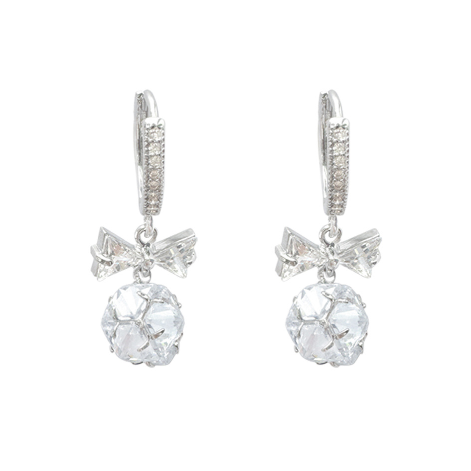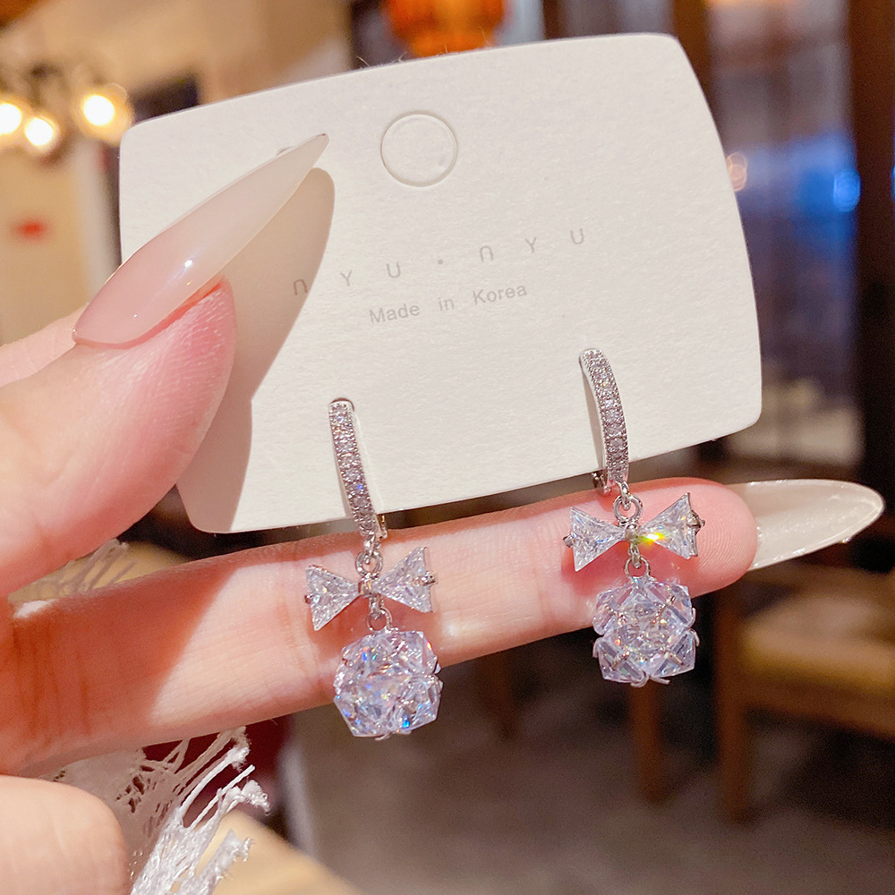 韩版小巧满锆蝴蝶结钻球耳扣女甜美气质耳环银针小众精致轻奢耳饰