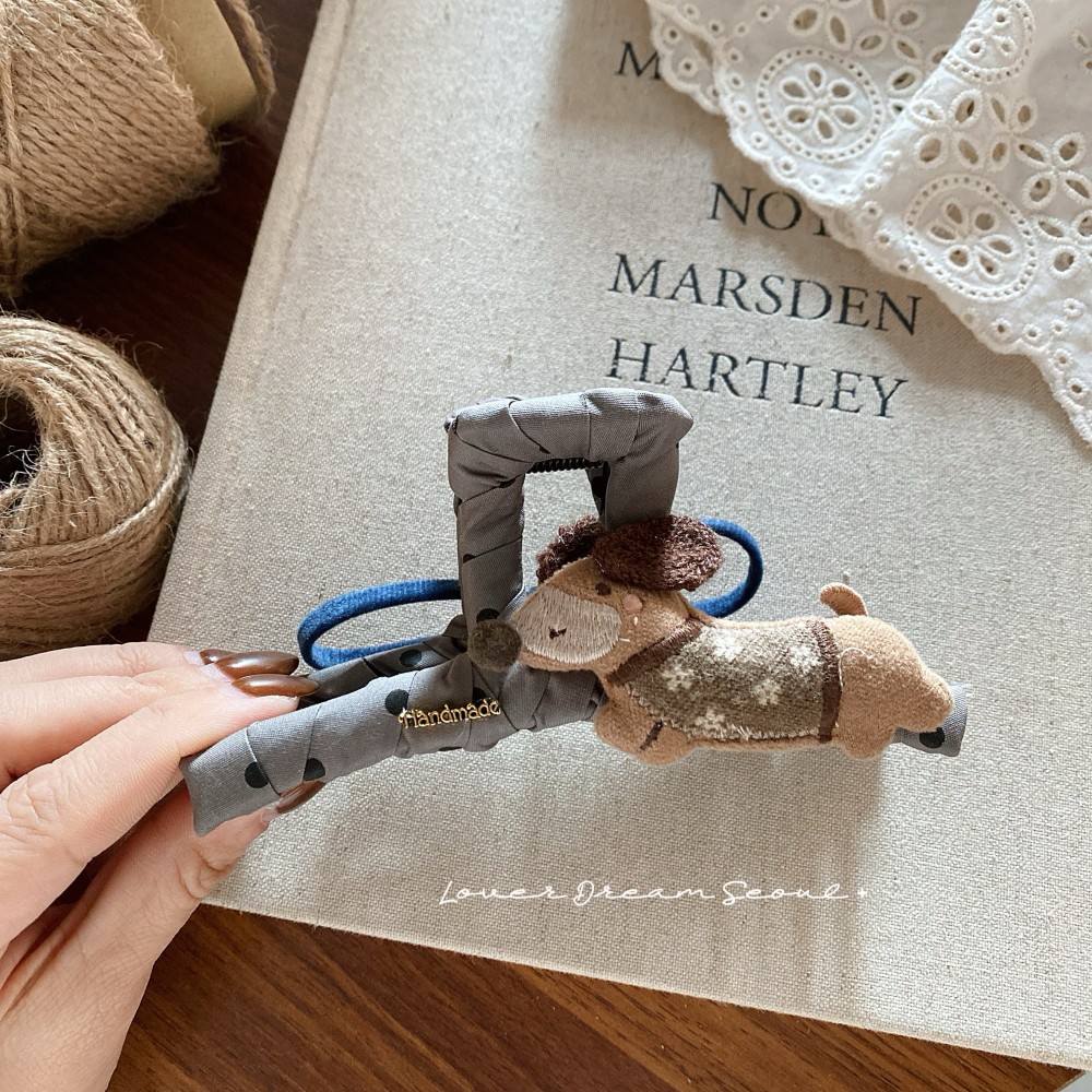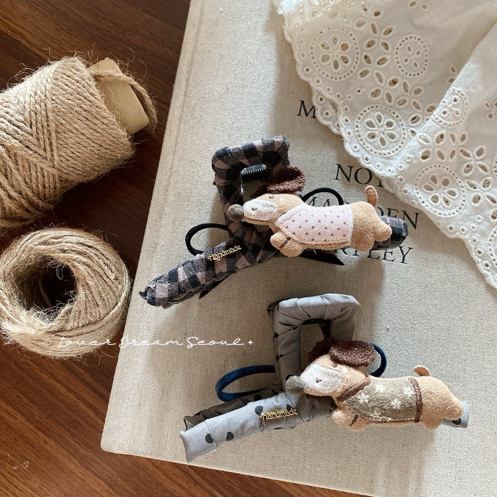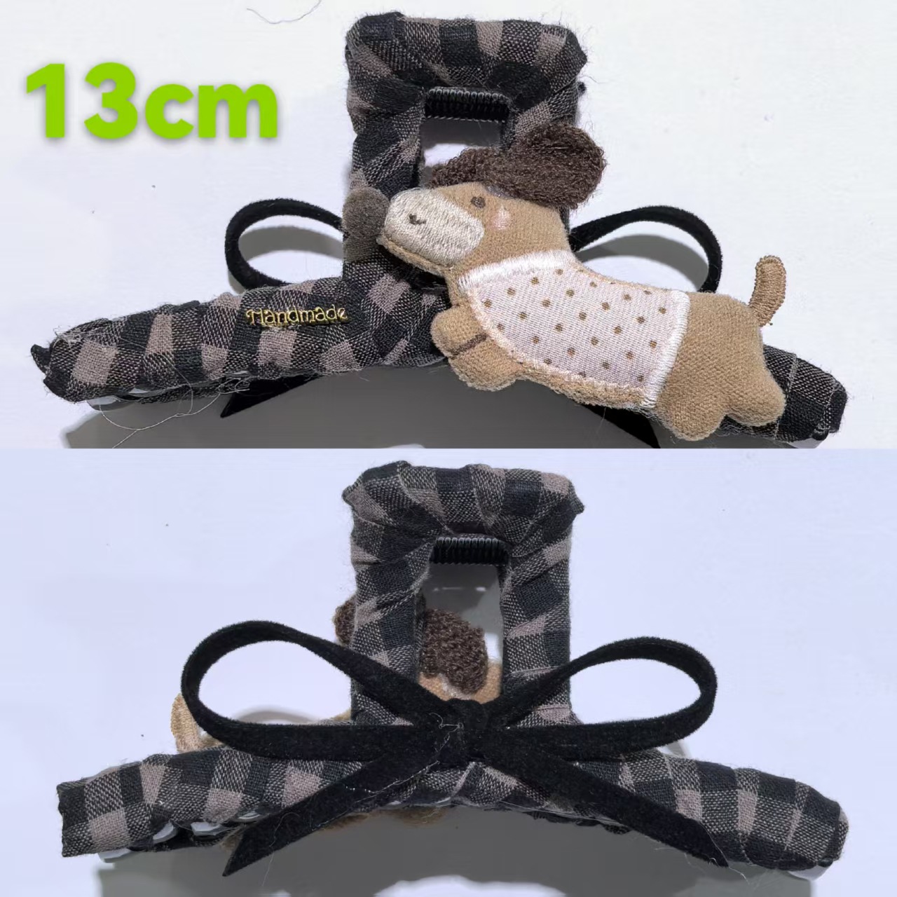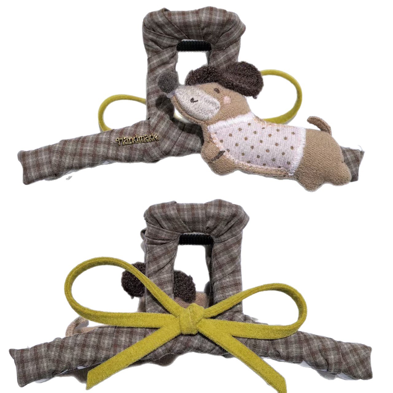 韩国秋冬新款丝绒蝴蝶结布艺小狗发夹 可爱高级抓夹鲨鱼夹发饰女