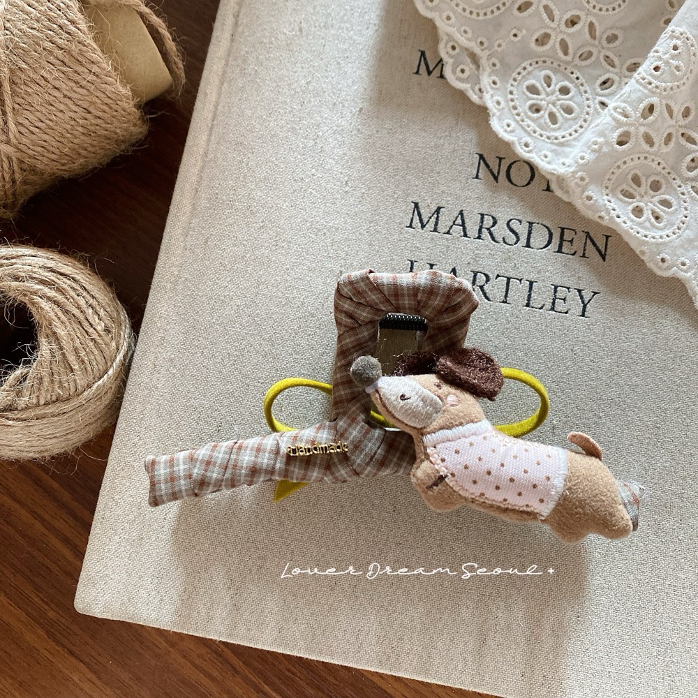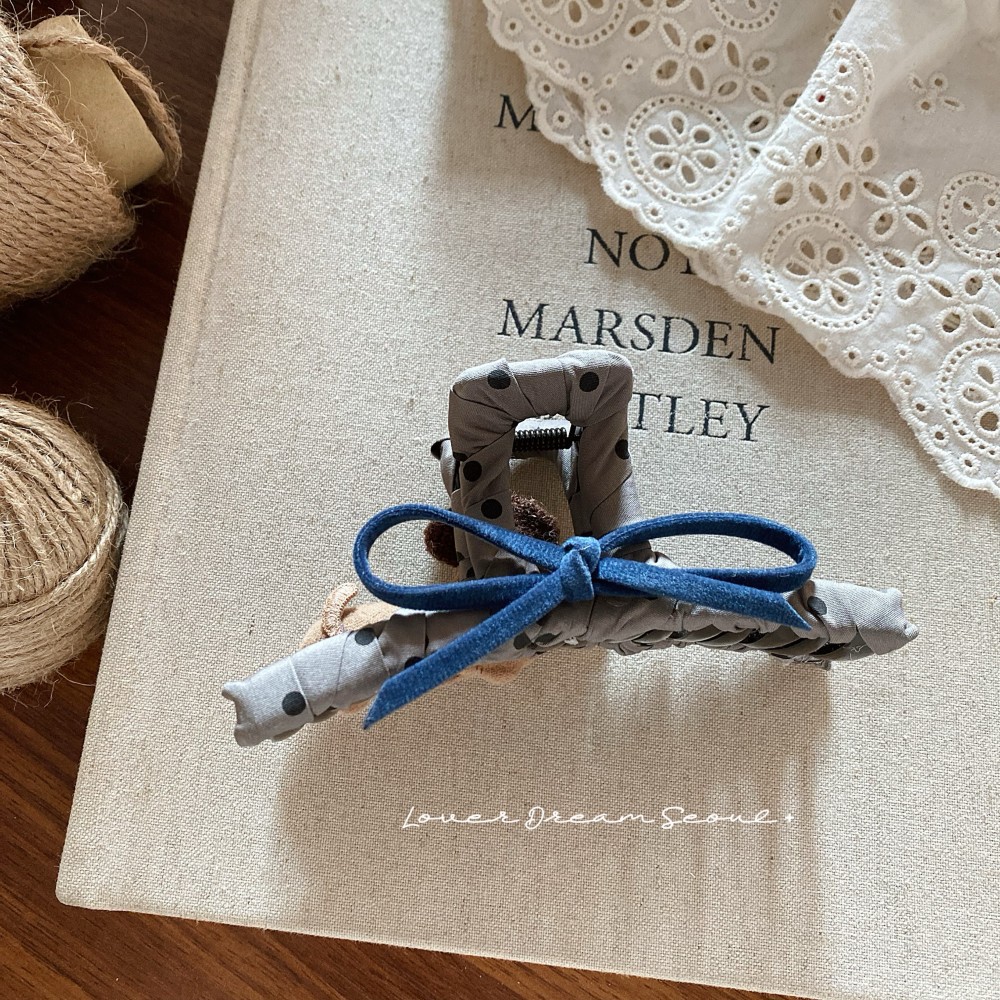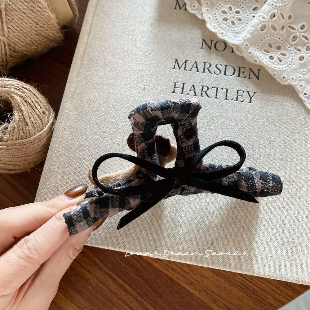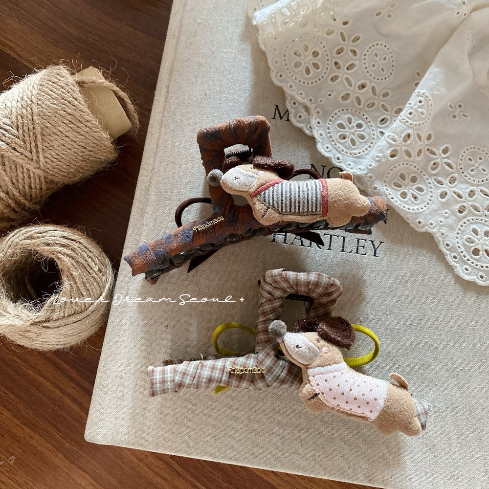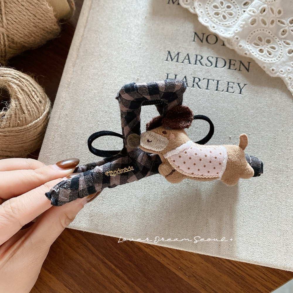 韩国秋冬新款丝绒蝴蝶结布艺小狗发夹 可爱高级抓夹鲨鱼夹发饰女