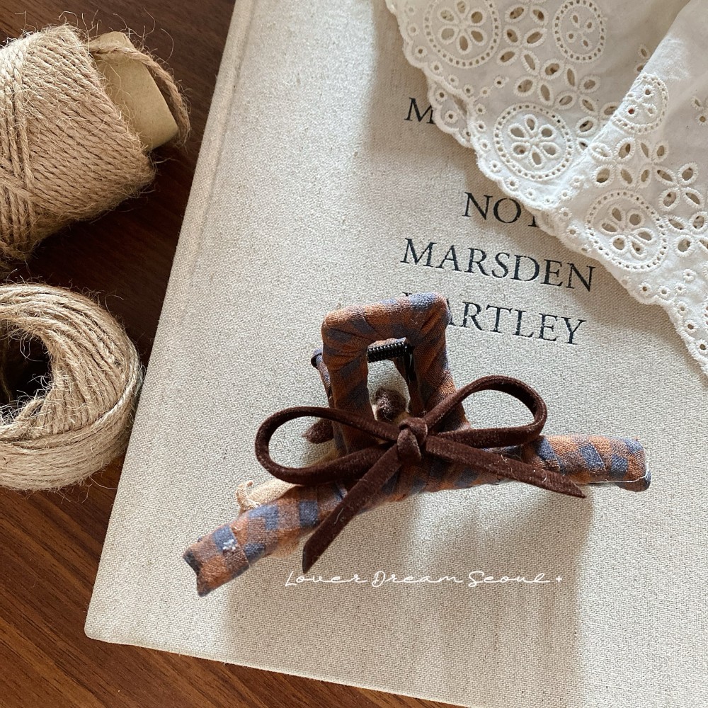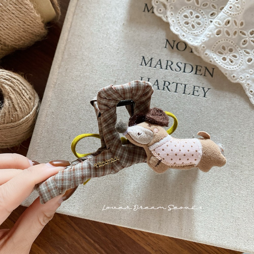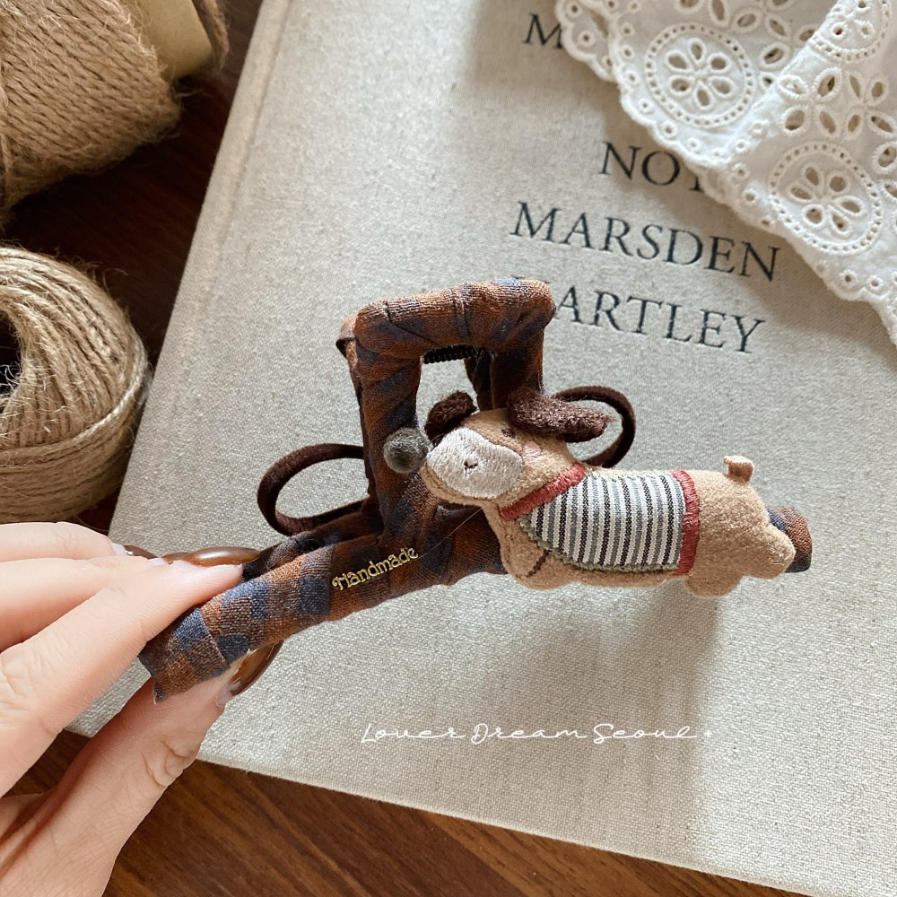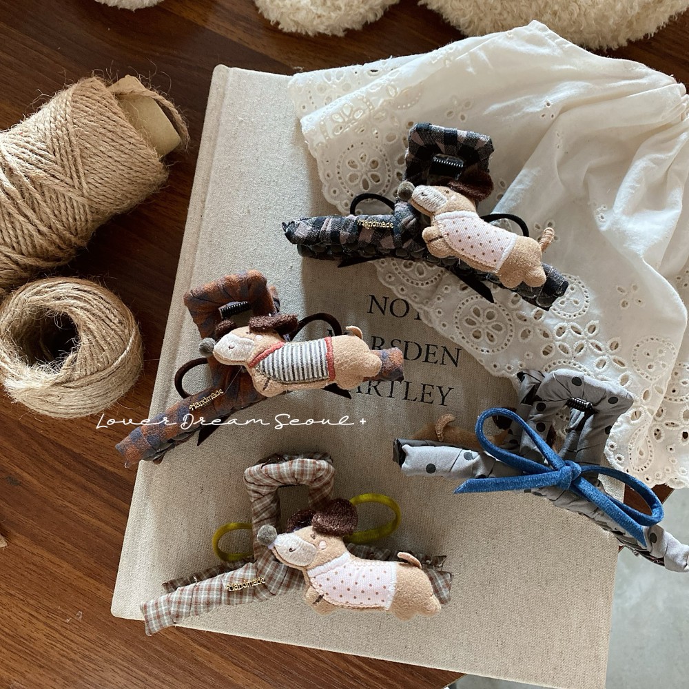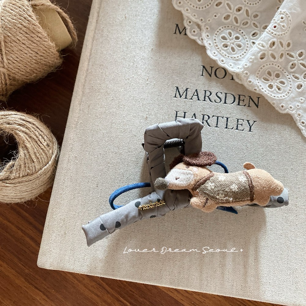 韩国秋冬新款丝绒蝴蝶结布艺小狗发夹 可爱高级抓夹鲨鱼夹发饰女