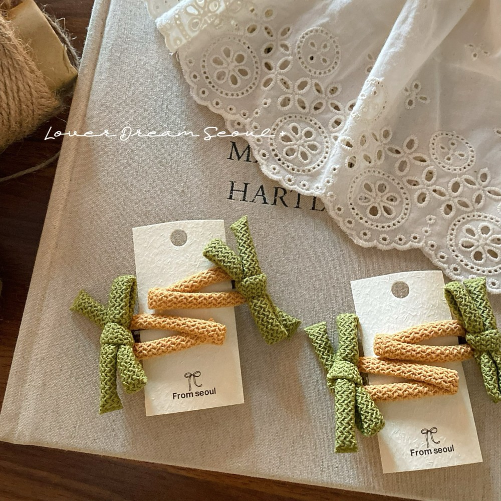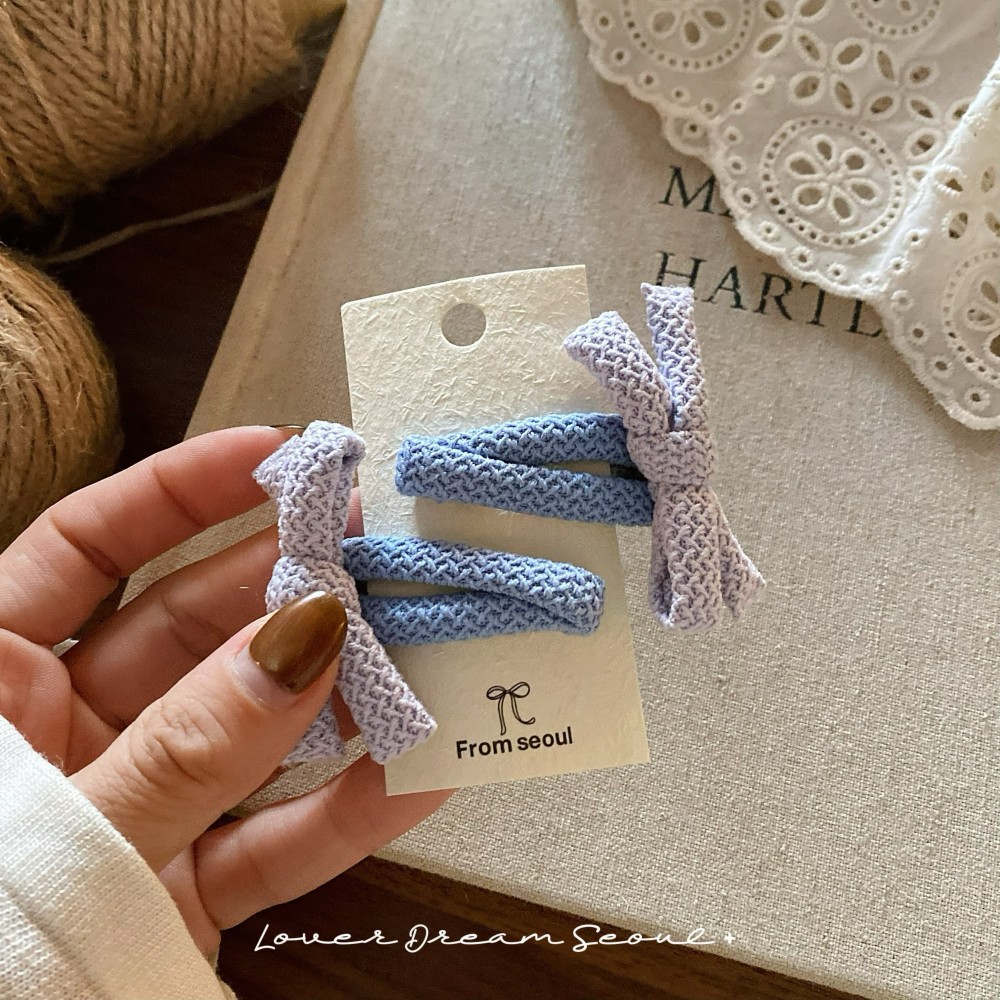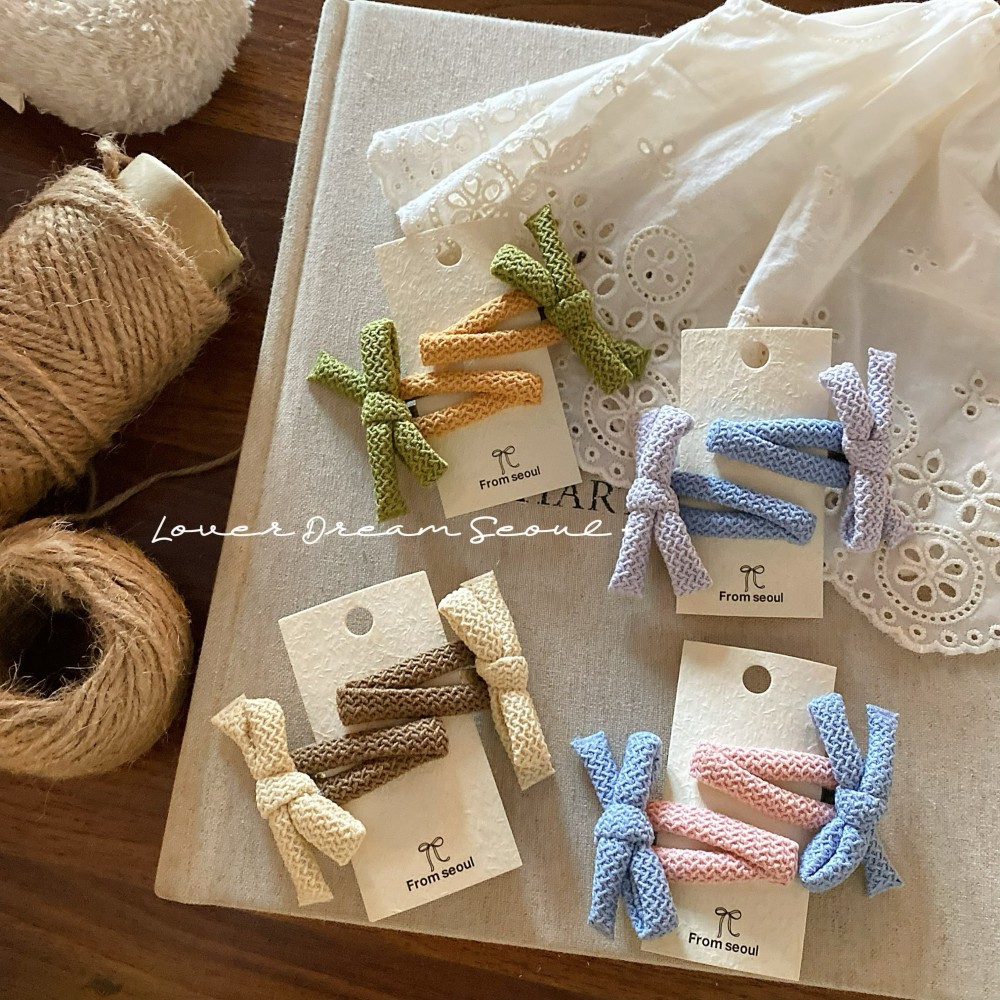 2只装韩国新款彩色泡泡布艺蝴蝶结bb夹发夹 可爱刘海夹儿童发饰女