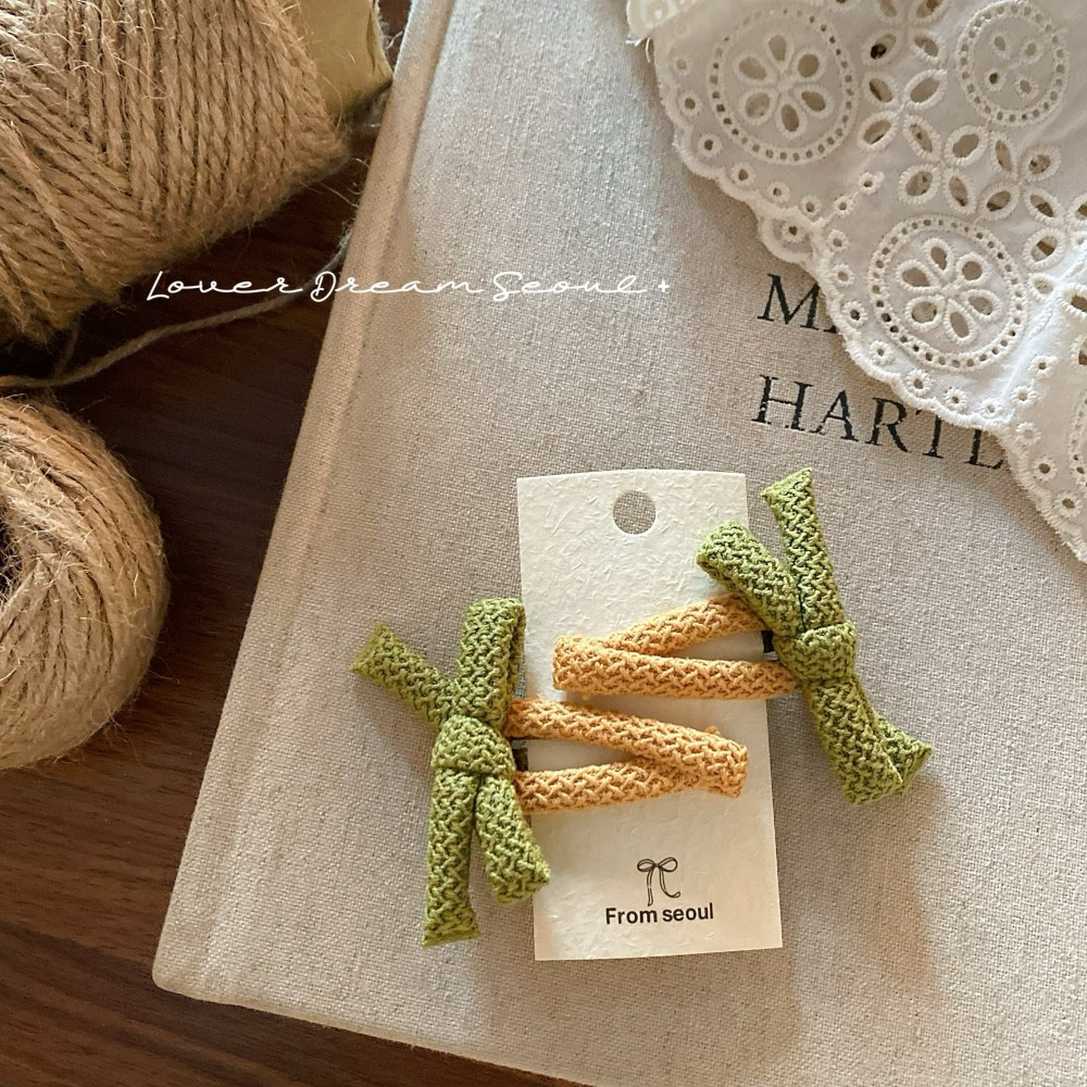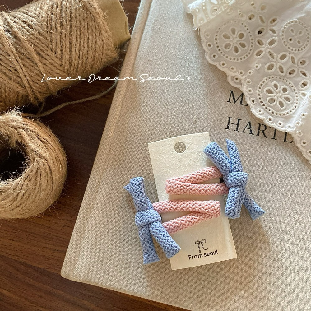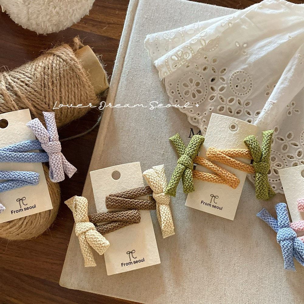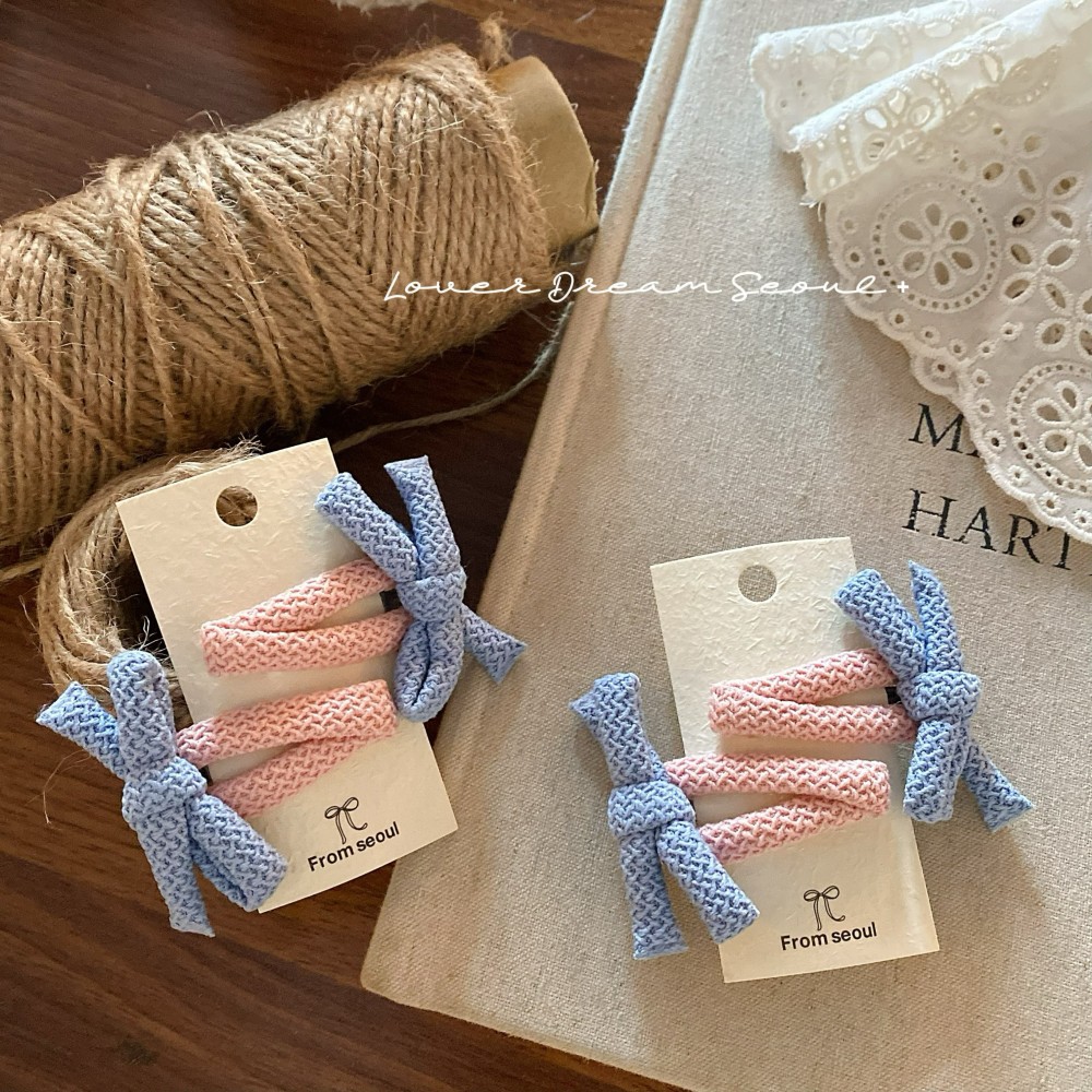 2只装韩国新款彩色泡泡布艺蝴蝶结bb夹发夹 可爱刘海夹儿童发饰女