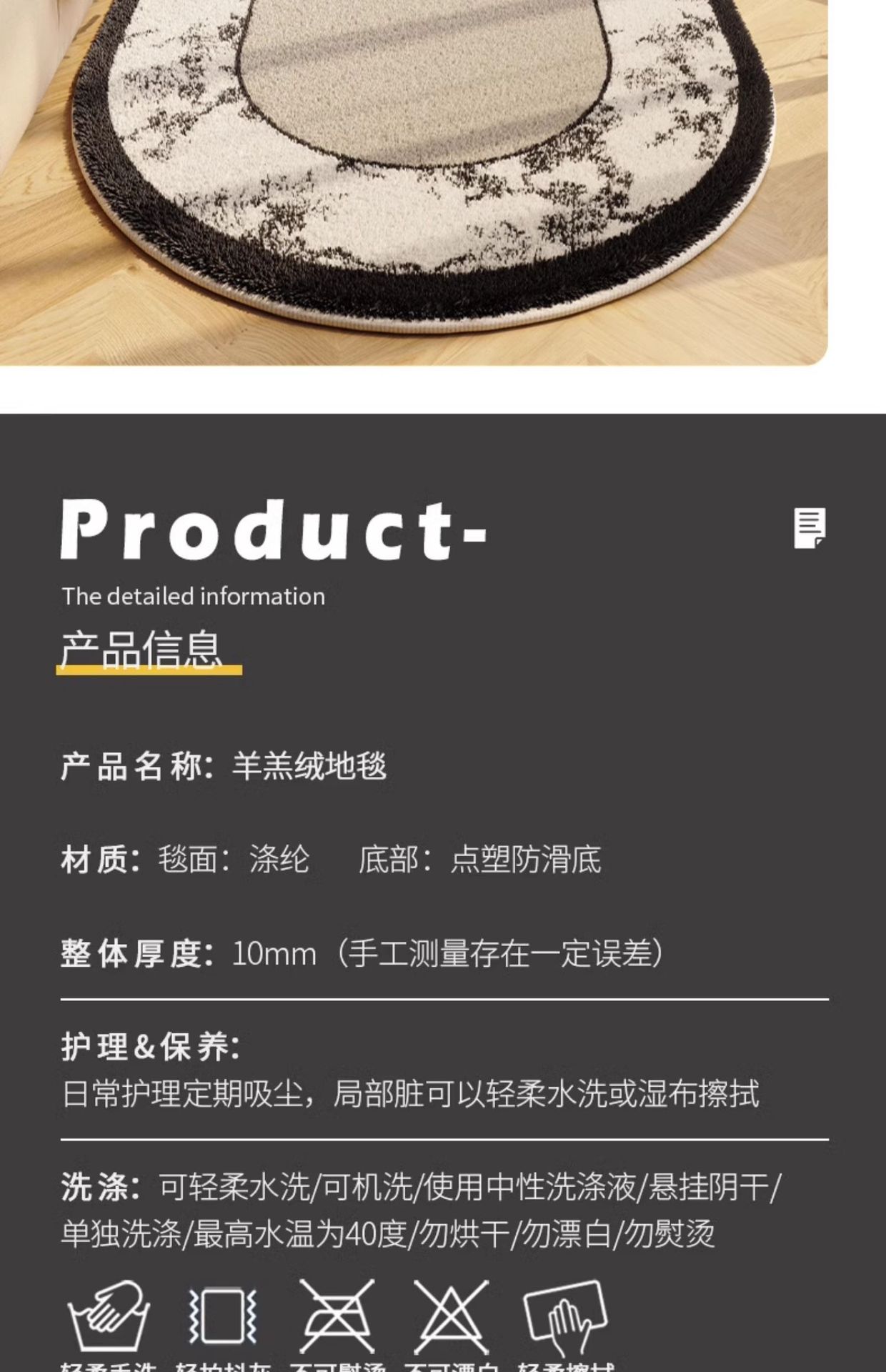 法式床边毯租房床前长条加厚地垫主卧室高级感椭圆形毛绒客厅地毯