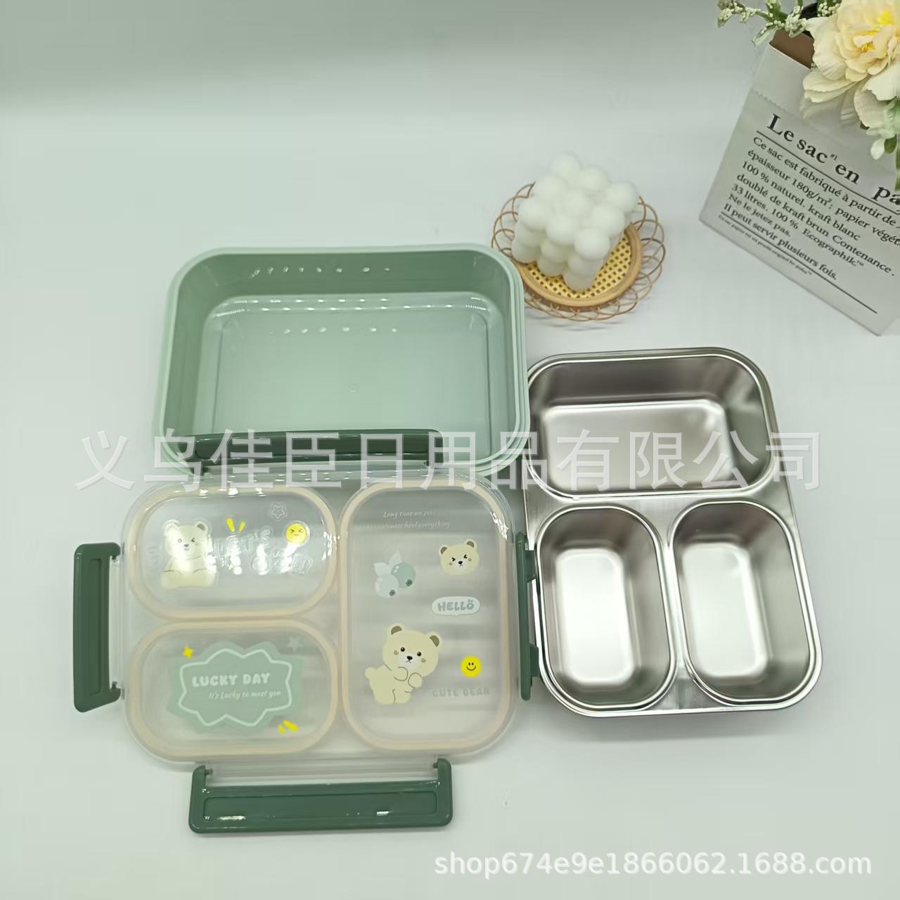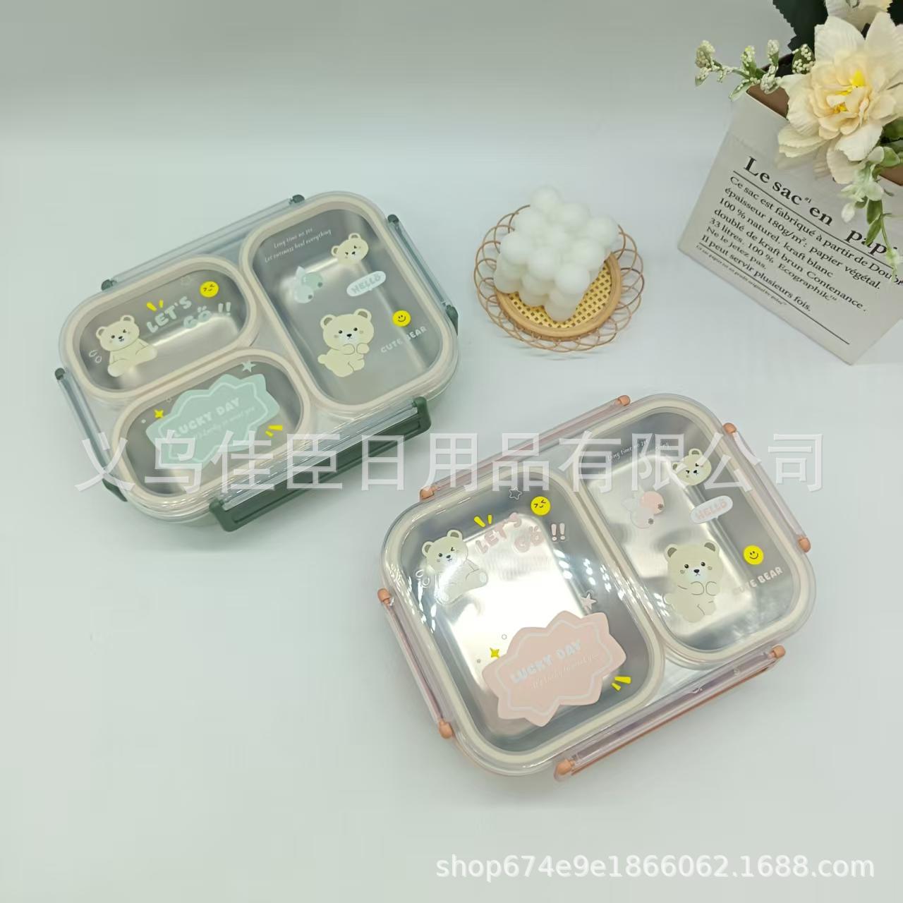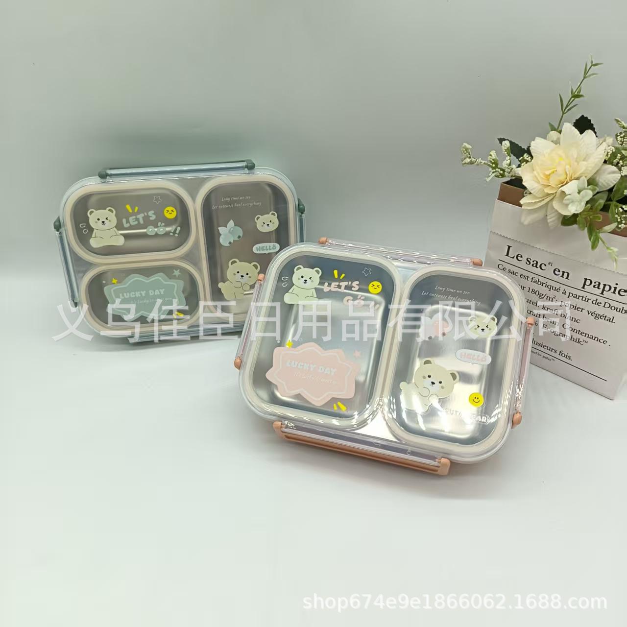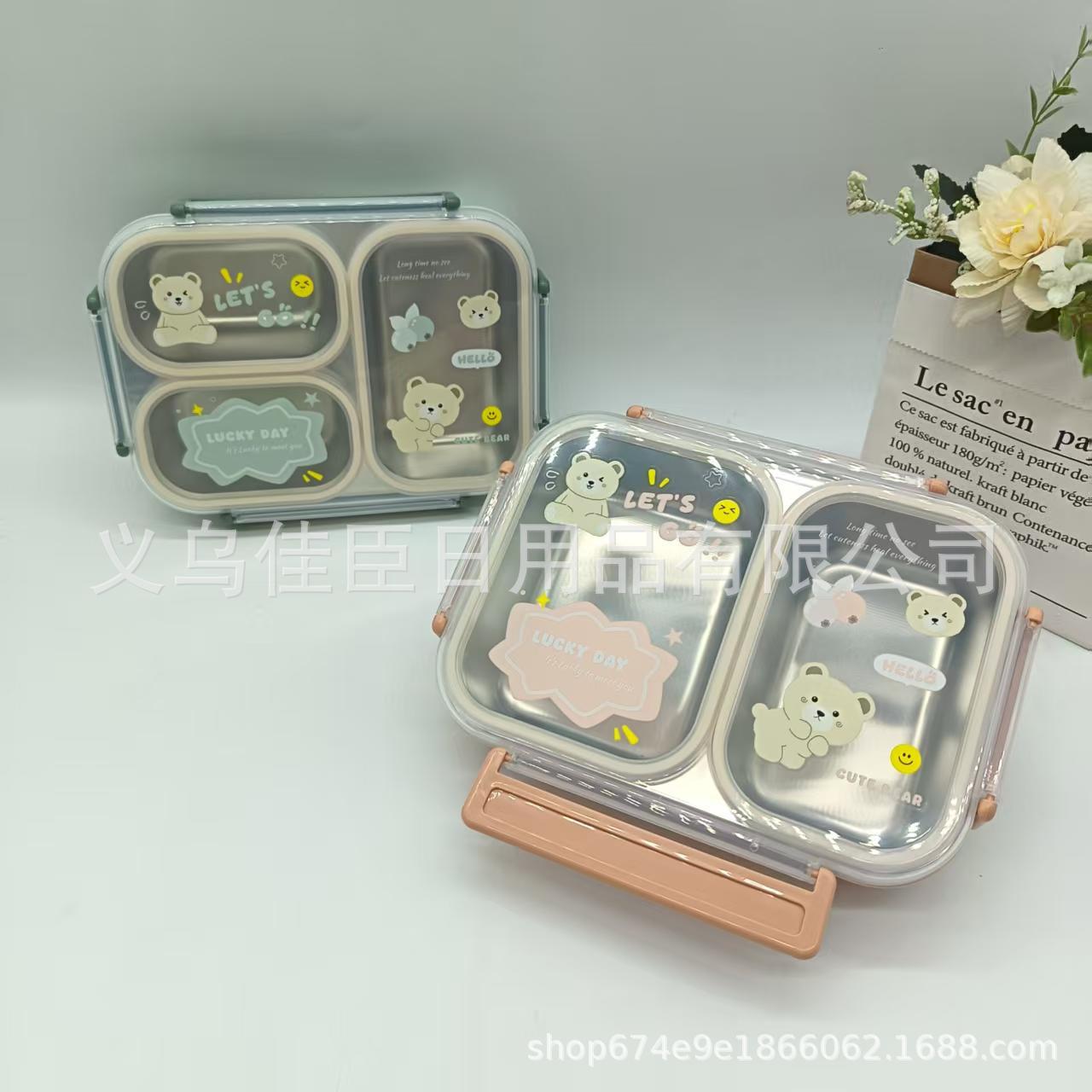 不锈钢饭盒小熊便当盒创意儿童学生饭盒分格保温盒上班族食盒午餐