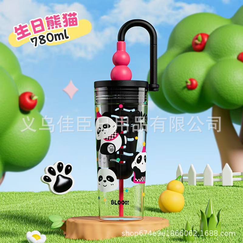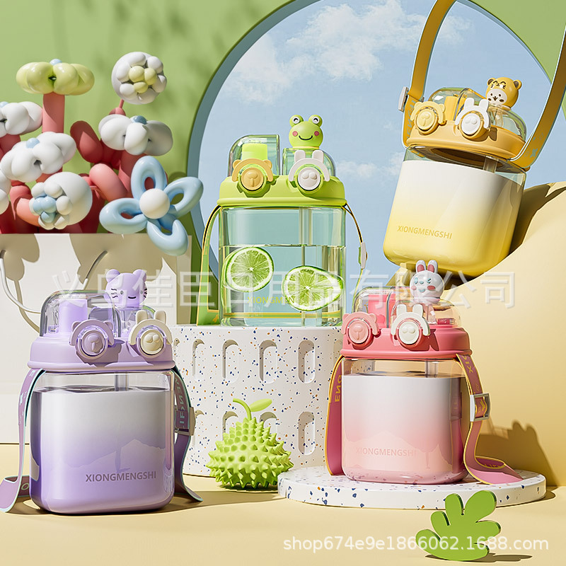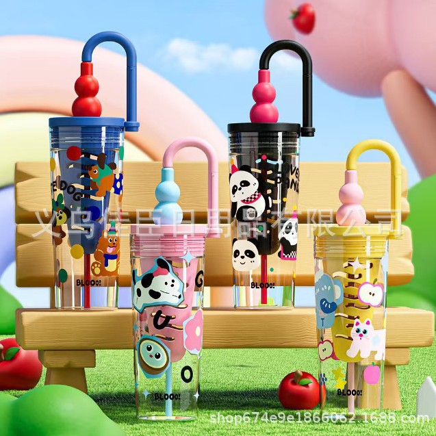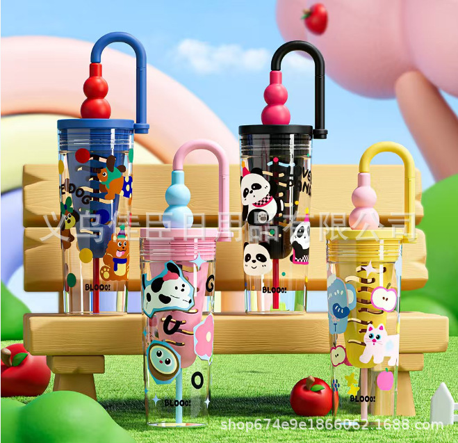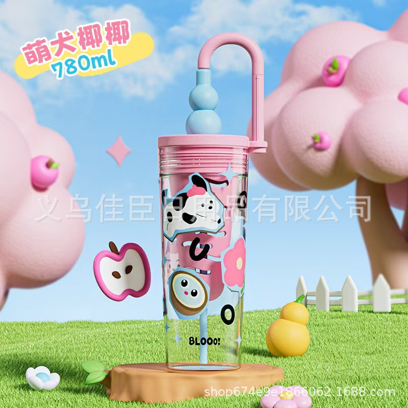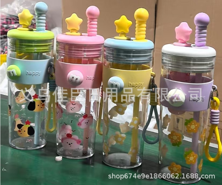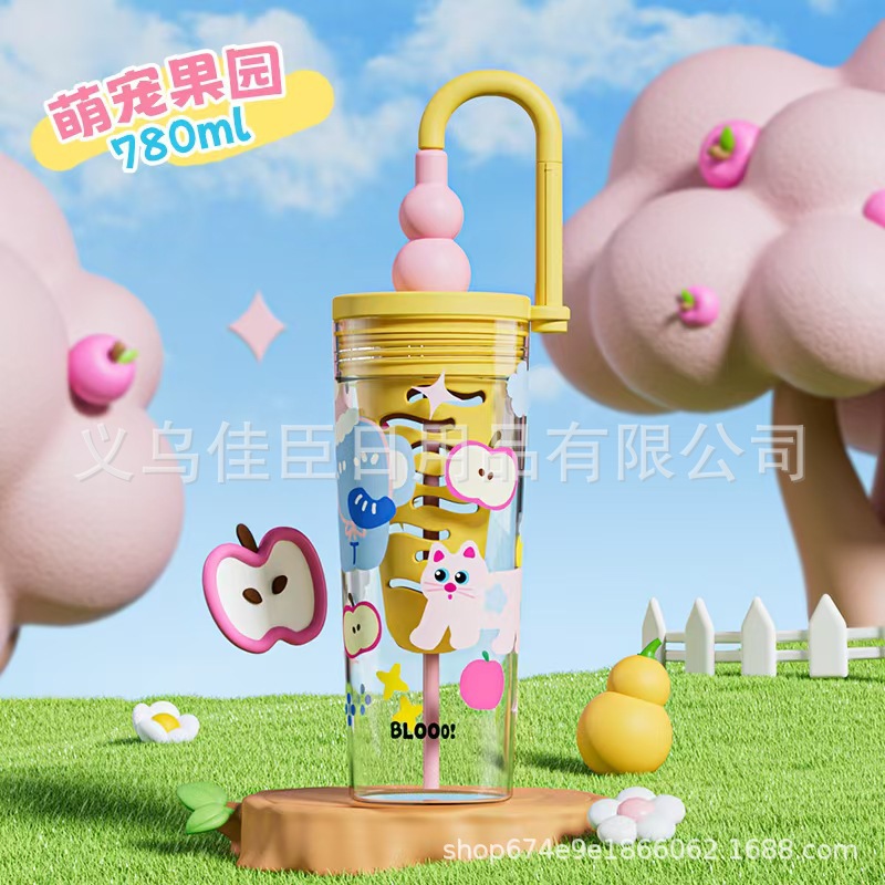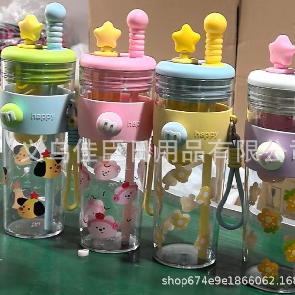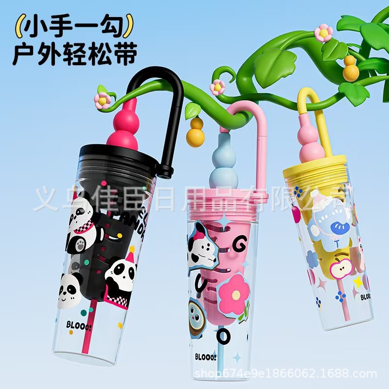 新款创意多巴胺塑料杯男女高颜值吸管杯提手运动水壶滤网花茶水杯