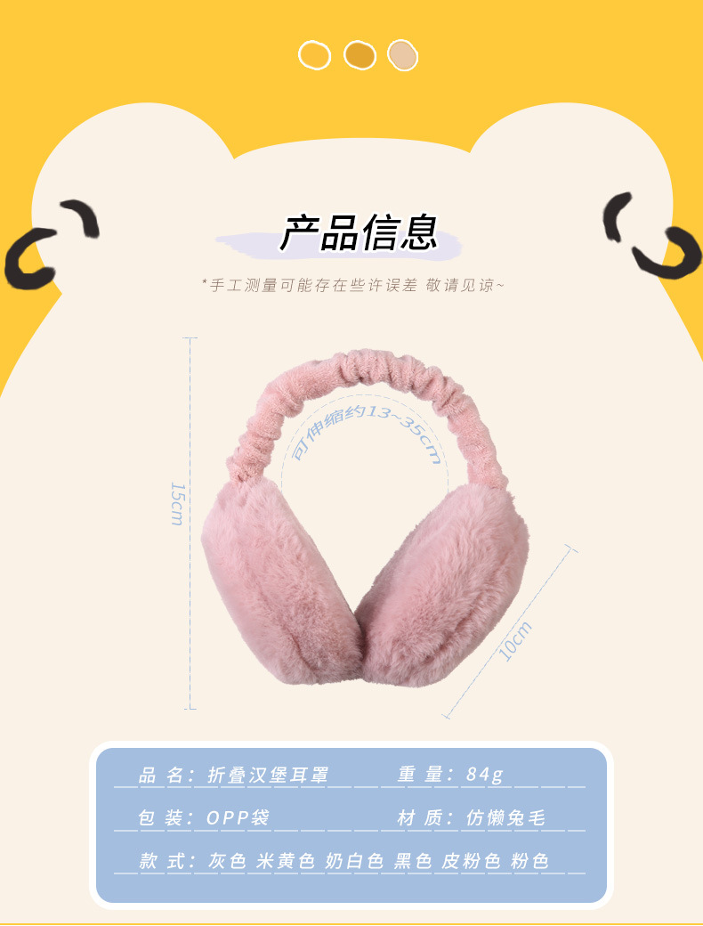 汉堡耳罩折叠女保暖便携带男女纯色冬季防寒加厚超大毛绒日系风