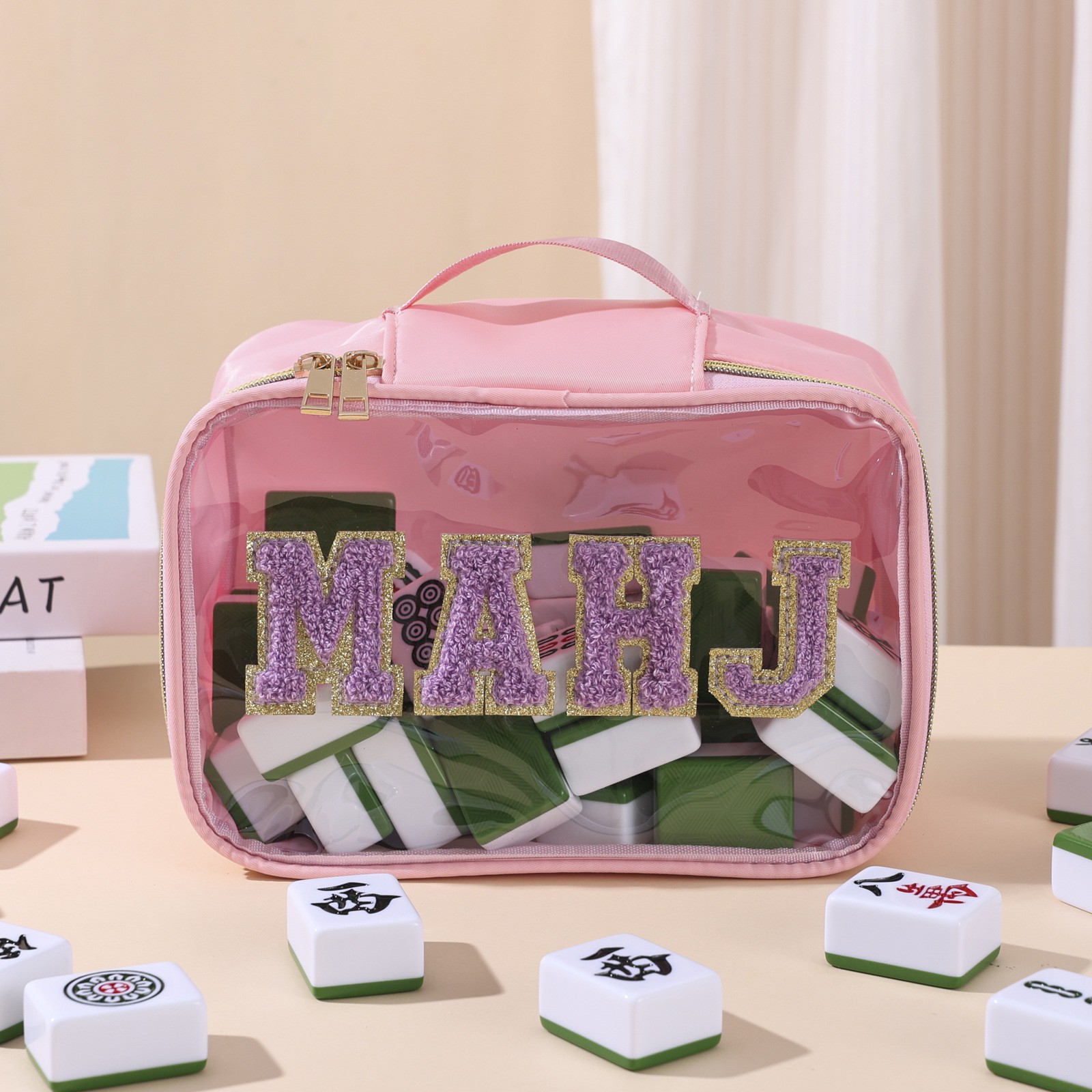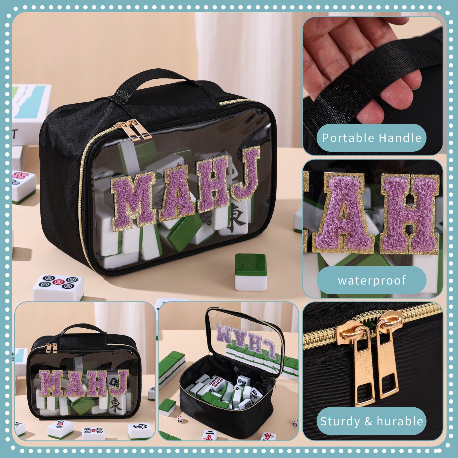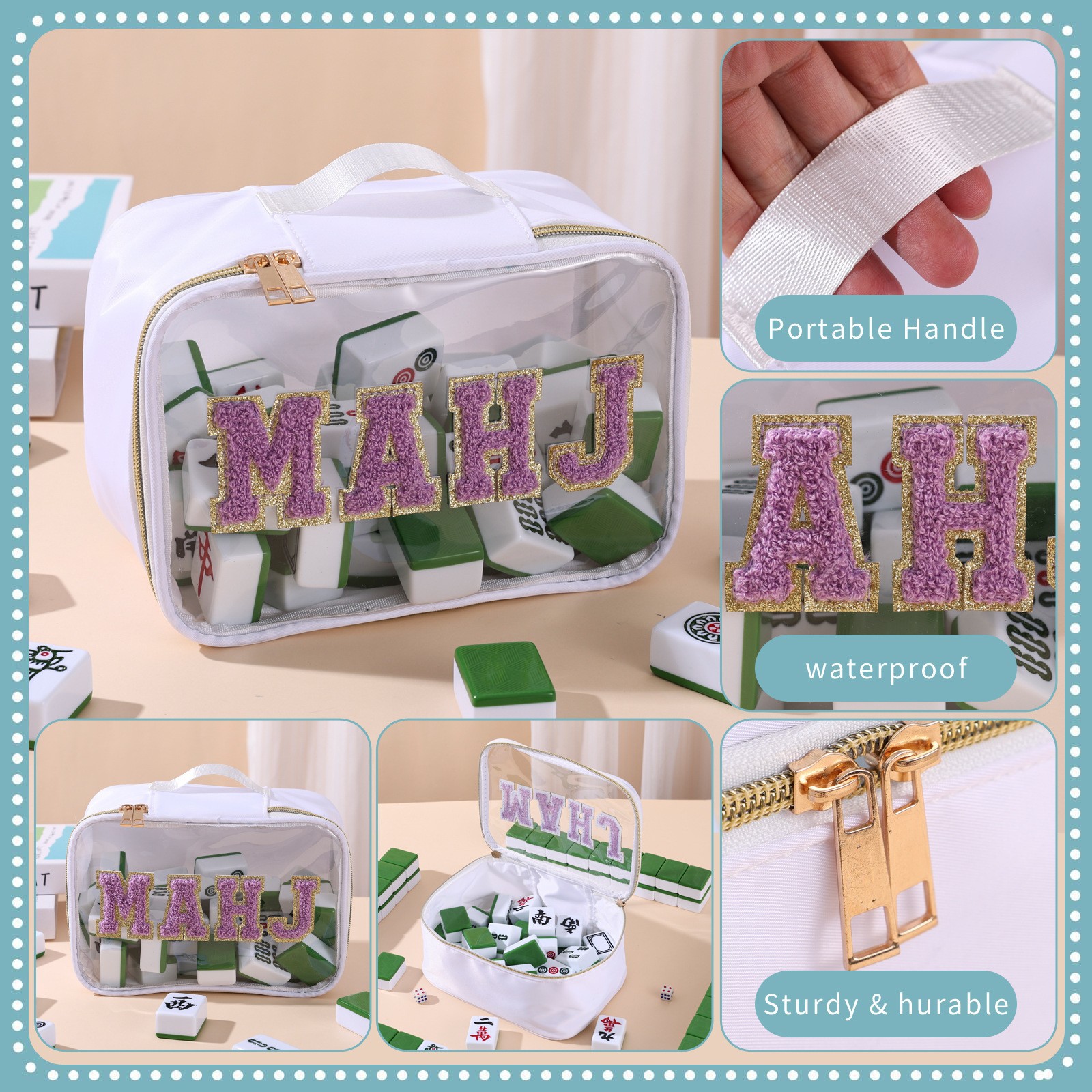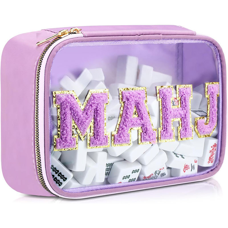 2025亚马逊跨境刺绣字母麻将收纳包麻将包包女士洗漱收纳包大容量