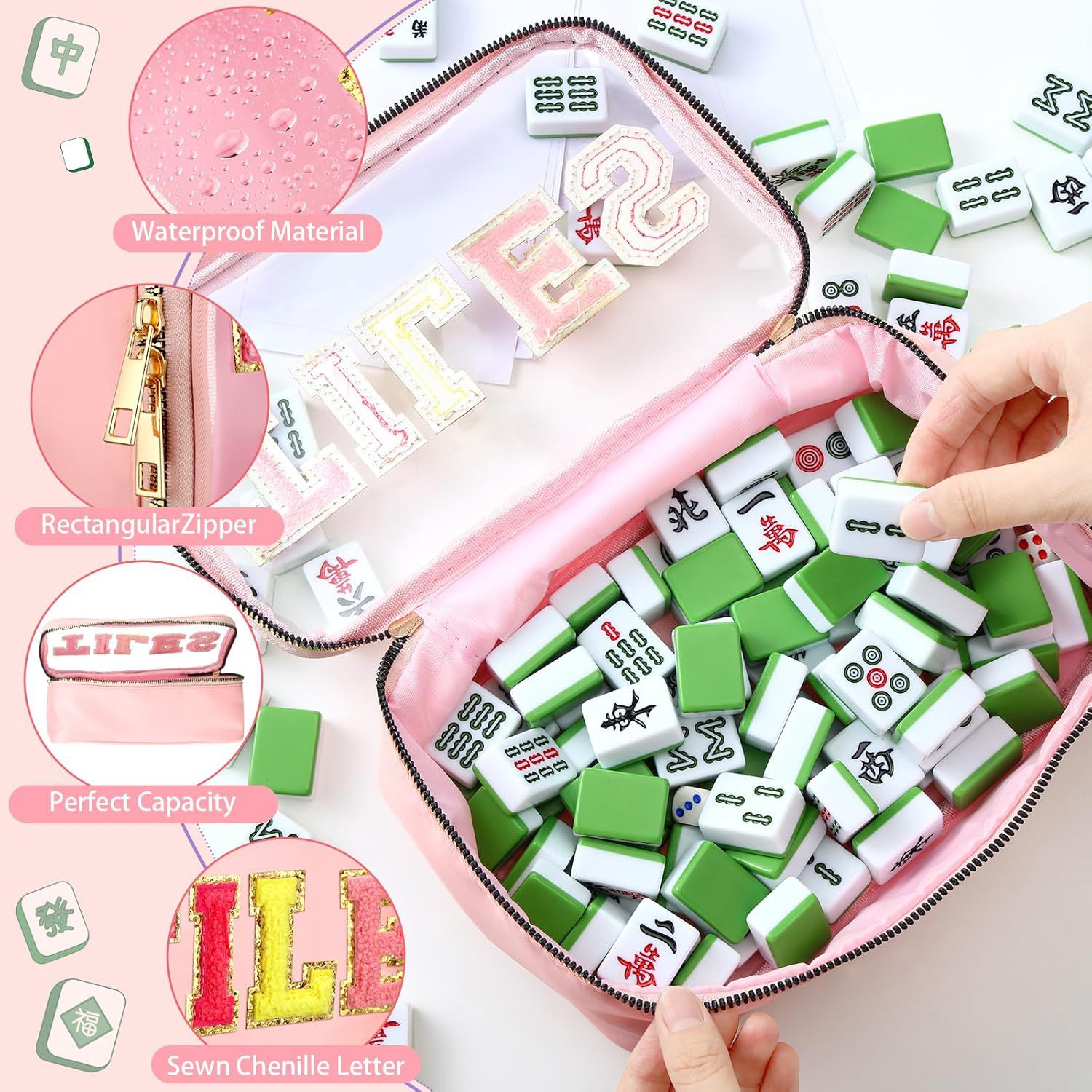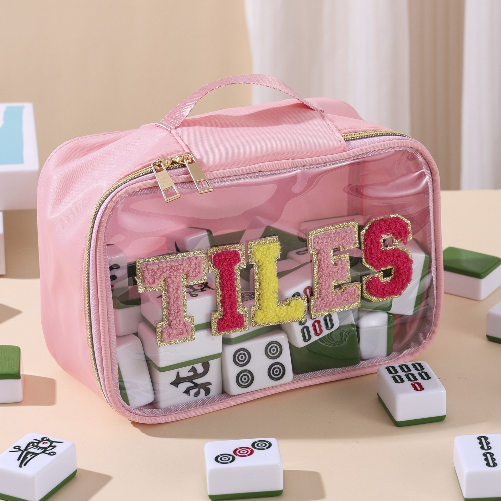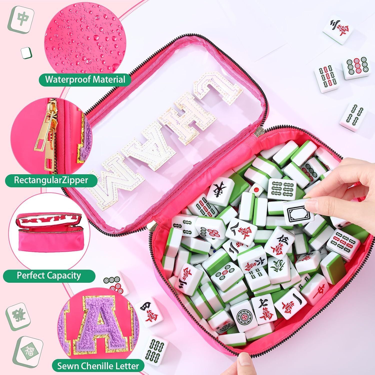 2025亚马逊跨境刺绣字母麻将收纳包麻将包包女士洗漱收纳包大容量