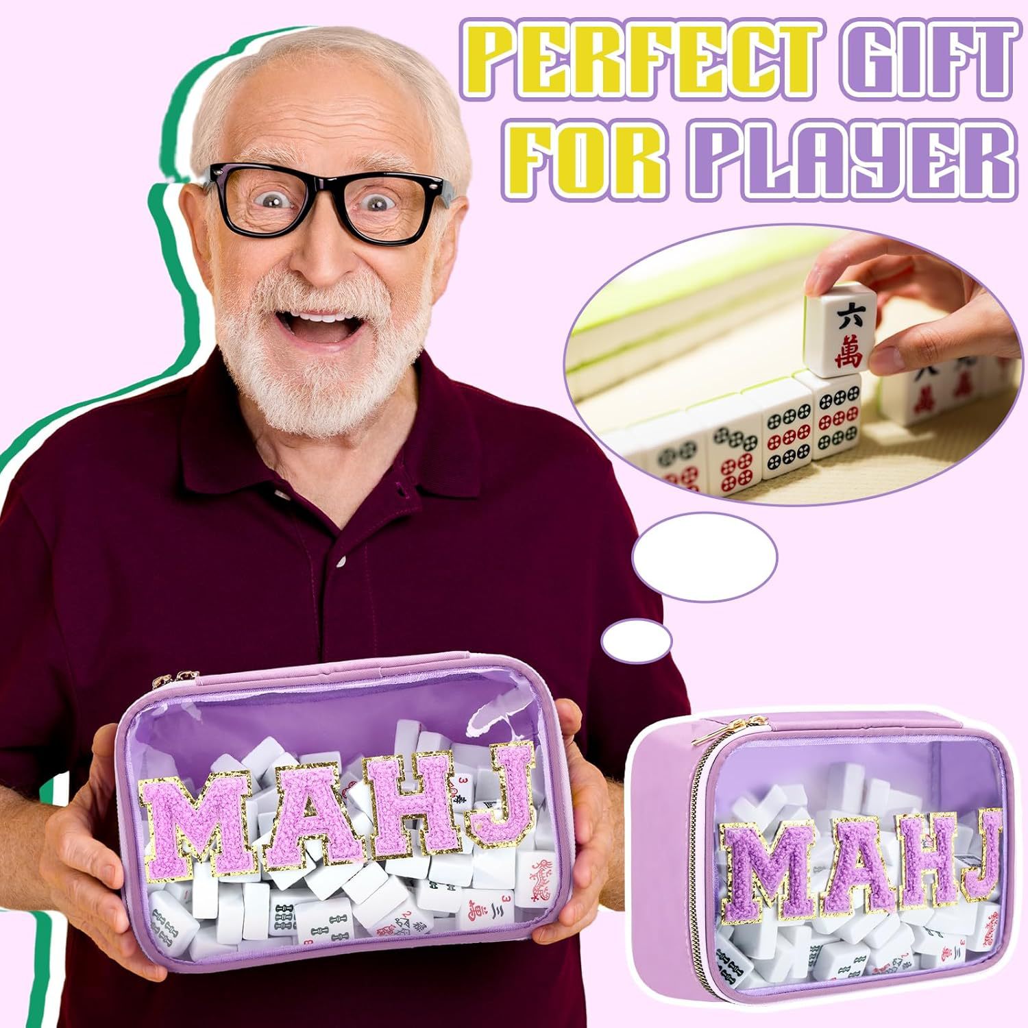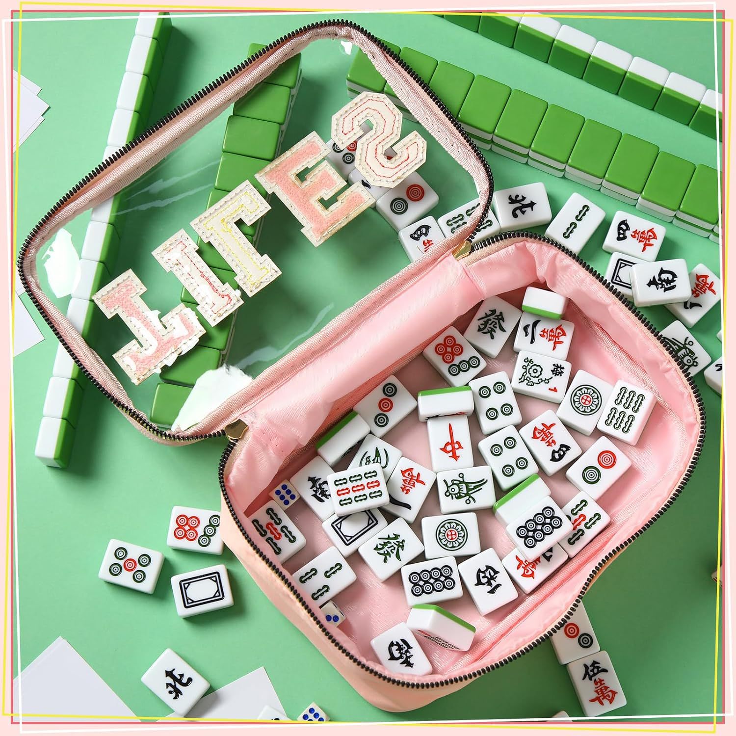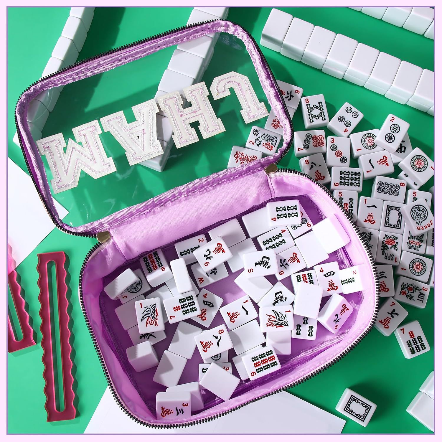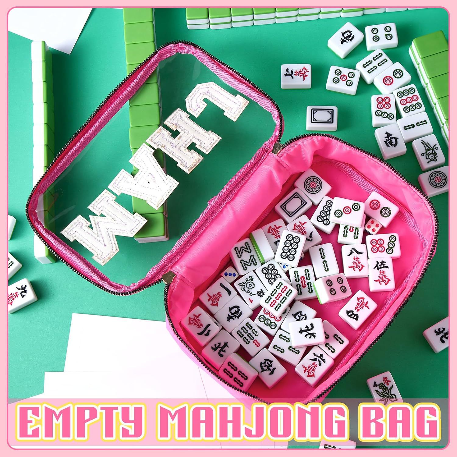 2025亚马逊跨境刺绣字母麻将收纳包麻将包包女士洗漱收纳包大容量