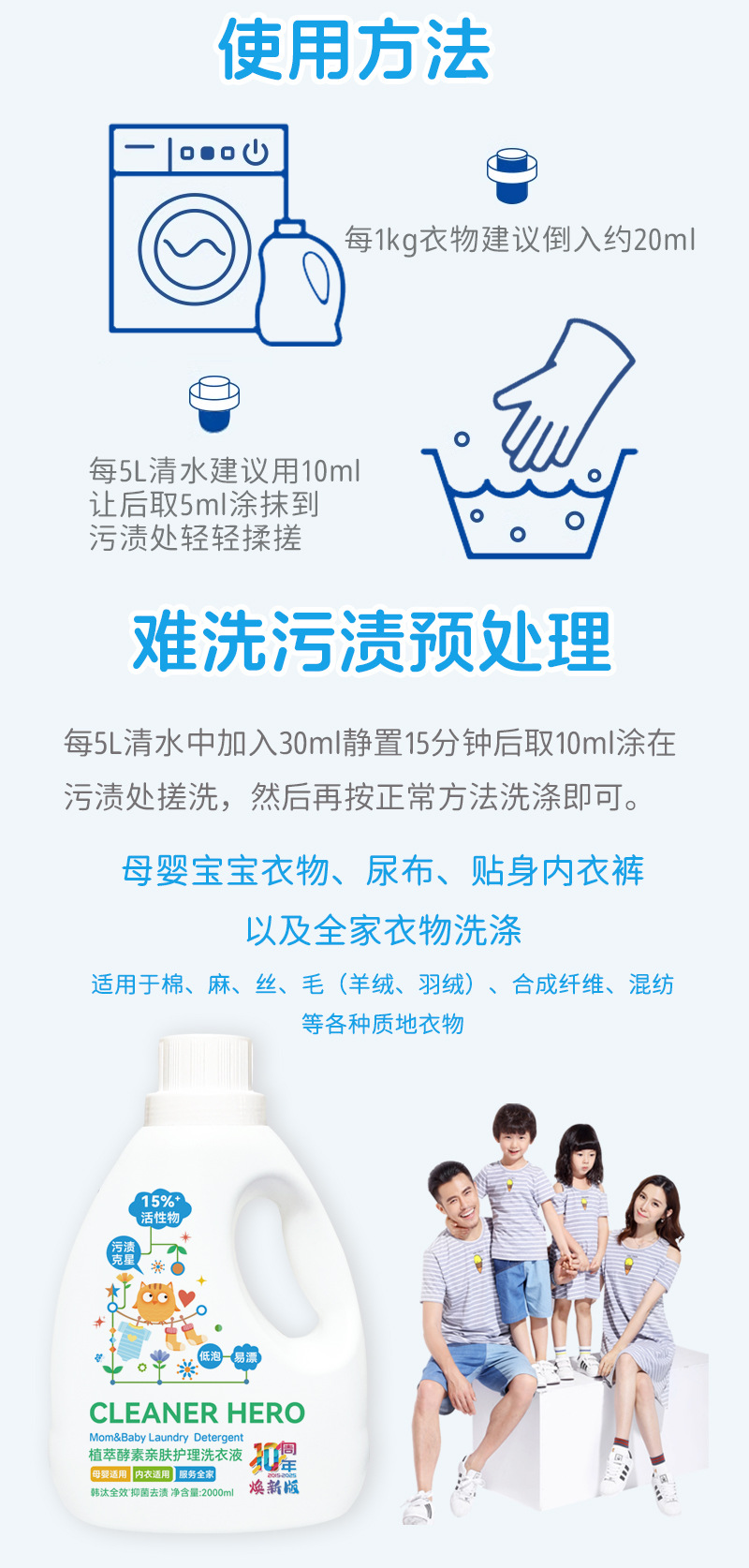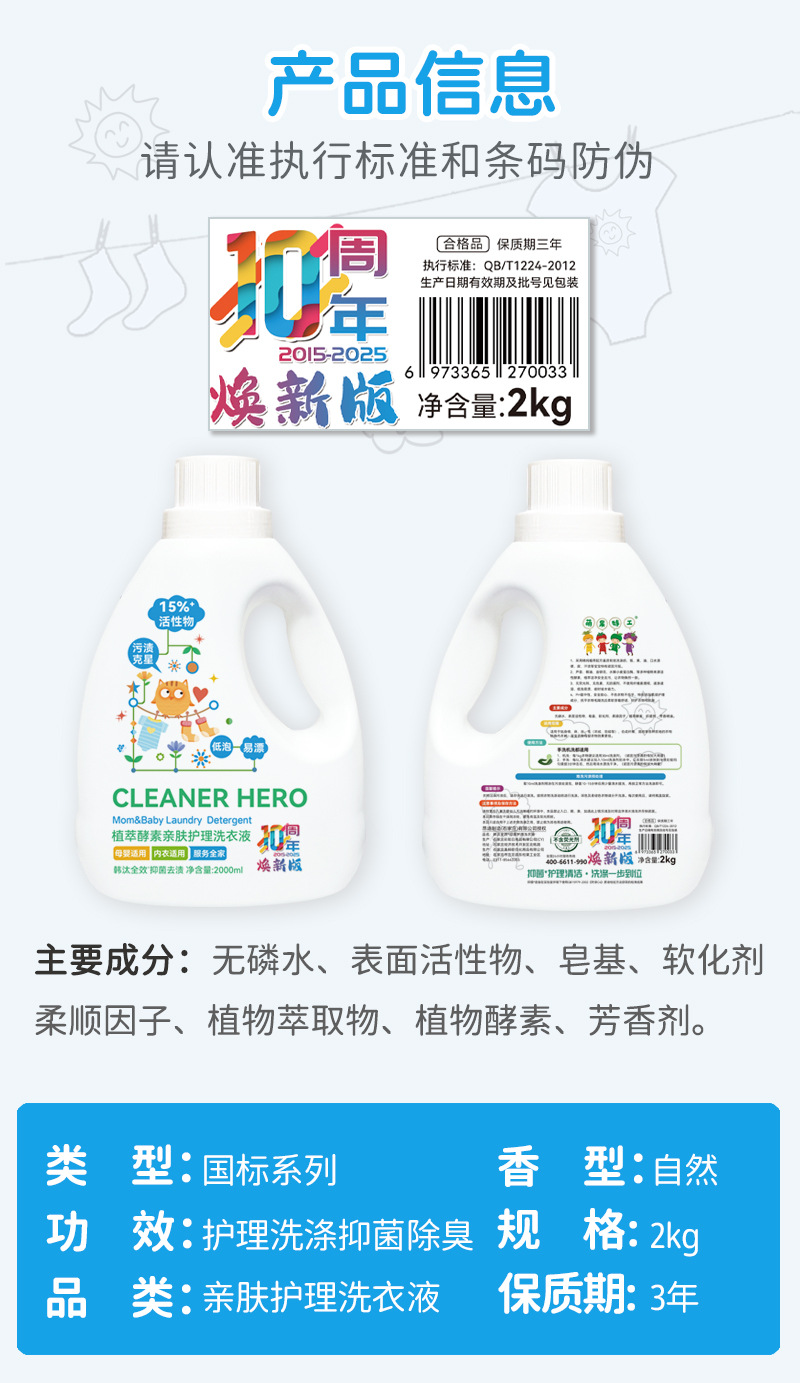 整箱国标酵素洗衣液婴幼儿童宝宝家用2kg桶装工厂批发包邮QBT1224