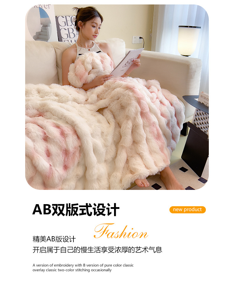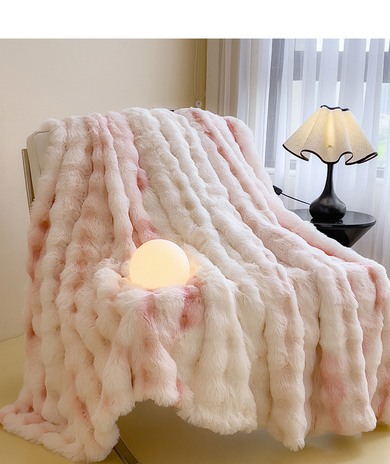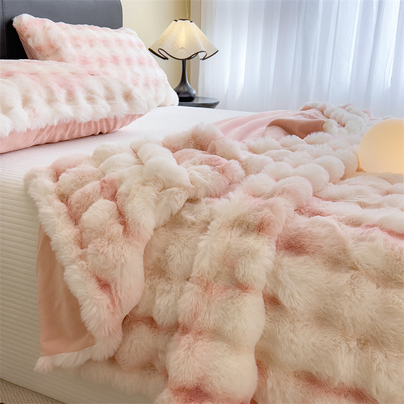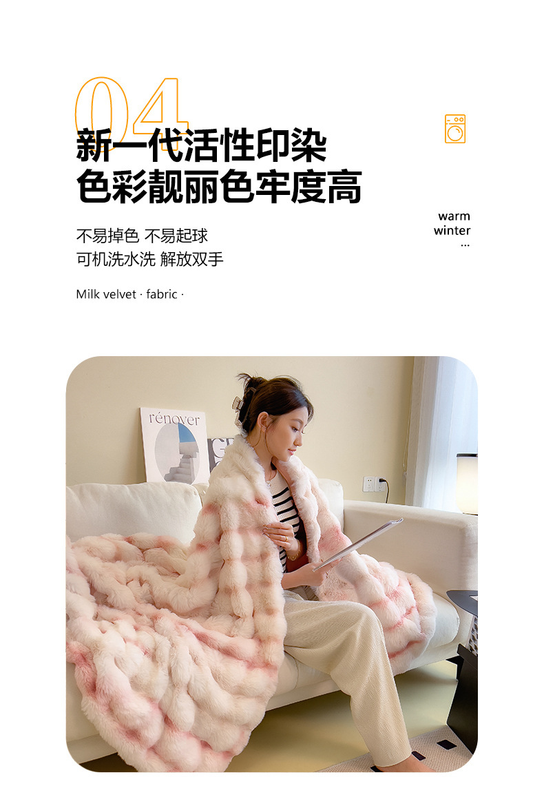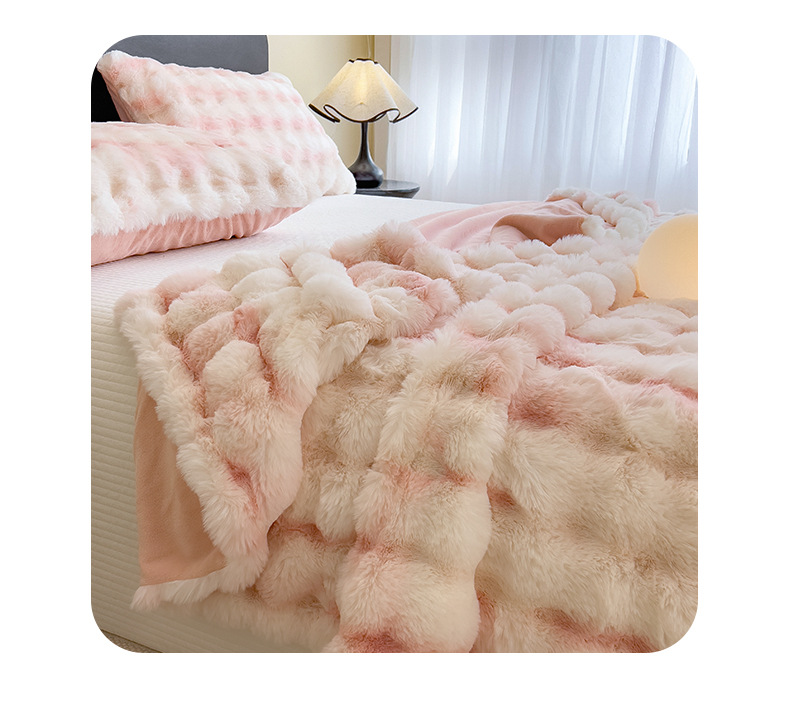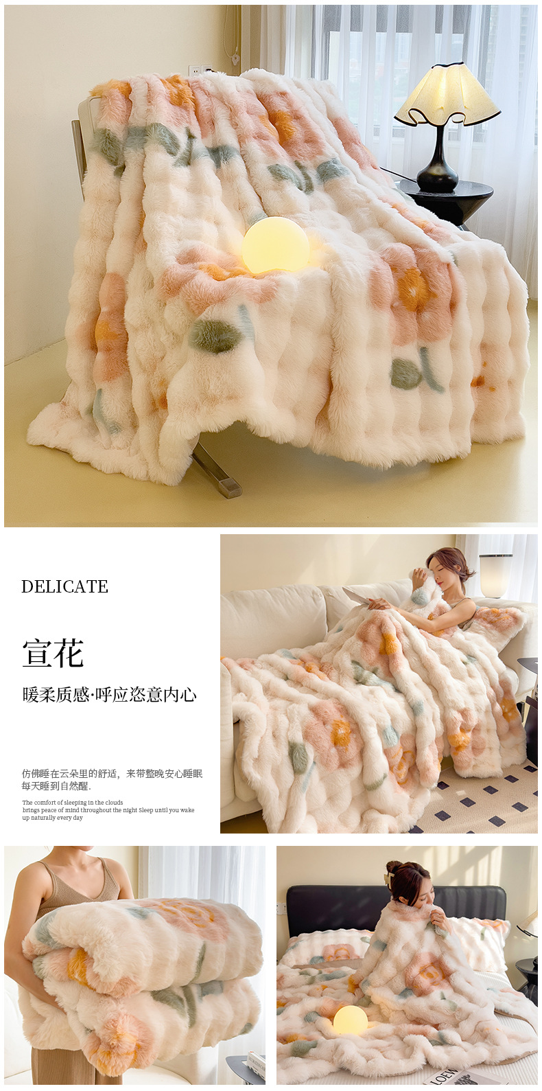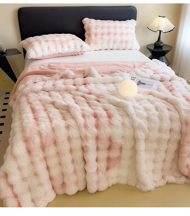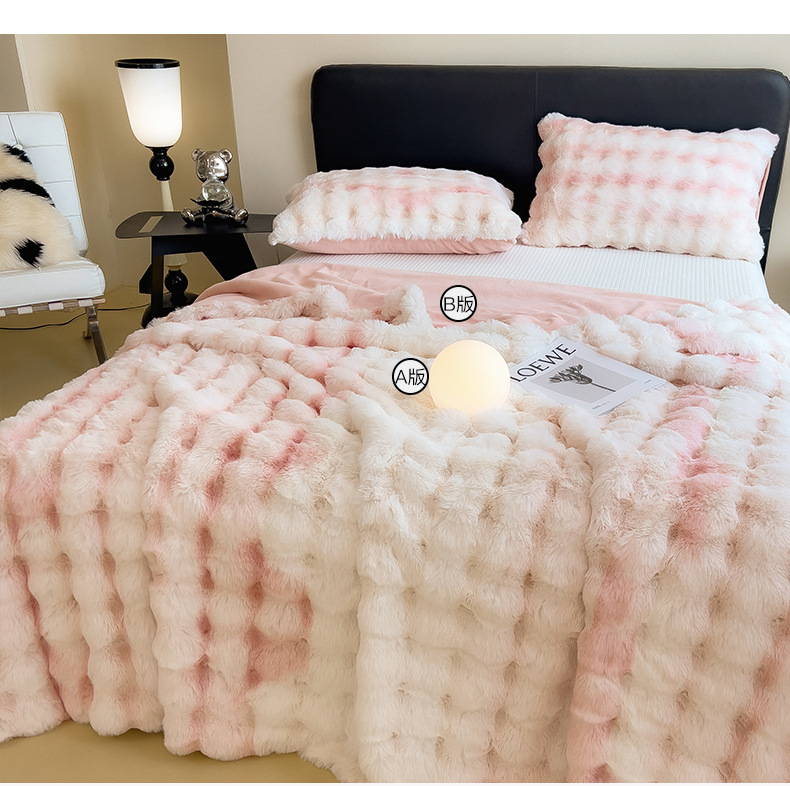 新款秋冬大泡泡七彩兔毛绒毛毯加绒加厚保暖毯子柔软舒适跨境毛毯