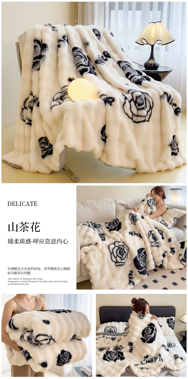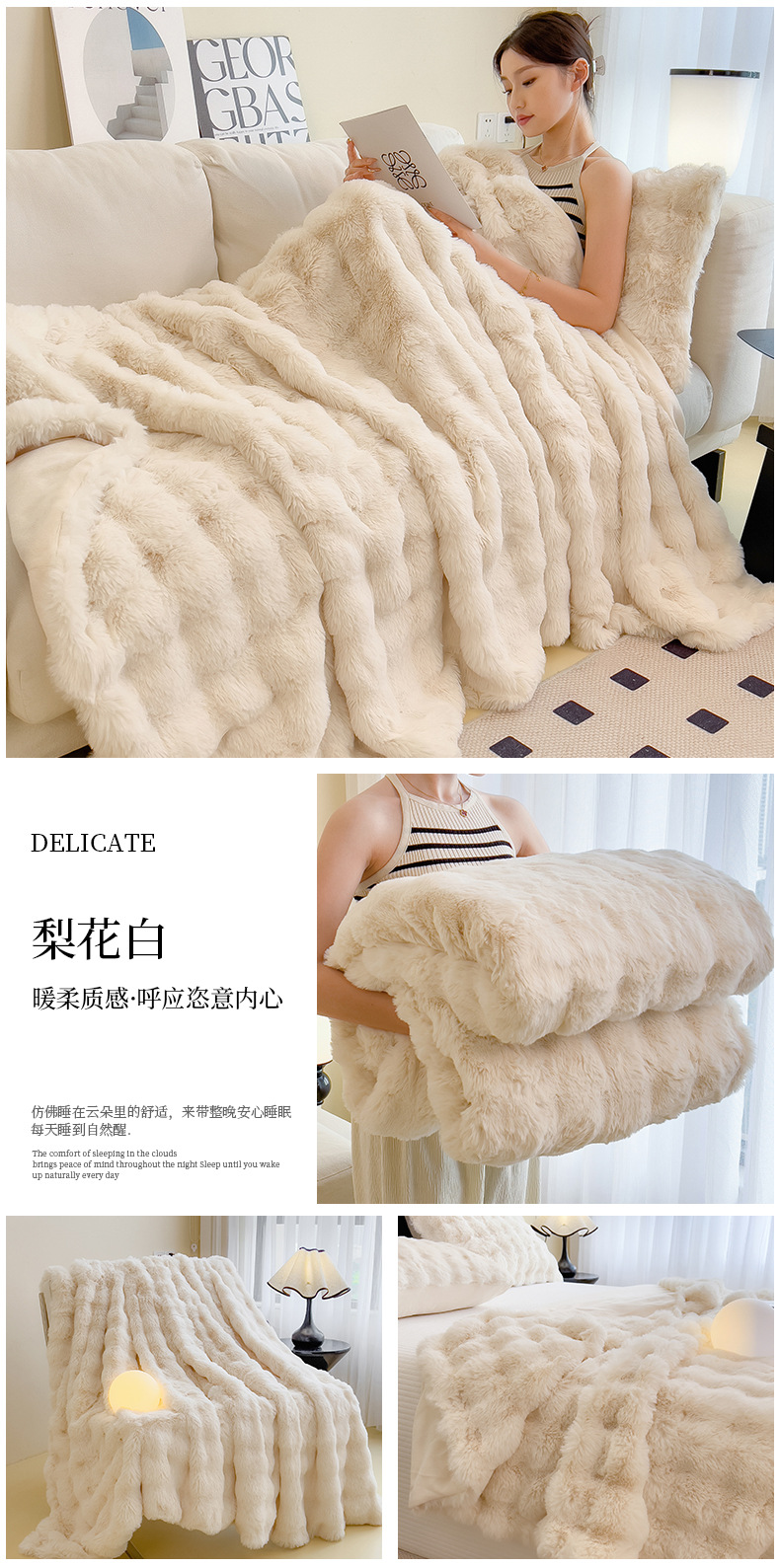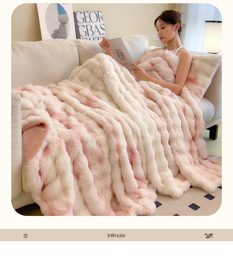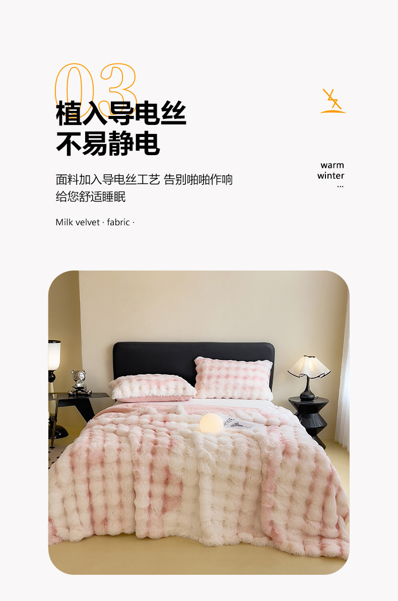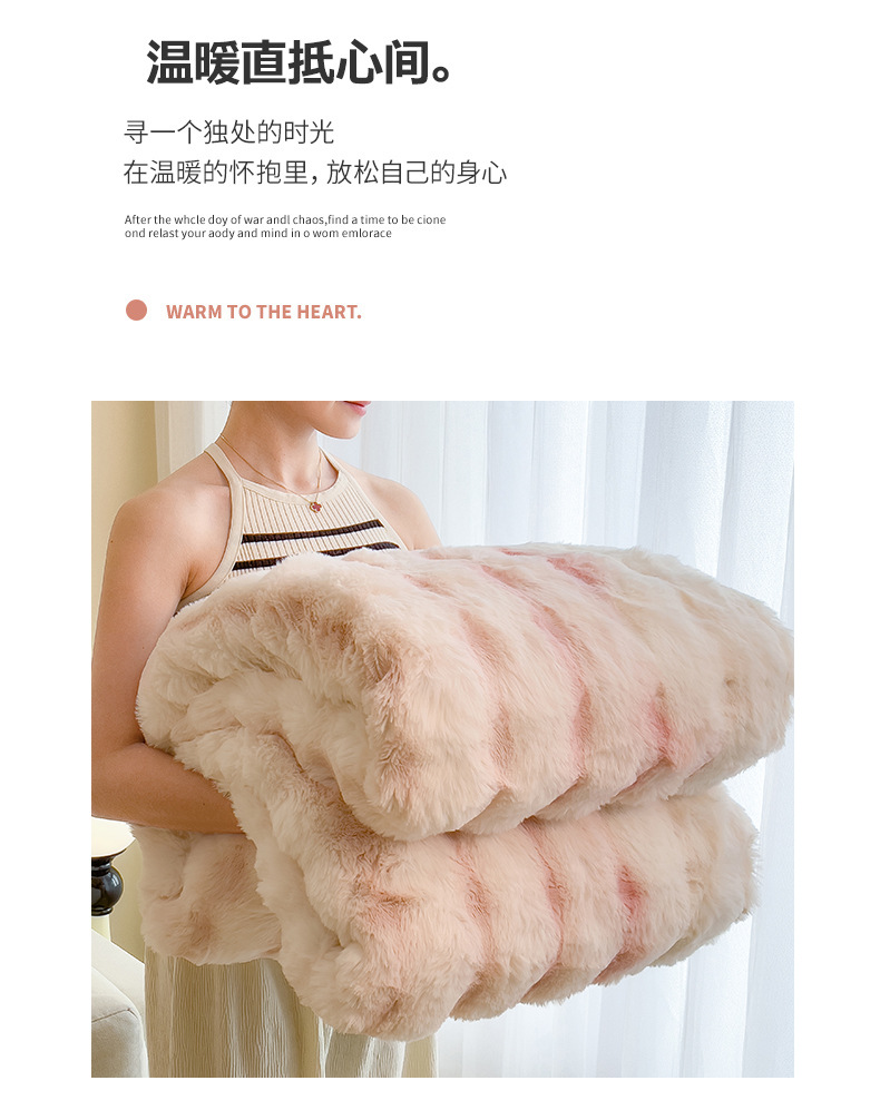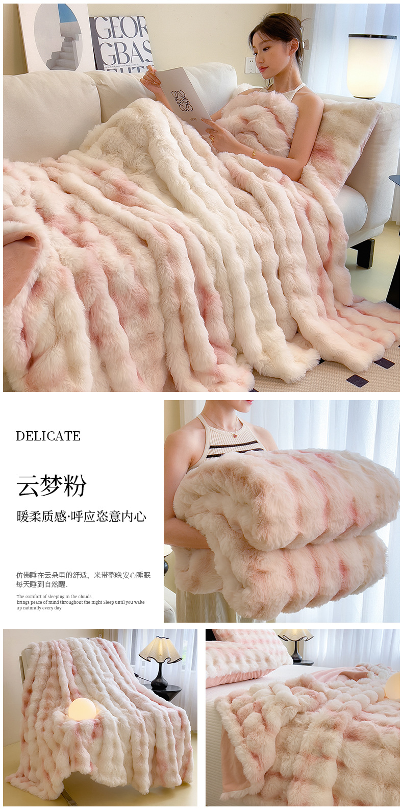 新款秋冬大泡泡七彩兔毛绒毛毯加绒加厚保暖毯子柔软舒适跨境毛毯