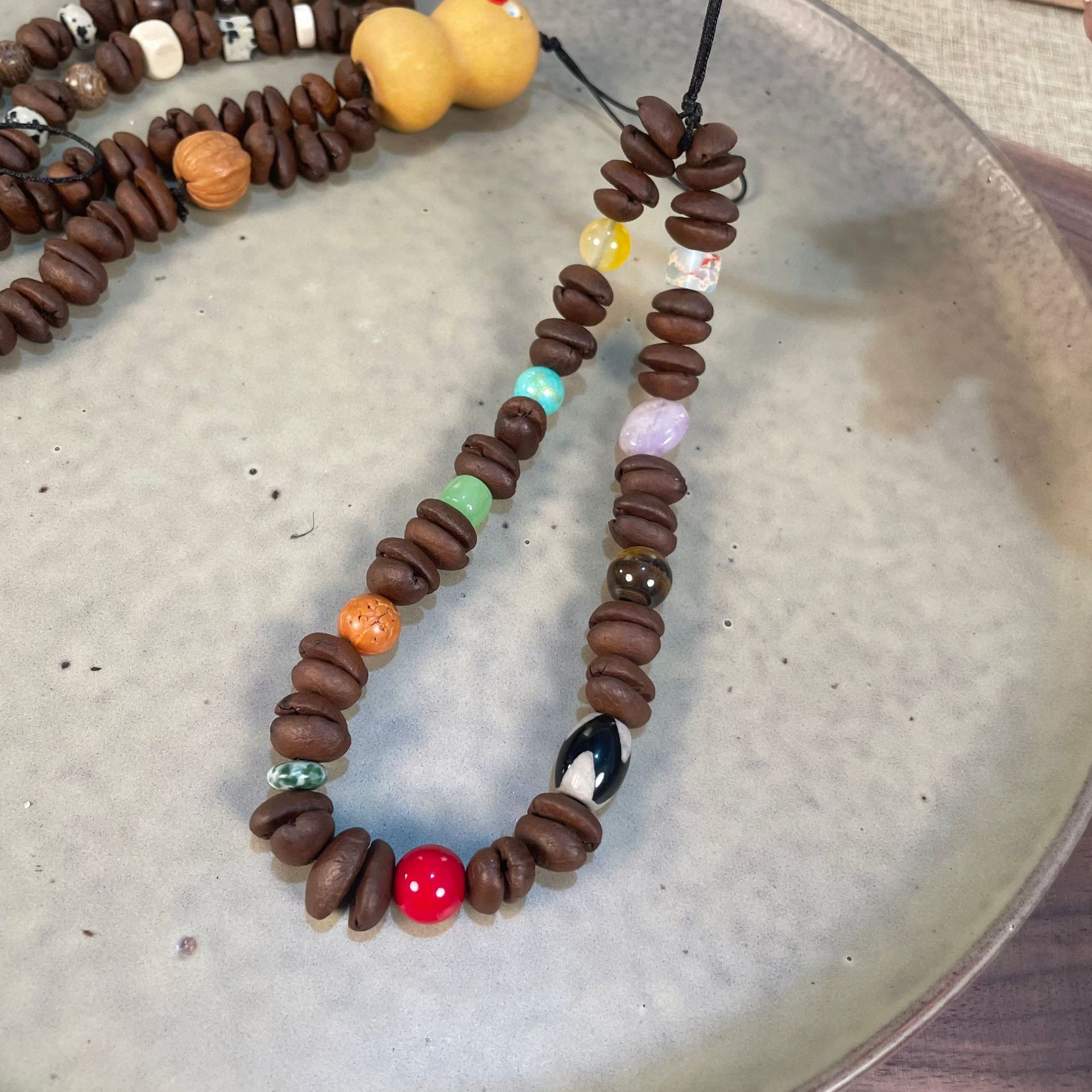 天然真咖啡豆手机链创意咖啡豆手串葫芦diy闺蜜礼物景区热卖货源
