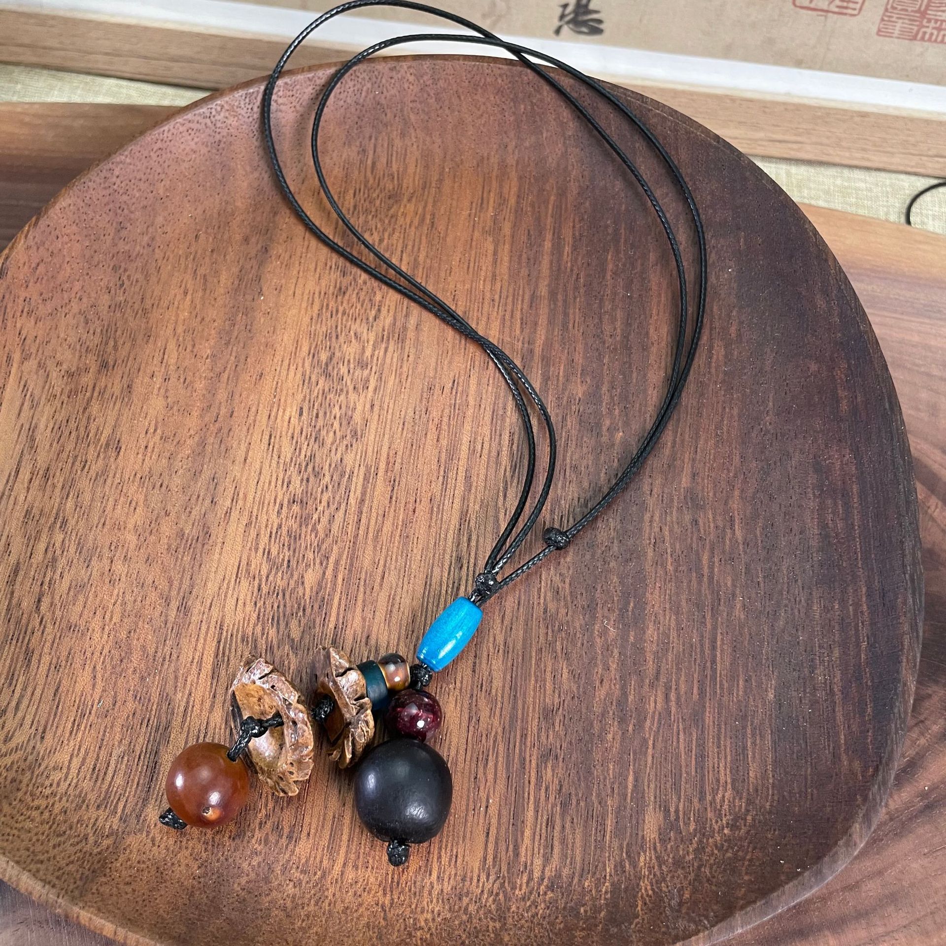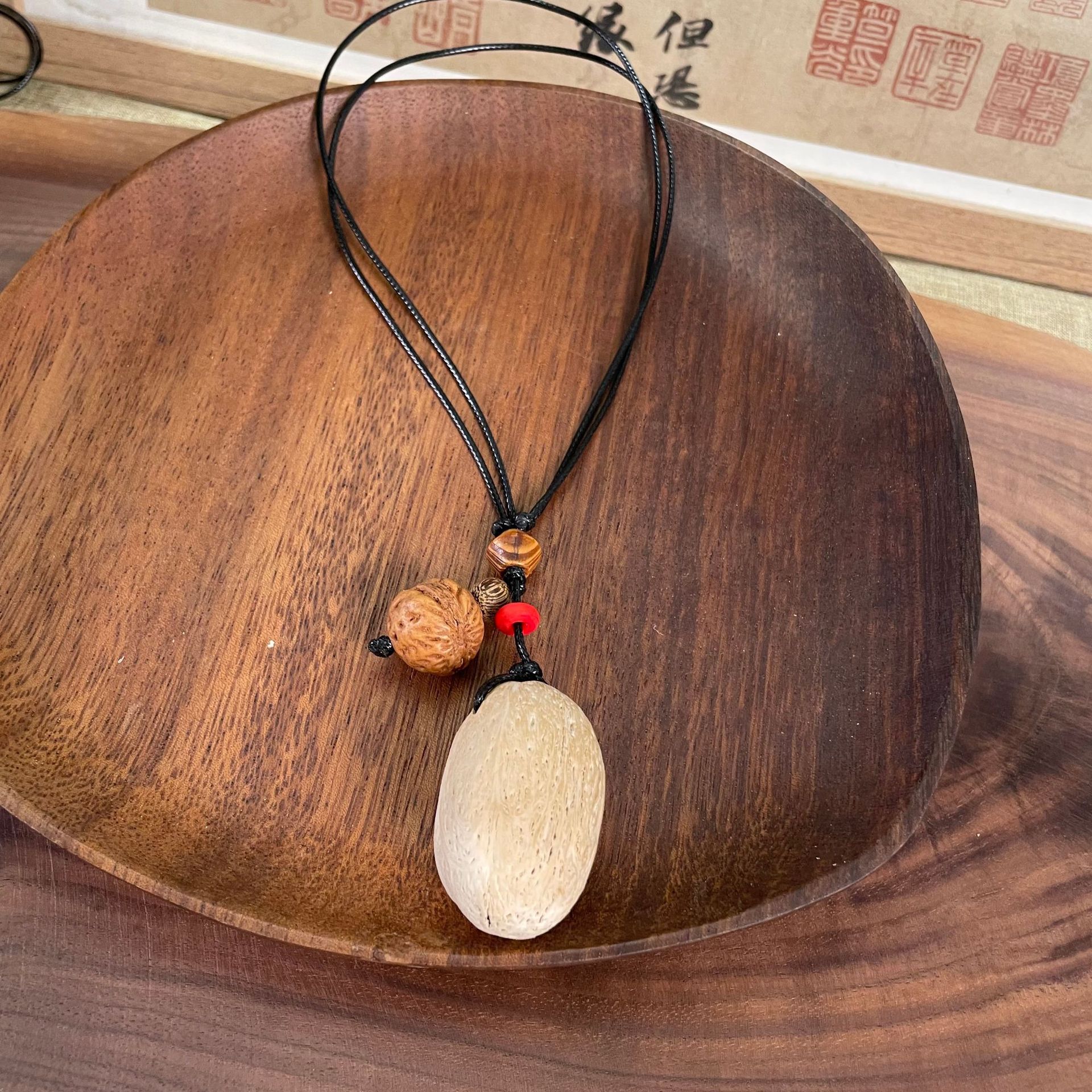 天然植物大豆角吊坠果壳项链个性简约夹竹桃项链新中式项坠礼物