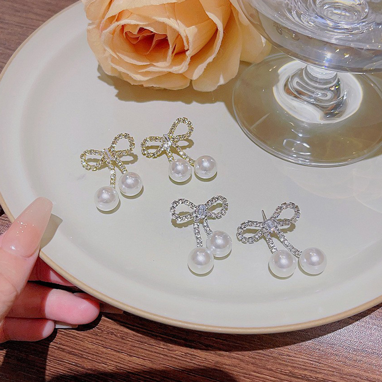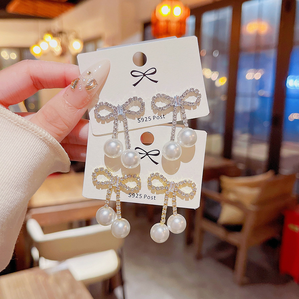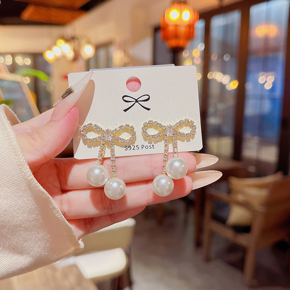 银针轻奢时尚珍珠耳环气质小众百搭流苏耳饰个性高级感蝴蝶结耳钉